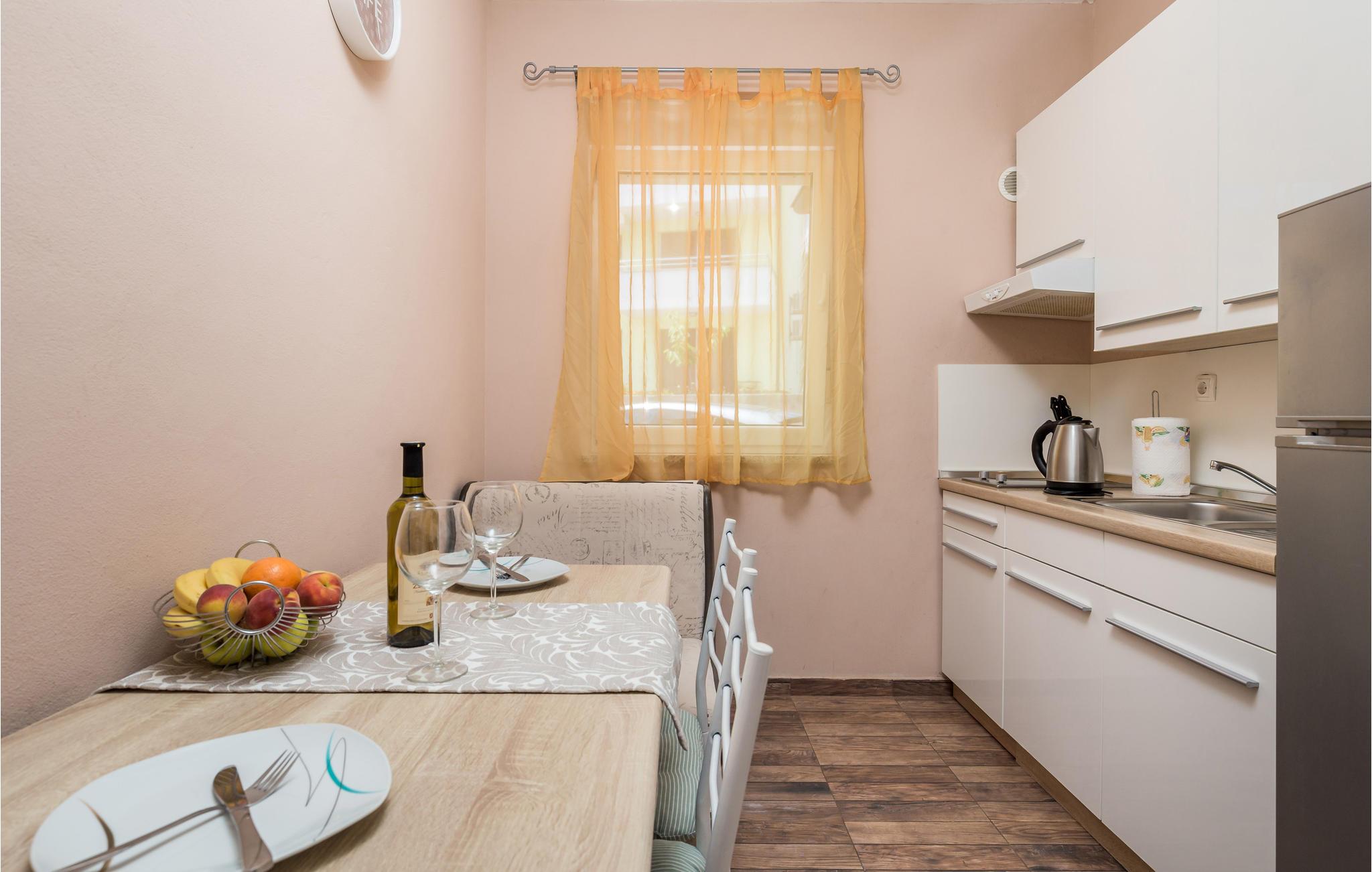Glæd jer til et afslappende ophold i denne praktiske feriebolig, der ligger i et lejlighedskompleks. Lige uden for døren kan I tage en forfriskende dukkert i den store fælles pool, nyde solen og den middelhavsagtige atmosfære.