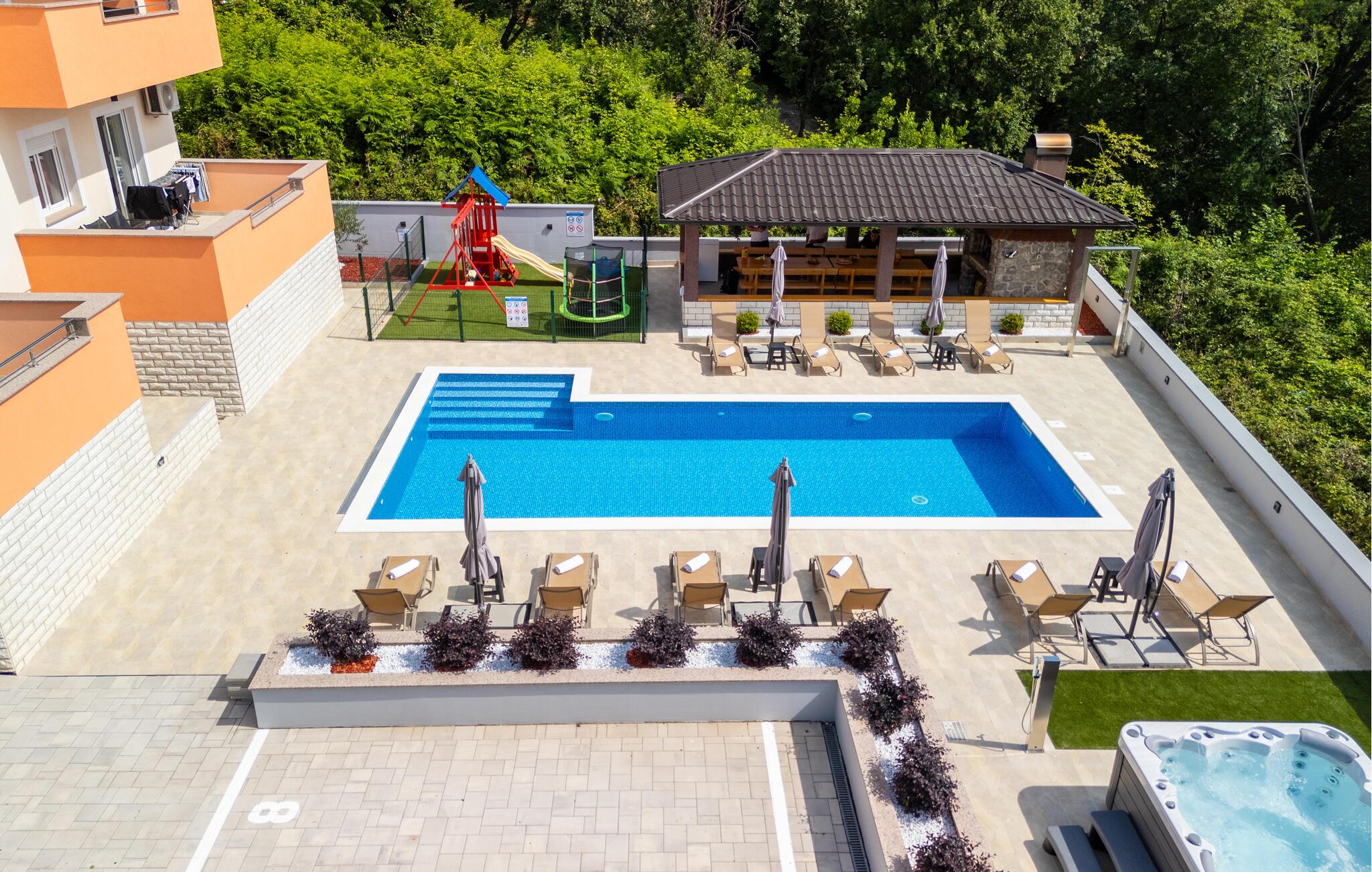 Der er flere smukke strande lige i nærheden, som er er oplagte til badeudflugter. Kør en tur til Rijeka eller Opatija, hvis I har lyst til at opleve bystemning, kultur og arkitektur fra habsburgernes tid. Eller udforsk den istriske halvø, hvor I kan lade jer berige af områdest gastronomi og den smukke, varierede natur.