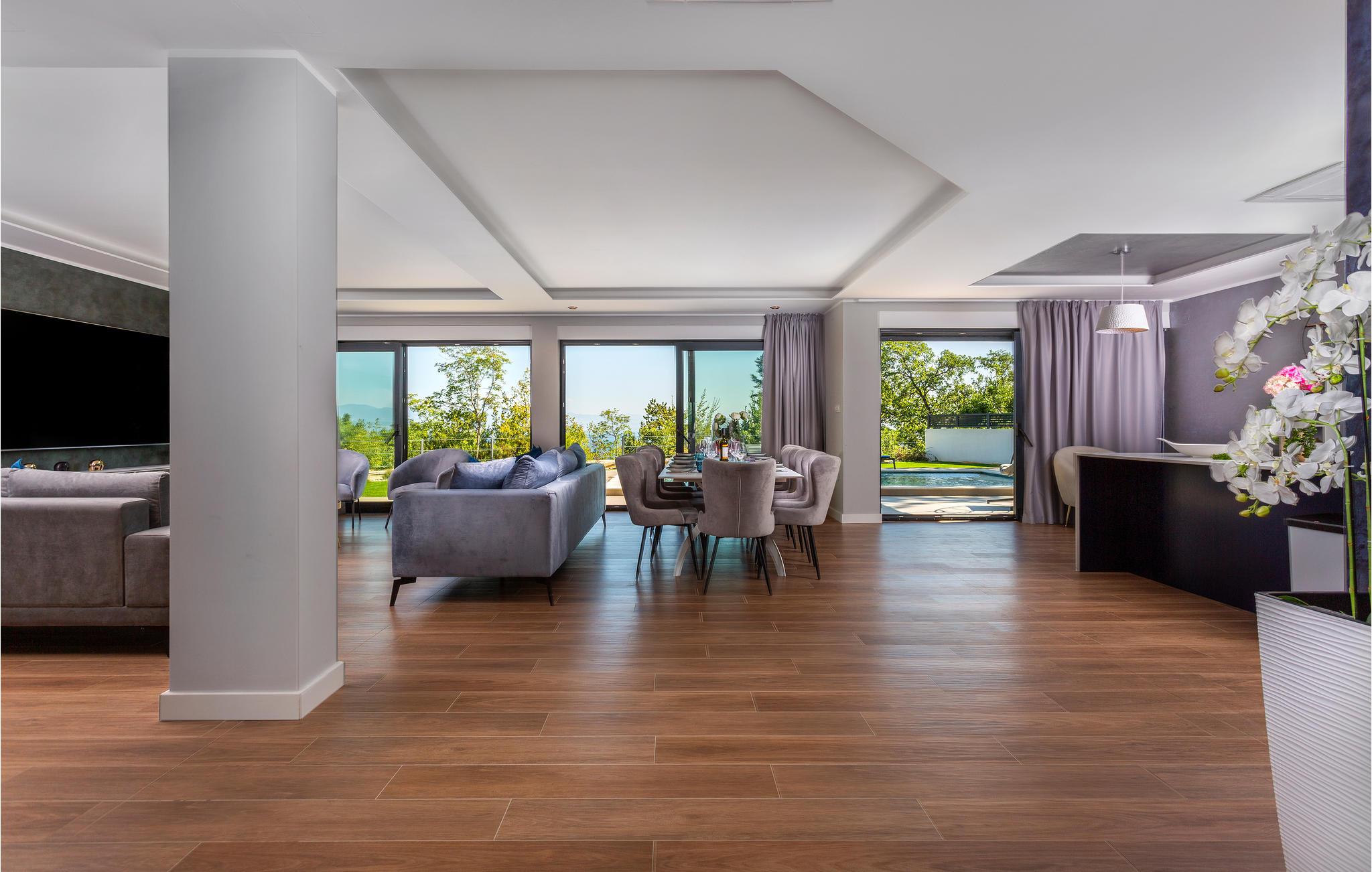 Nyd denne udsigt over havet, grønne områder og natur. I er i en rolig beliggenhed på Opatija Riviera, med adskillige faciliteter til aktiv afslapning, sjov og fritidsaktiviteter. Oplev nærliggende afmærkede vandrestier, vandrestier, Ucka Nature Park, mountainbike stier i skoven og en flyveplads til paragliding. Slap af på de smukke strande ved Opatija Riviera. De populære strande Medveja, Opatija og Moscenicka Draga venter på jer med mange faciliteter til sjov ved havet. Festen er heller ikke forsømt, da de bedste restauranter ved Adriaterhavet ligger på den nærliggende Opatija Riviera.