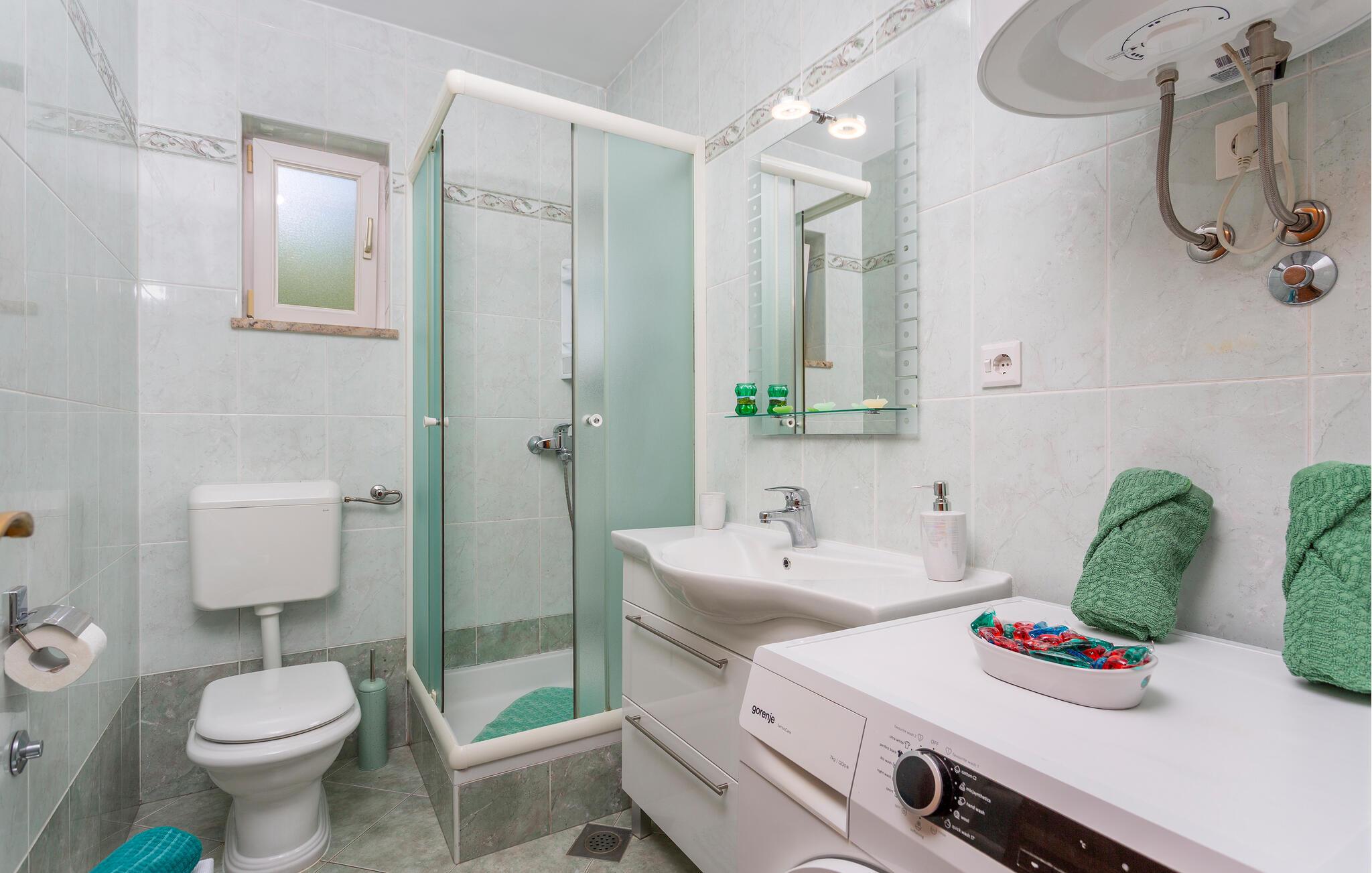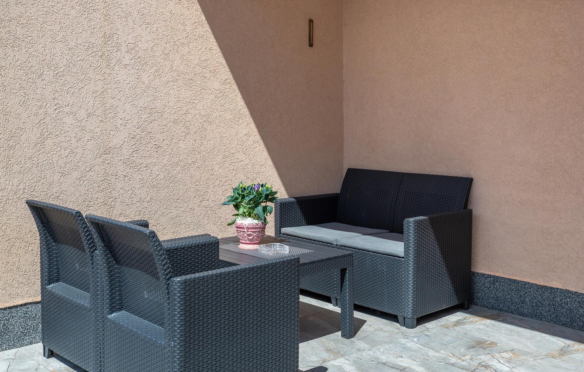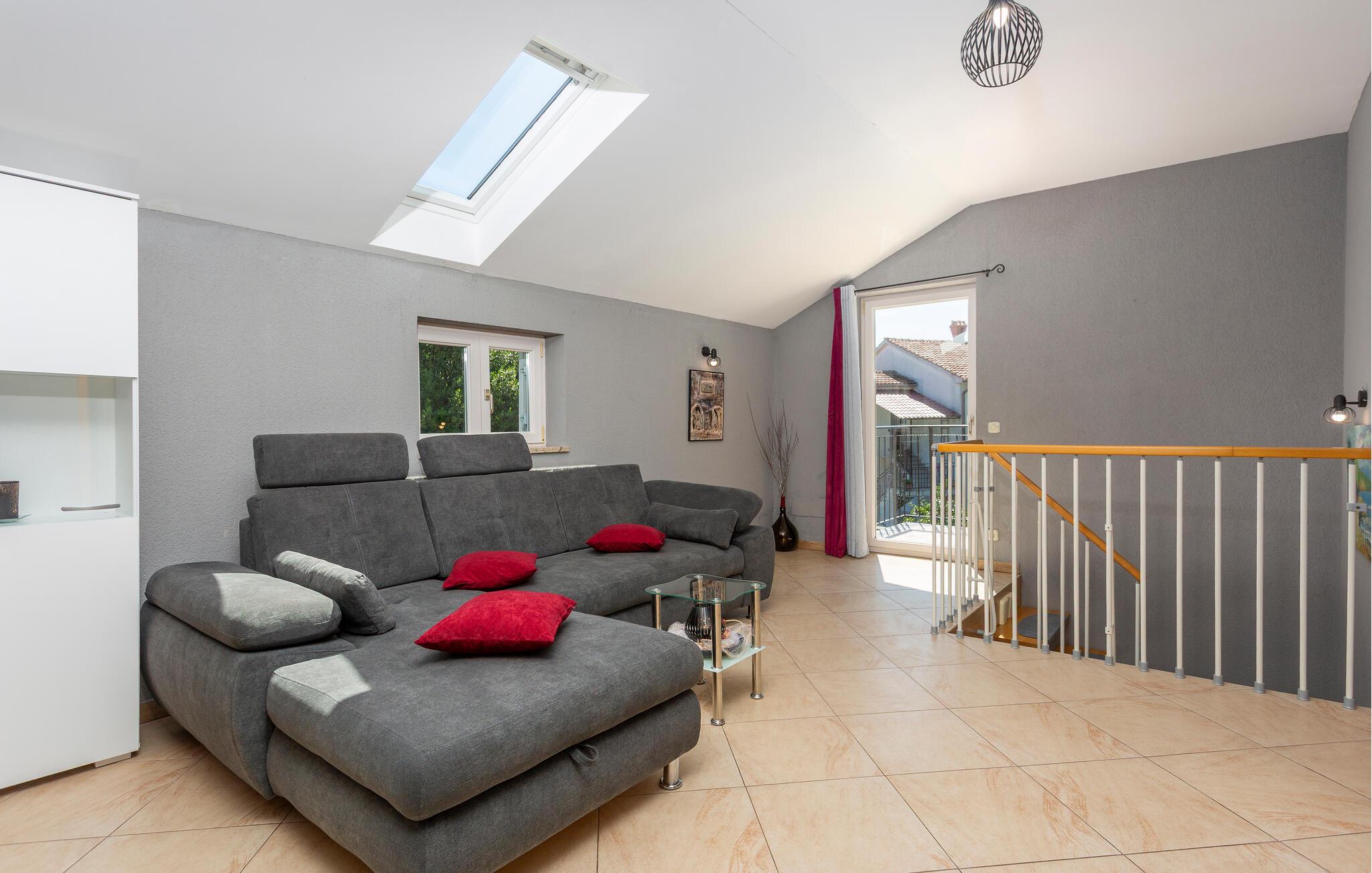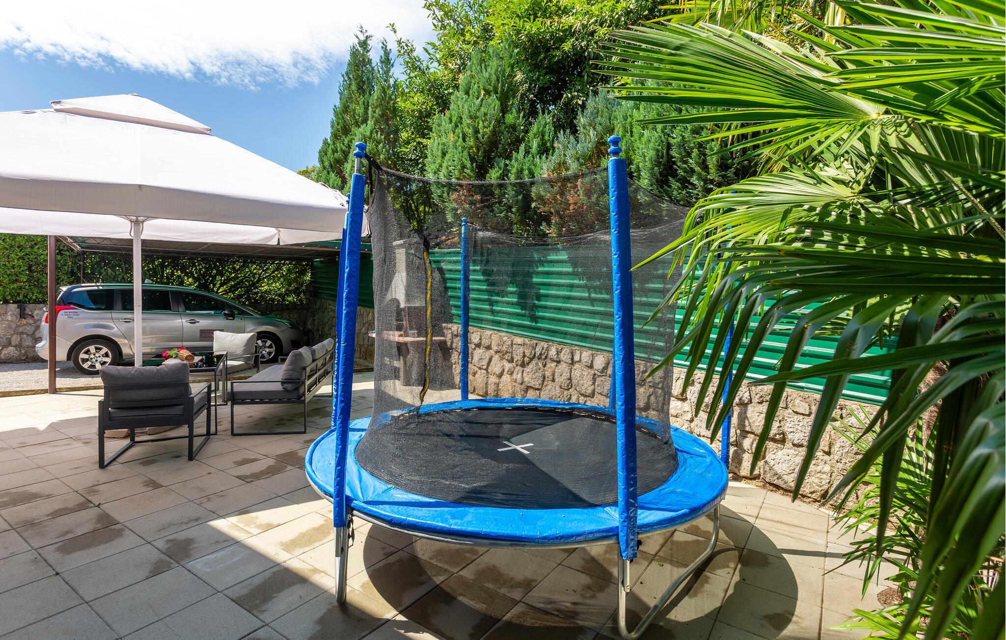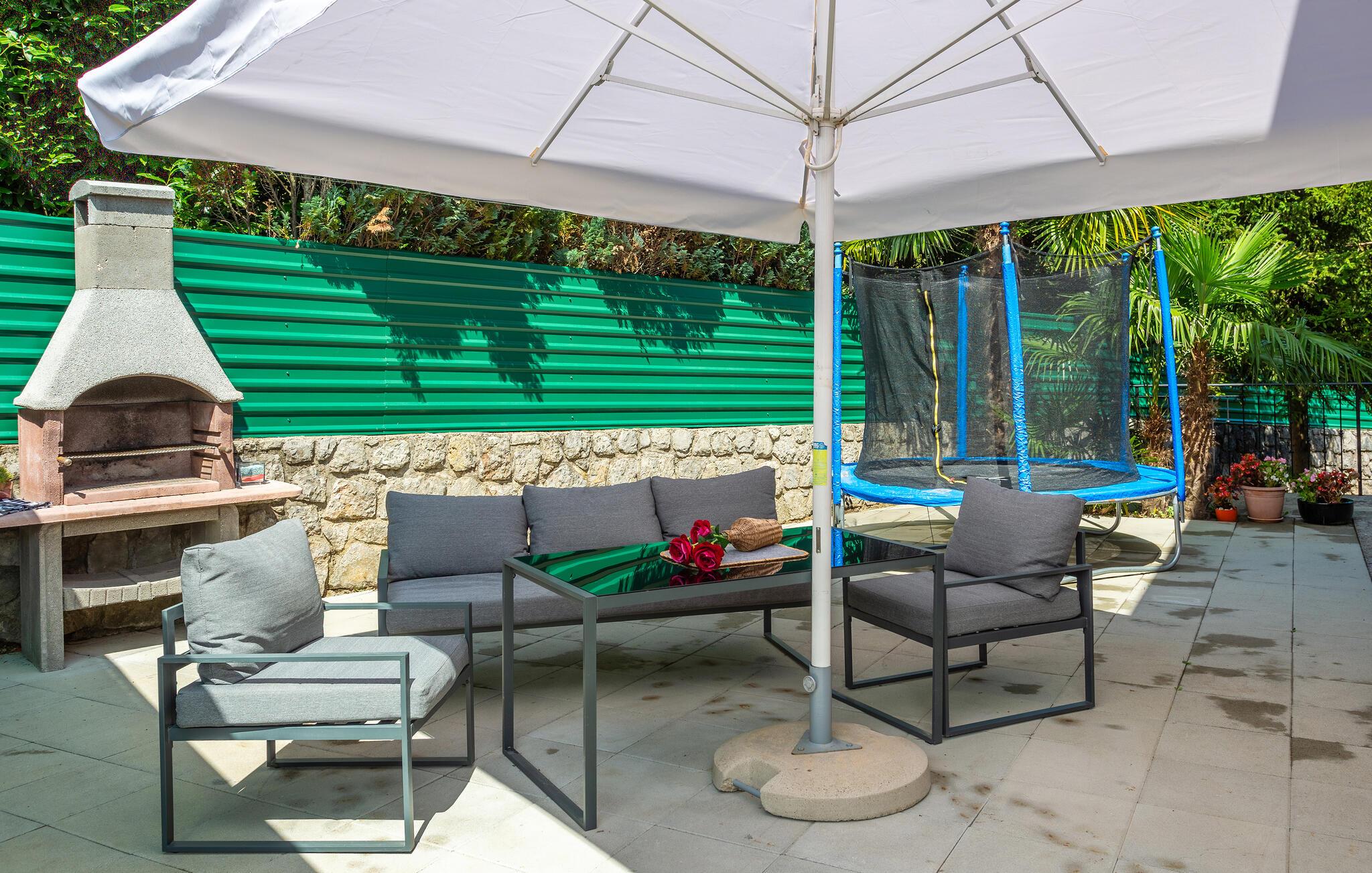 Hvis I planlægger en ferie nær vandet, der også inkluderer spændende aktiviteter, er dette hus det rette valg. Det byder jer velkommen tæt på Kvarnerbugten og tilbyder smukke omgivelser med sit komfortable og moderne design. Efter en aktiv dag kan I finde jer til rette i stuen, nyde et måltid sammen, og senere kan I snakke længe i det hyggelige siddeområde eller se en film sammen.