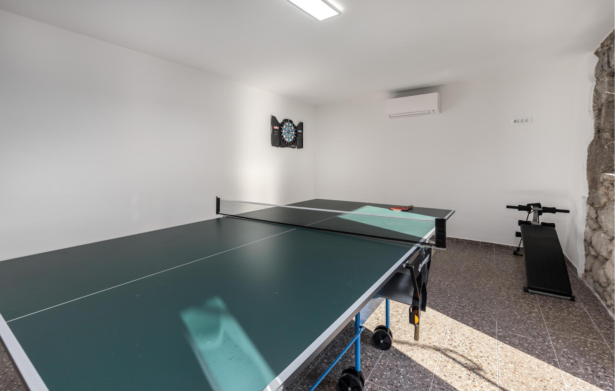 Denne rummelige ejendom tilbyder rigelig plads til en afslappende og varieret ferie med venner eller familie, hvor I forkæles med luksuriøse faciliteter og dejlige ekstrafunktioner. Glæd jer til hyggelige aftener med madlavning og dejlige måltider med vennerne, find sammen til hyggelige spilleaftener eller stream en spændende film.