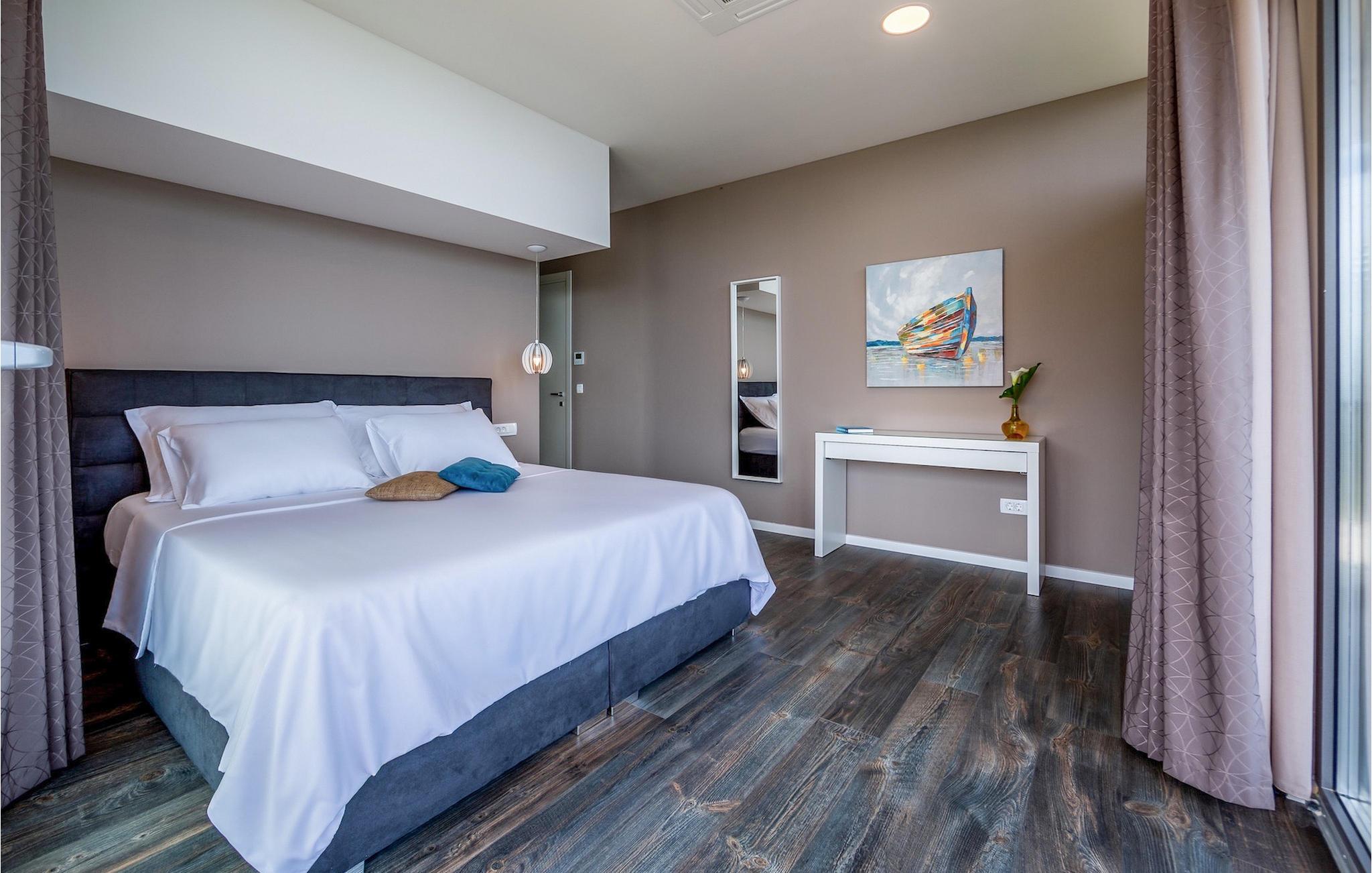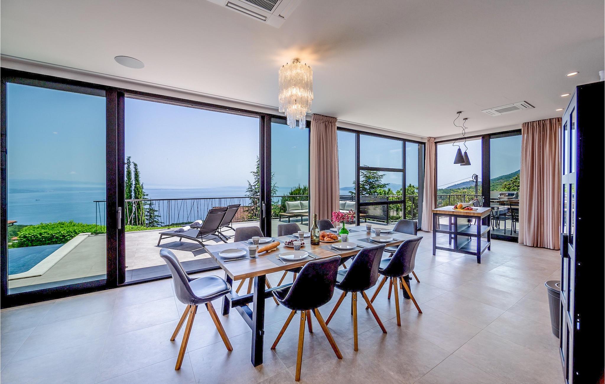 Villa View Opatija er, hvad man ville sætte i beskrivelsen af udtrykket "luksusvilla". Den fanger bare din opmærksomhed ved dens smukke og sofistikerede indretning, dens spa-område med sauna og frem for alt den betagende udsigt fra huset og fra poolområdet. Placeringen øger kun villaens værdi, da den er beliggende nær havet og nær den smukke by Opatija, kendt som Adriaens perle.