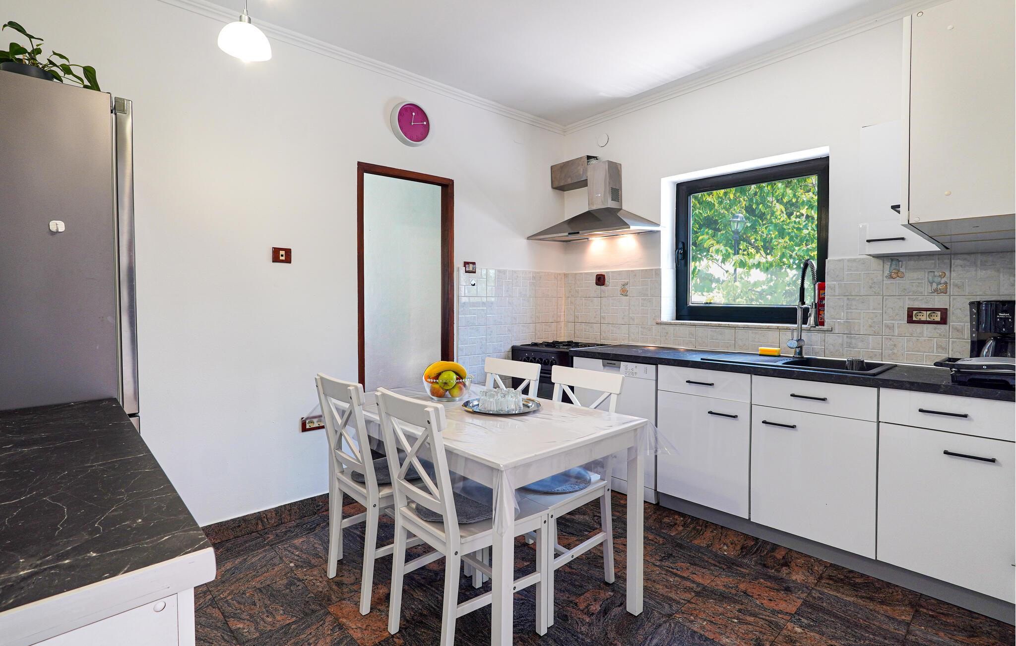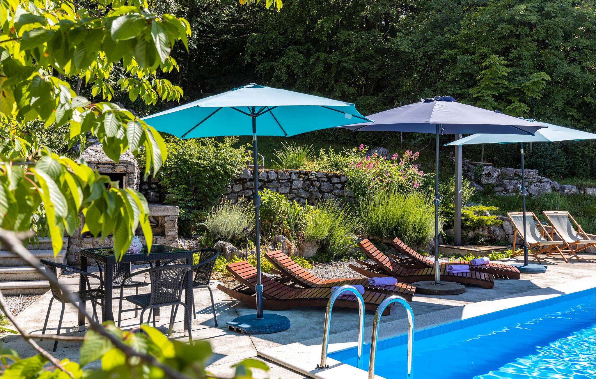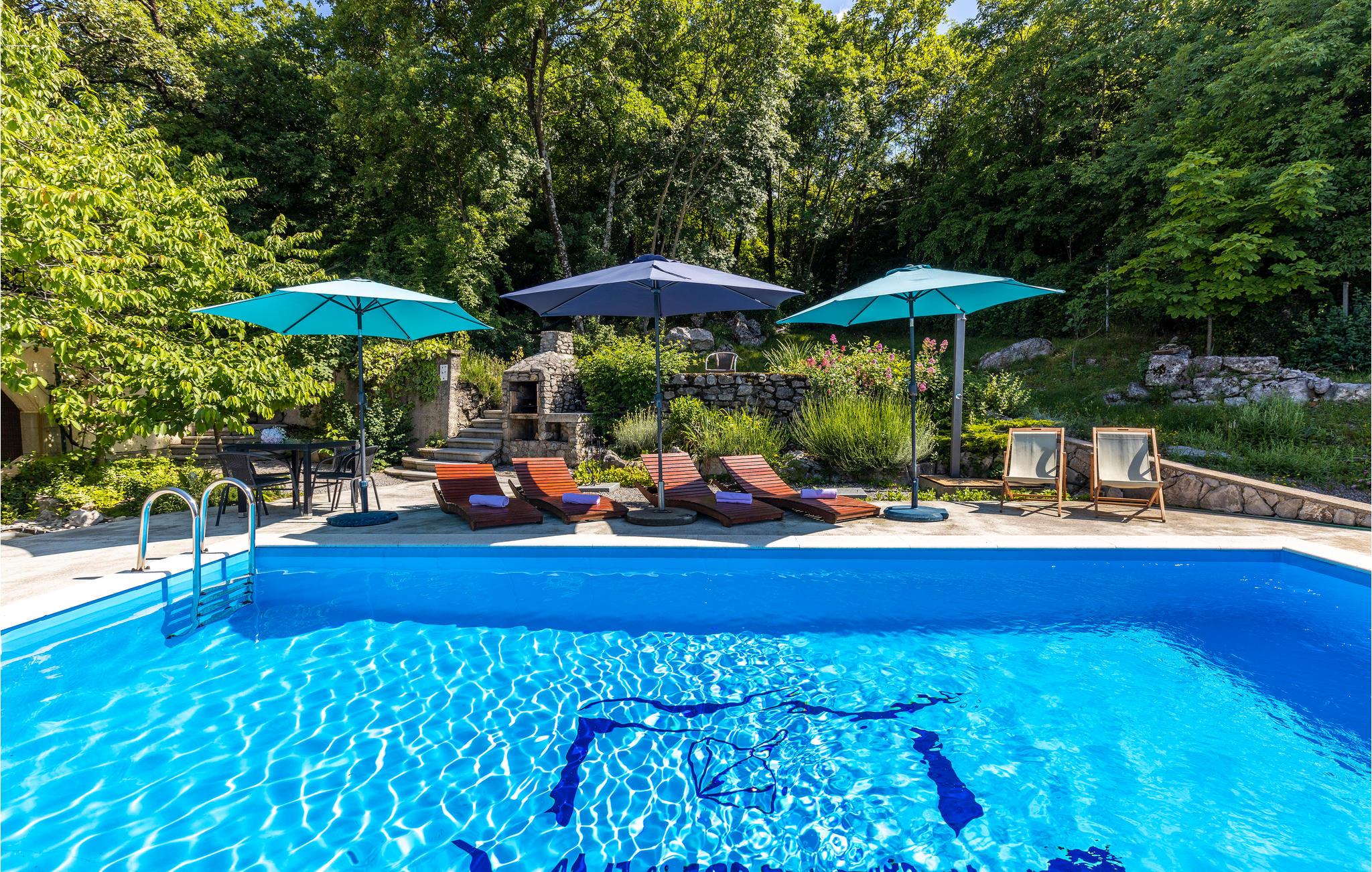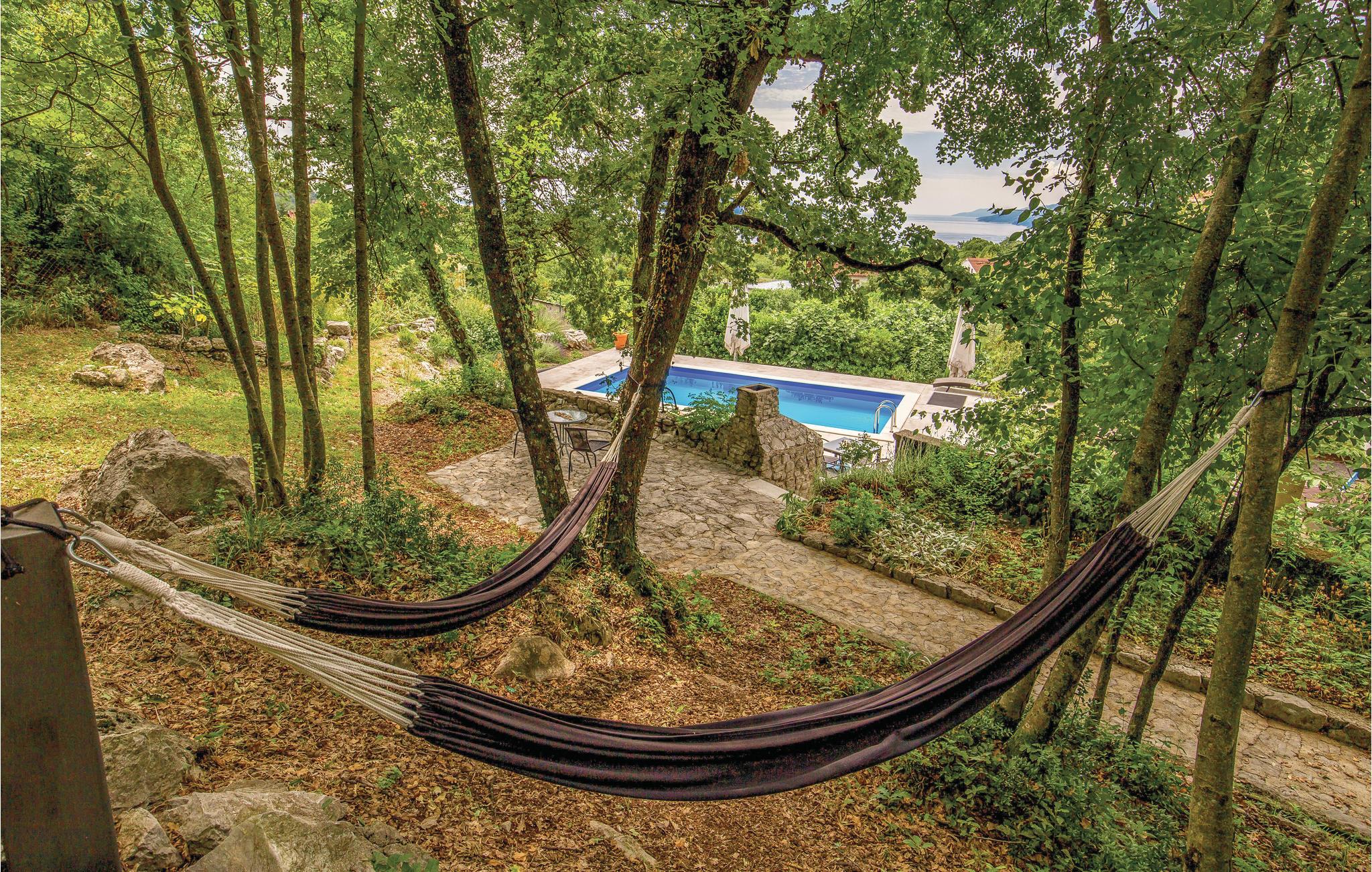 I den lille by Spincici, i nærheden af byen Kastav, over Rijeka, venter dette skønne og rummelige feriehus. På den generøse er der en pool, en gynge og rutsjebane til børn samt et fritidsværelse med billard, bordfodbold og bordtennis. I har selvfølgeligt også en grill til rådighed. I bor over tre etager, med garagen i stueetagen, mens der er hhv. en lejlighed på første og anden sal. Den mindste loftshøjde under taget er ca. 120 cm. I byen Kastav er der forskellige arrangementer i løbet af sommermånederne som blues-festivallen, friluftsbiograf og Kastav-sommerfesten. Besøg også Opatijas riviera, der byder på en skøn promenade og strande. På Internet-TV'et IPTV kan du modtage forskellige gratis tv-kanaler og sportsudsendelser.