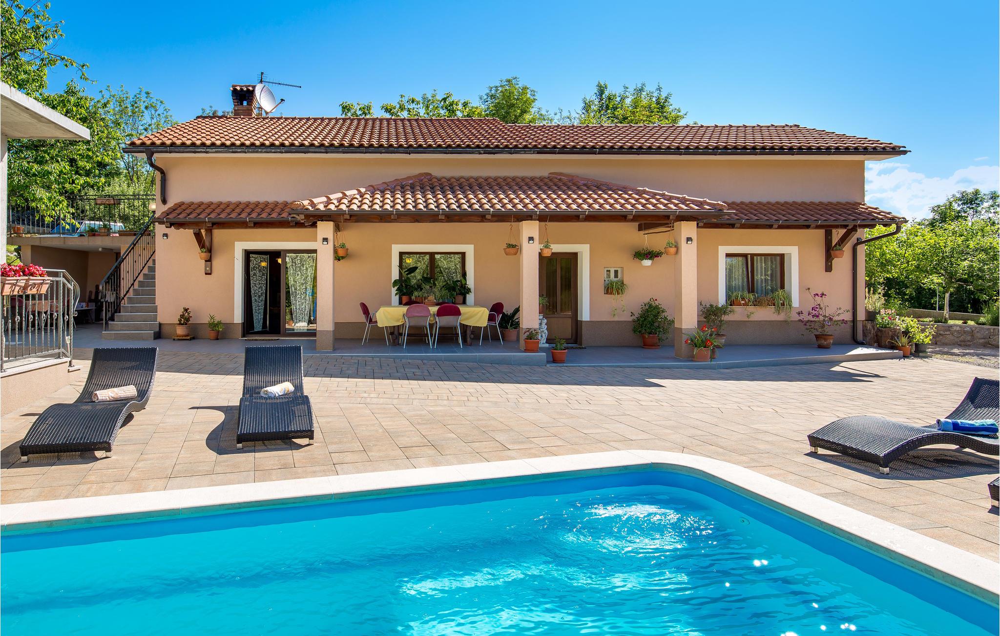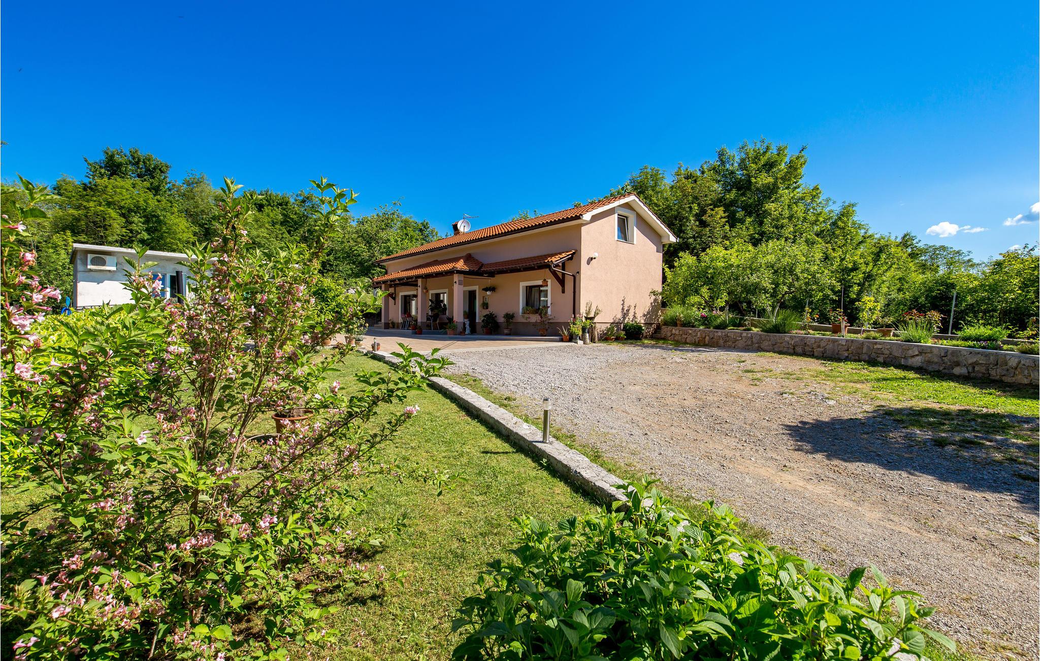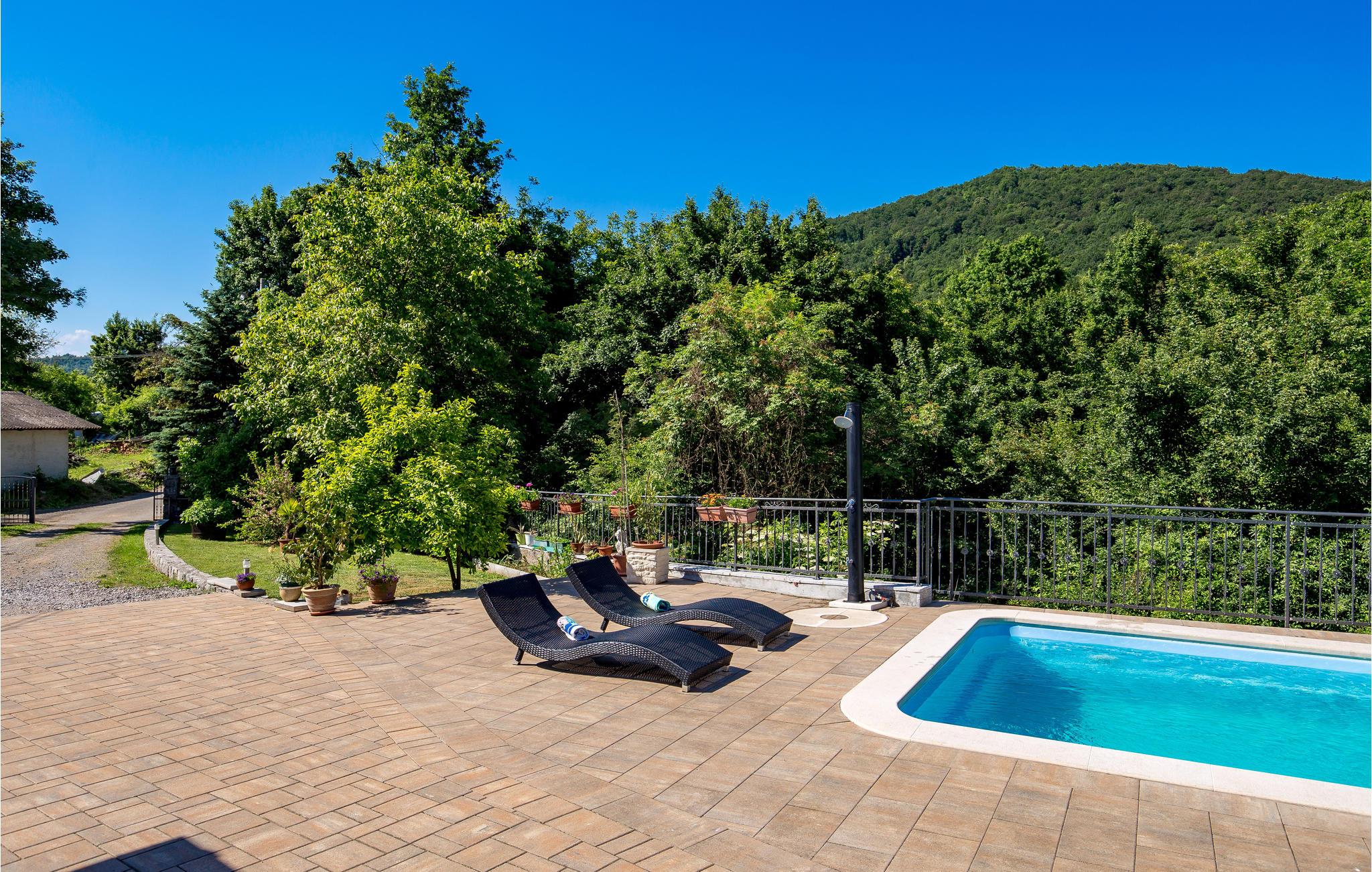 Feriehuset ligger i udkanten af landsbyen, og hele vejen rundt kan du nyde den grønne natur, marker, enge og et afslappet skovlandskab. Ferieboligen strækker sig til stueetagen og er indrettet med stor omhu, hvilket sikrer en hyggelig atmosfære. Ud over en stor stue er der også 2 soveværelser og en overdækket terrasse ved indgangen til huset. Slap af på denne store ejendom med pool og nyd kombinationen af ??hav- og bjergklima med varme og solrige sommerdage og køligere nætter.