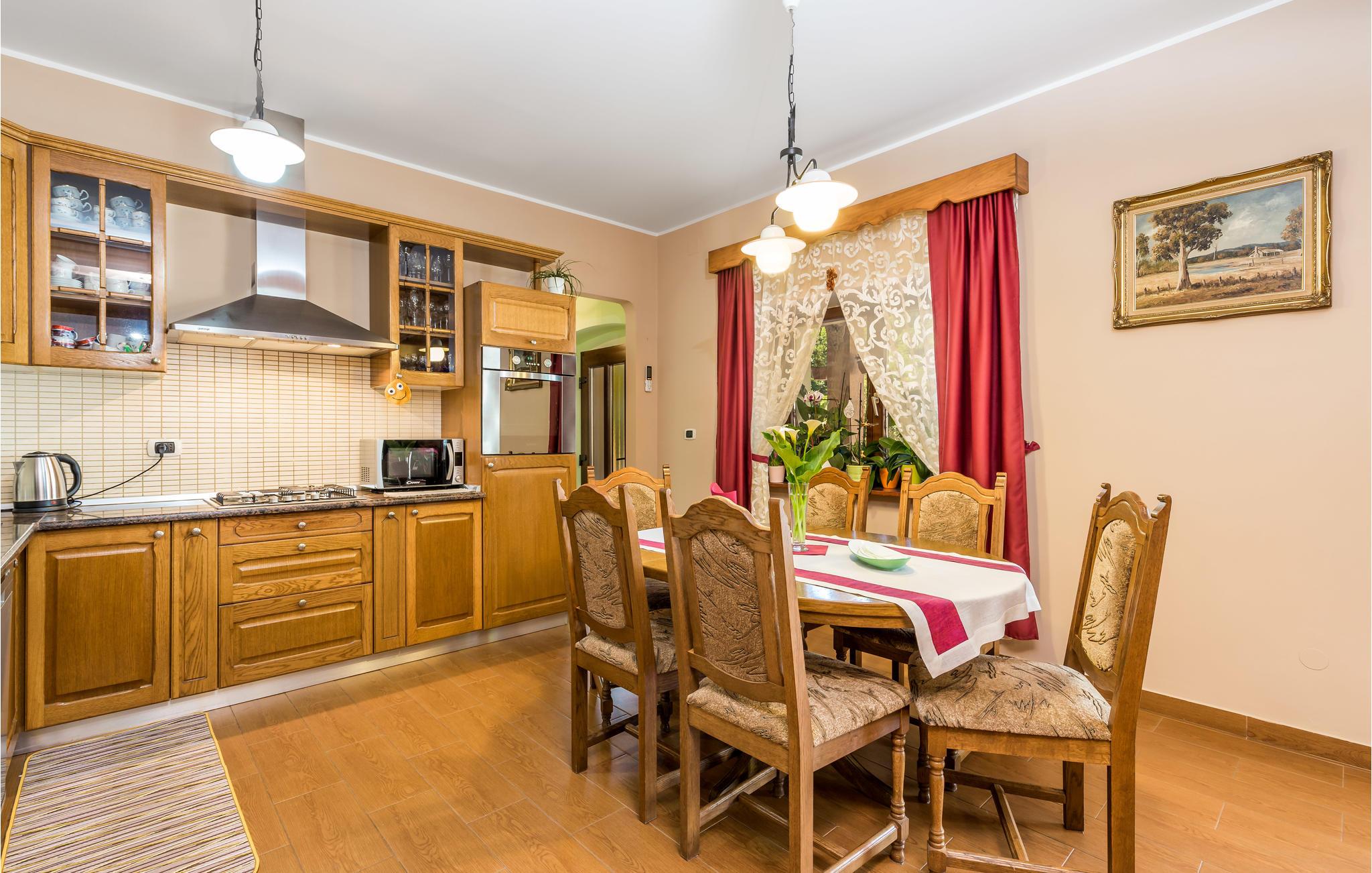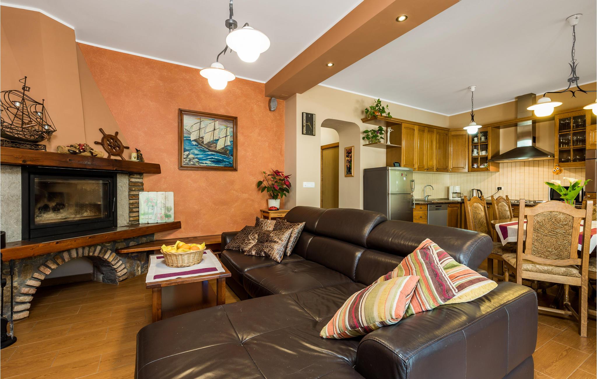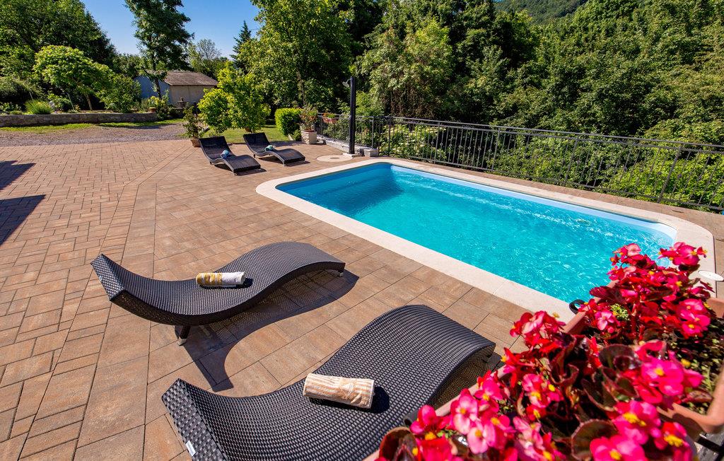 Feriehuset ligger i udkanten af landsbyen, og hele vejen rundt kan du nyde den grønne natur, marker, enge og et afslappet skovlandskab. Ferieboligen strækker sig til stueetagen og er indrettet med stor omhu, hvilket sikrer en hyggelig atmosfære. Ud over en stor stue er der også 2 soveværelser og en overdækket terrasse ved indgangen til huset. Slap af på denne store ejendom med pool og nyd kombinationen af ??hav- og bjergklima med varme og solrige sommerdage og køligere nætter.