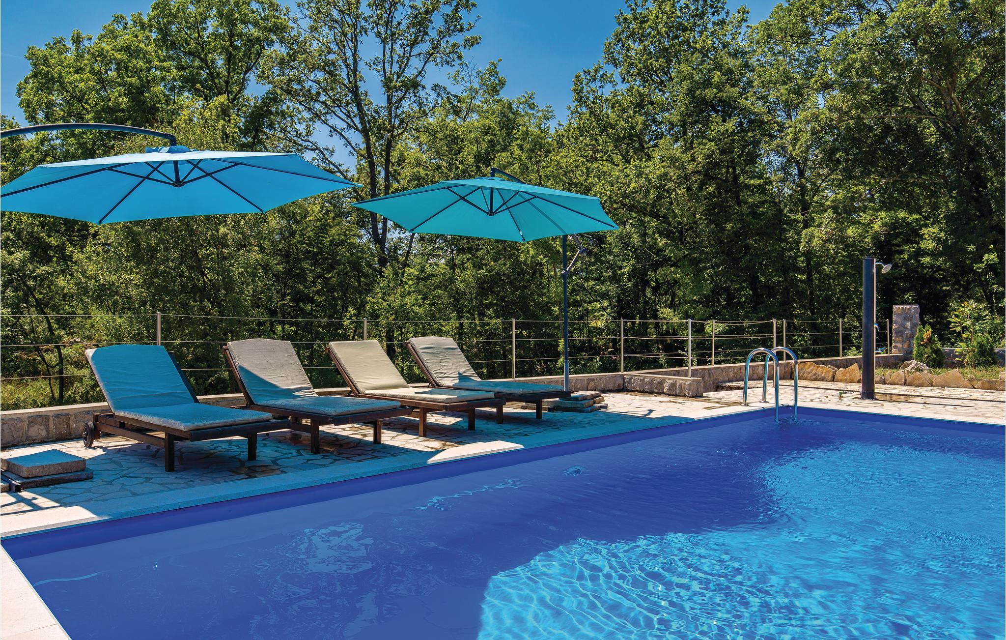 Over den fortryllende Kvarnerbugt, ikke langt fra en idyllisk skov, ligger dette feriehus. Det strækker sig over både stueplan og første sal, der er forbundet via udendørs trapper. I stueplan er der et soveværelse, et badeværelse og et lille køkken, mens S2 også kan bruges som stue da her her sovesofa. På første sal er der to soveværelser, et badeværelse, et rummeligt køkken og en stue. I vil nok tilbringe meget tid ved og i poolen, ligesom jeres børn vil sætte pris på haven, hvor de kan tumle sig og spille bold. I kan hygge jer sammen i pavillonen, hvor der er en grill, og kan høste grøntsager i haven, hvis de er parat. Vil I bade i det krystalklare hav, så varer det ikke længe at køre til de skønne strande ved Rijeka og Opatija.