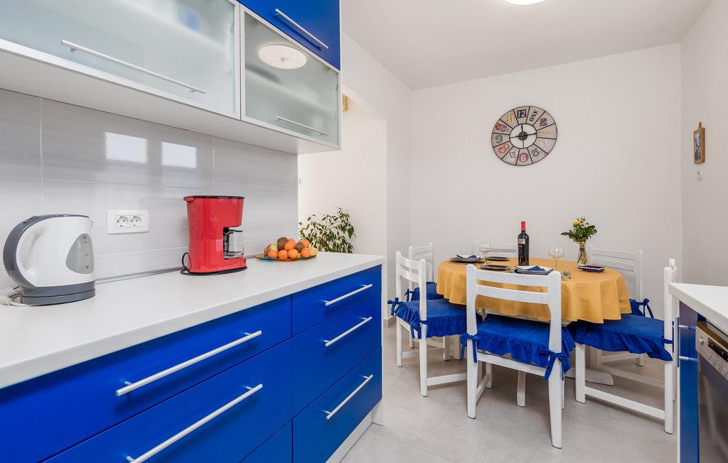 Denne venligt og praktisk indrettede ferielejlighed ligger i stueetagen af en privat ejendom. Slap af på den hyggelige terrasse, der er omringet af grønt. Lejligheden råder over tre soveværelser, en dagligstue med køkken og to badeværelser. I bil kommer I hurtigt til byerne Rijeka og Opatija. Her venter idylliske gåture ved havet, flotte strande, kulturelle arrangementer, fremragende restauranter og maleriske kystbyer. Hold en pause i et af restauranterne og smag på traditionelle specialiteter fra havet. Har I lyst til en aktiv ferie, kan I tage på udflugt i naturparken i Ucka bjerkæden. Her kan I både vandre og prøve paragliding. Øerne Cres og Krk er ligeledes et besøg værd.