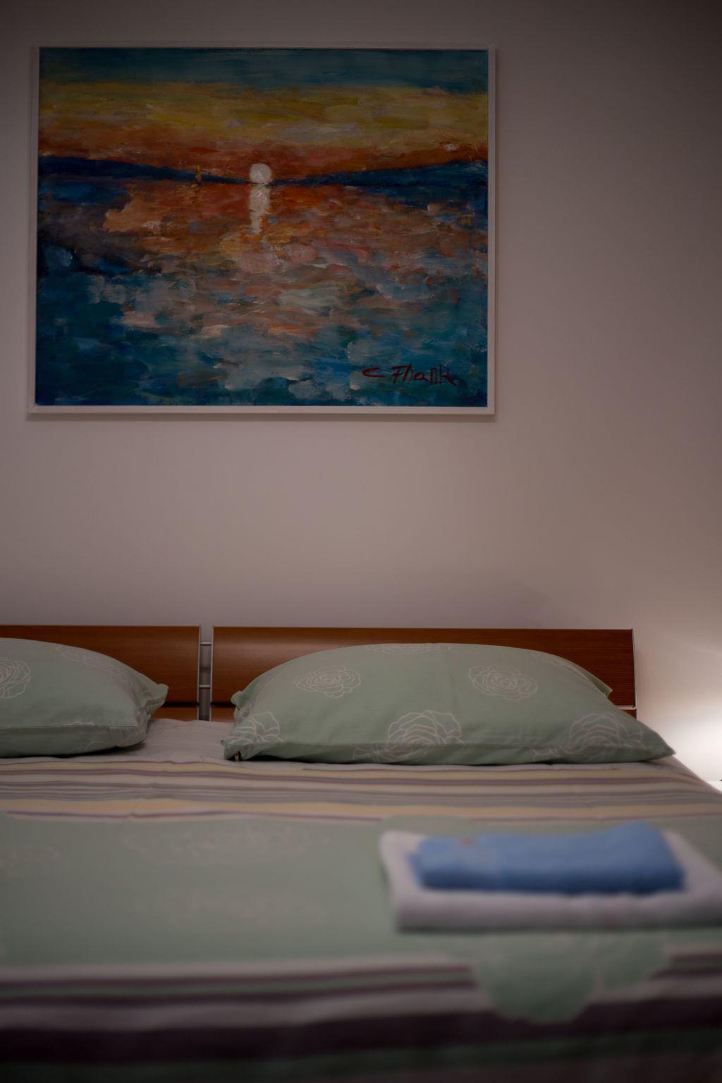 The 65 sq m flat is located on the ground floor of a new private building. It has two double bedrooms and an additional sofa bed in the living area. The kitchen is equipped with a dishwasher, coffee machine and microwave, among other amenities. The dining area and living room are also located in the spacious kitchen. The bathroom has a shower, sink, bidet and washing machine. Each room has air conditioning, central heating, satellite TV and a separate entrance. Internet access is also available.
