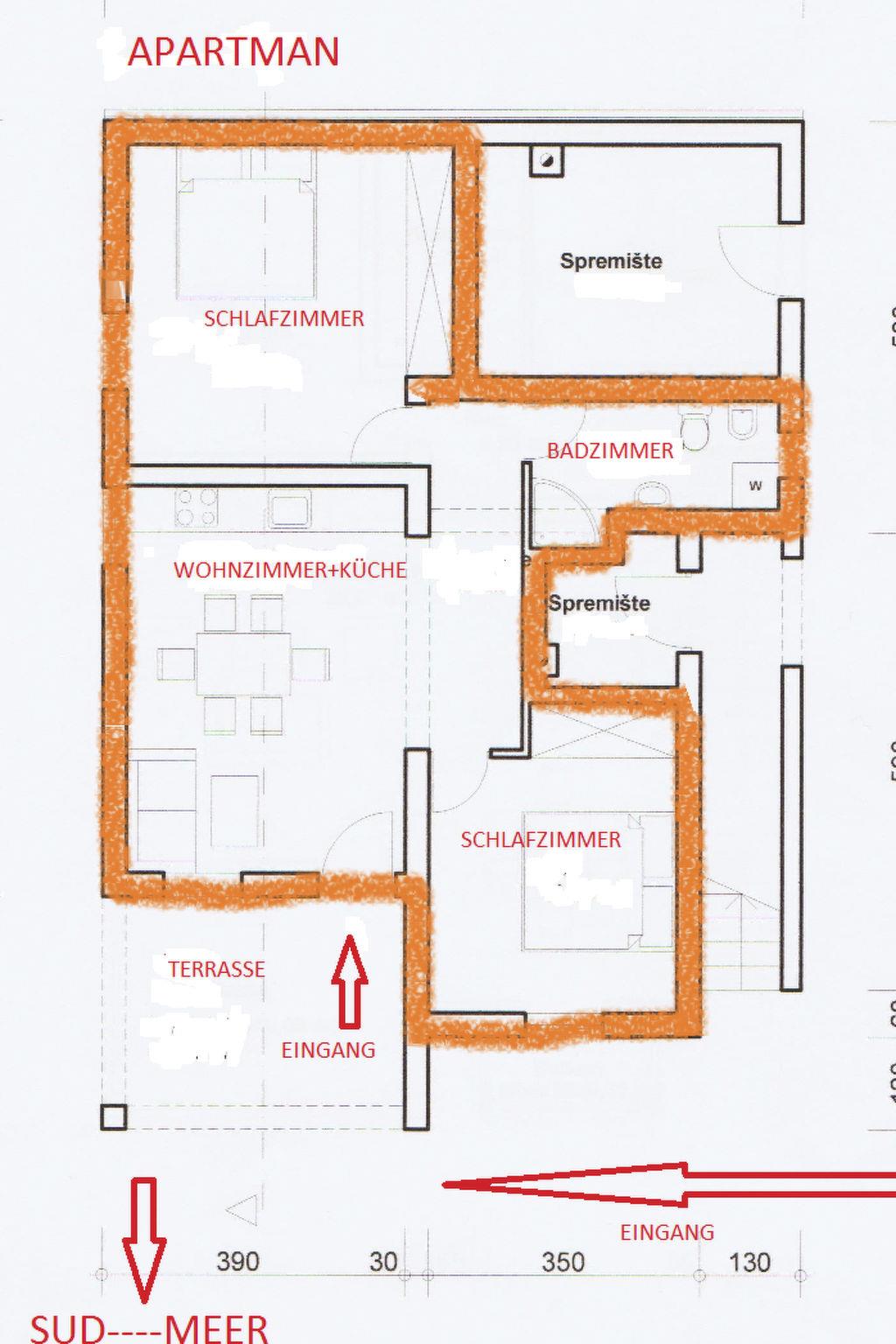 The building is located above the old fishing village of Volosca, a hamlet of Opatija. Its location offers a magnificent view of the Kvarner Bay. It is located 300 metres from the sea, at an altitude of 65 metres. The sea and restaurants are within easy walking distance, while the centre of Opatija is only 1 km away.