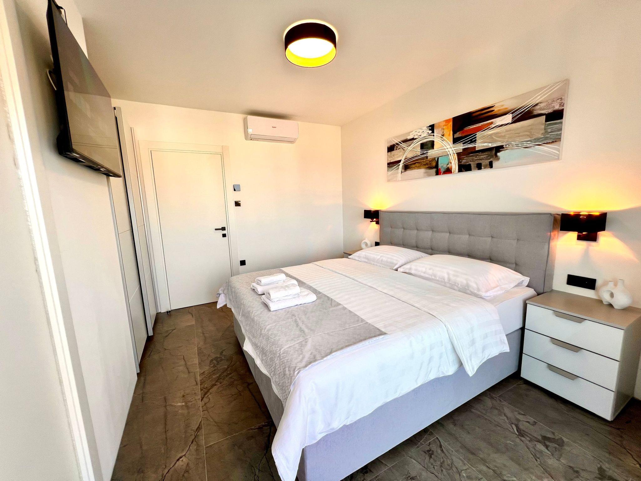 Inside, the apartment boasts three beautifully appointed bedrooms, each complemented by its own bathroom, ensuring privacy and ease for all guests. The inclusion of air conditioning throughout the apartment guarantees your comfort regardless of the season. Entertainment is readily available thanks to the smart TV, and practical amenities like a washing machine, clothes dryer, espresso coffee pot, dishwasher, and electric kettle add a touch of home. The underfloor heating system throughout ensures a cozy environment, perfect for those cooler evenings.