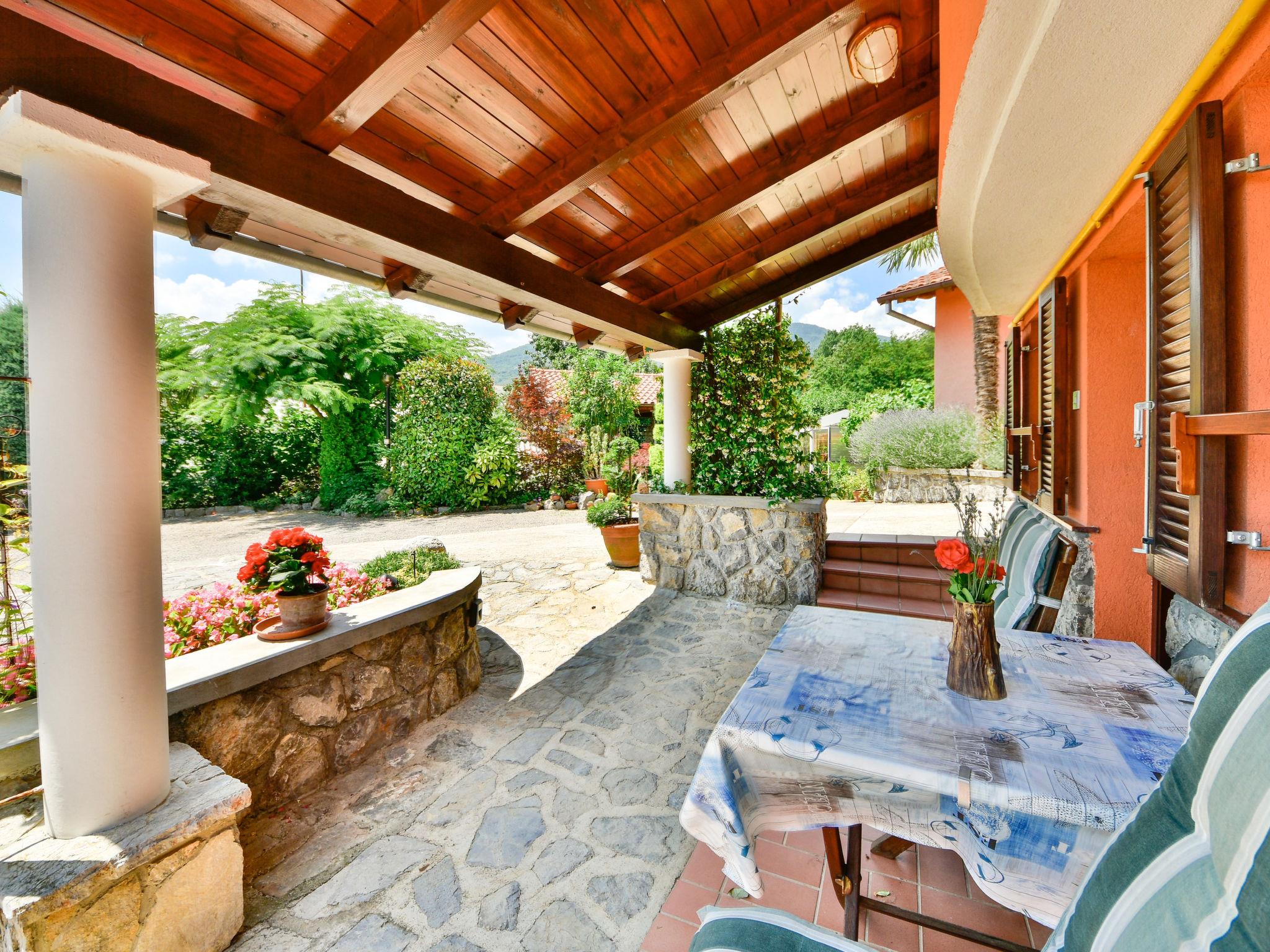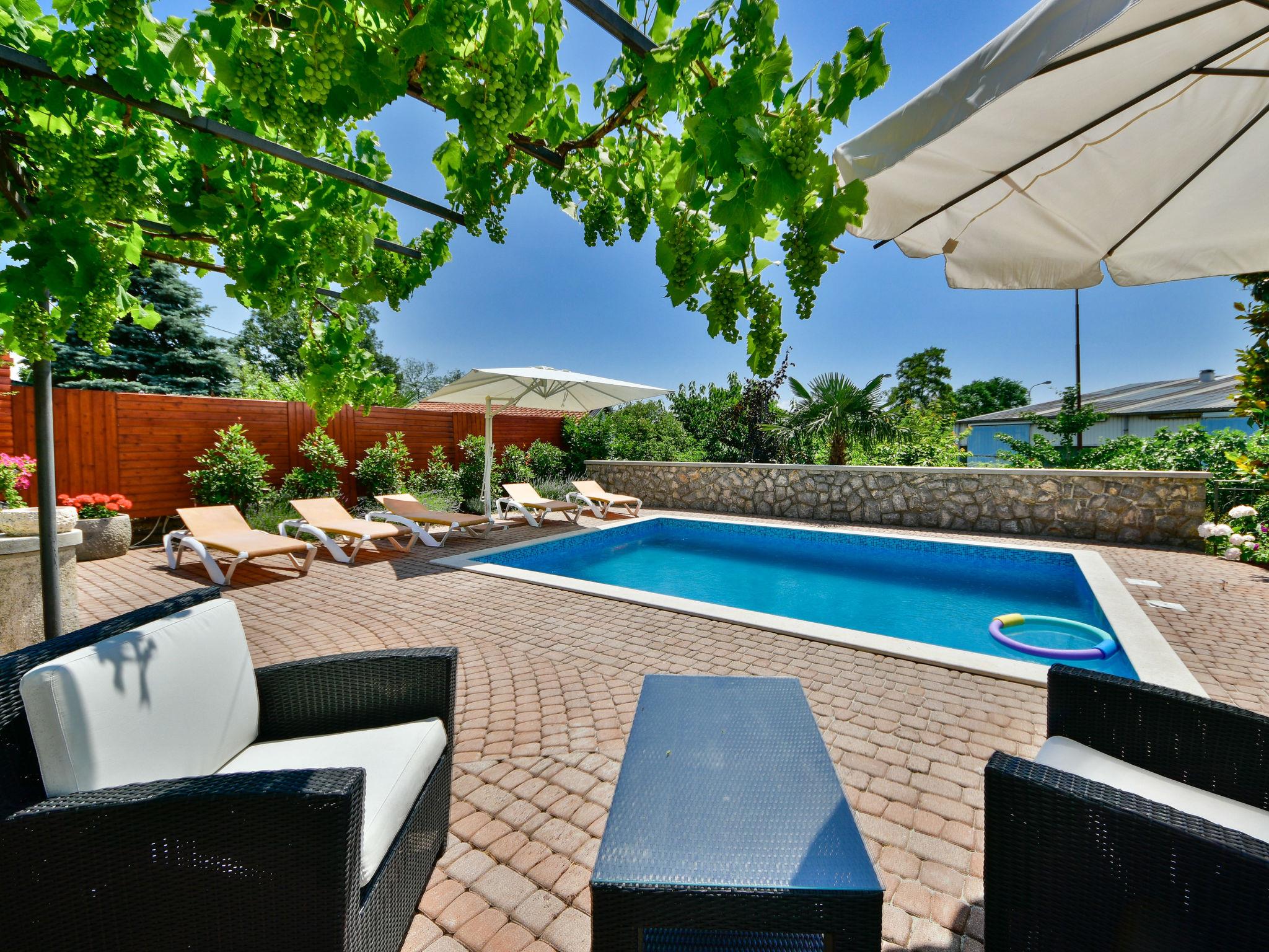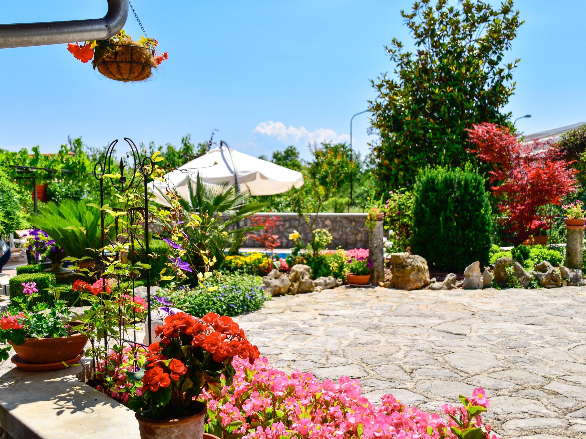 Matulji: Apartment house "Lidija". 800 m from the centre of Matulji, 5.5 km from the centre of Opatija, in a sunny position, 3.5 km from the sea, 3.5 km from the beach. For shared use: property 1'200 m2. Private: property 400 m2, garden with wildlife garden and flowers, swimming pool angular (6 x 4 m, depth 140 cm, seasonal availability: 27.Apr. - 12.Oct.). Paddling pool, outdoor shower, terrace (50 m2), garden furniture, barbecue. In the house: internet access. Parking (for 3 cars) at the house on the premises. Shop 800 m, supermarket 1.4 km, restaurant 800 m, bus stop 260 m, pebble beach 3.5 km, concrete beach 3.5 km.