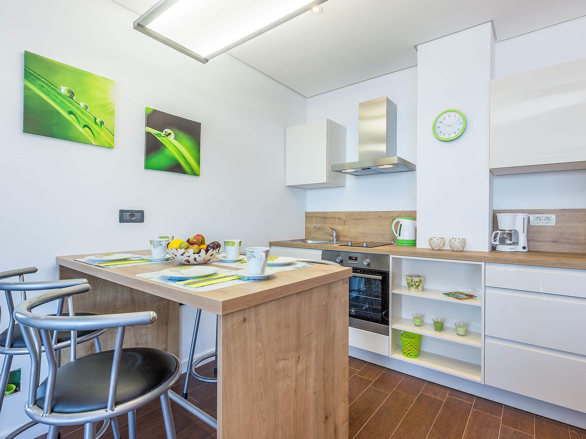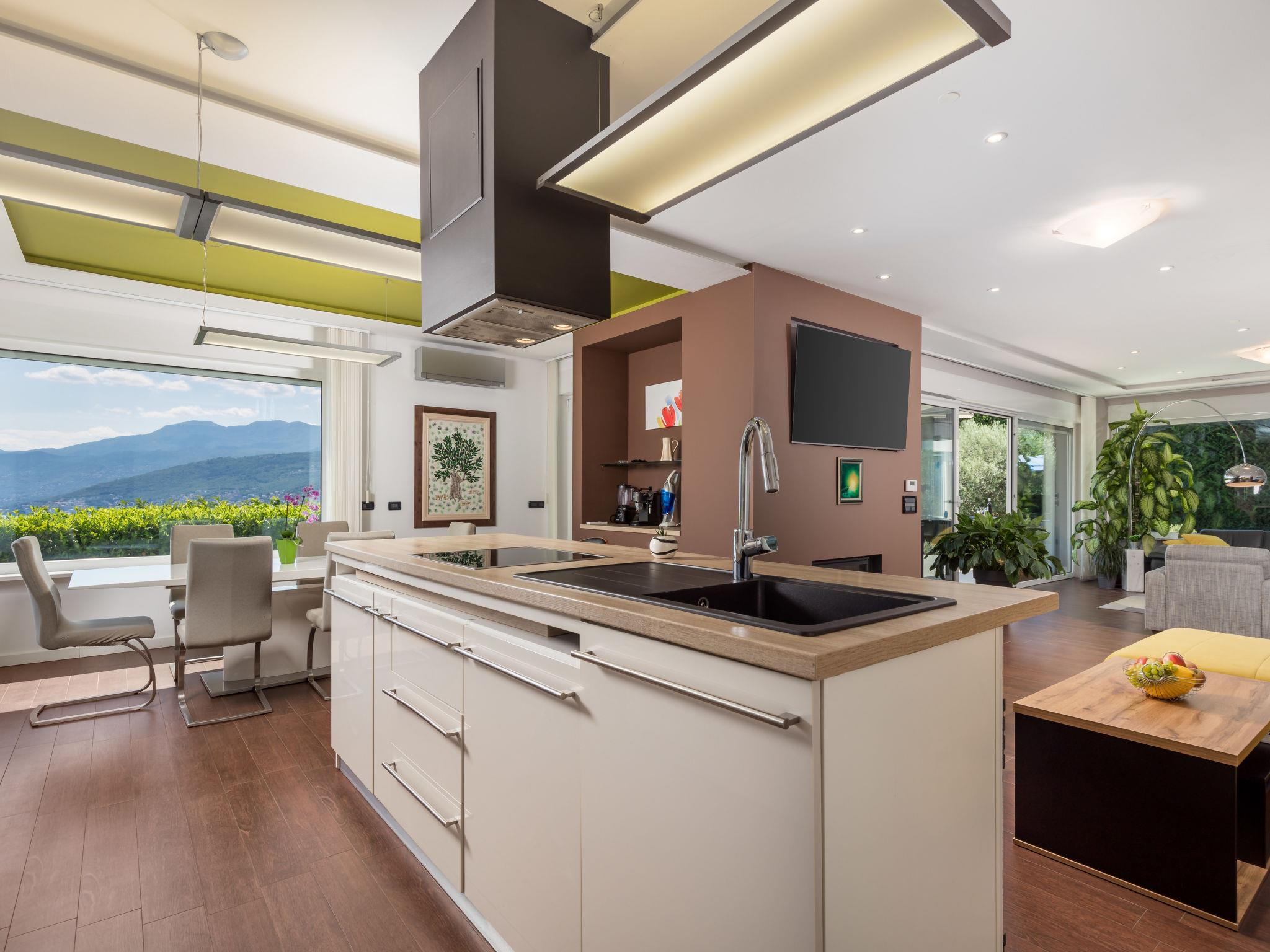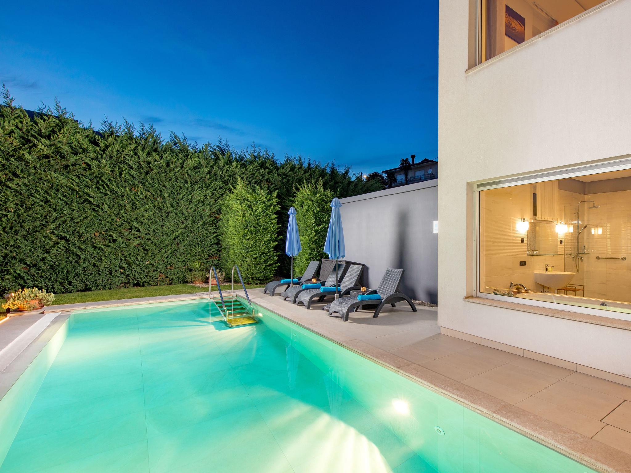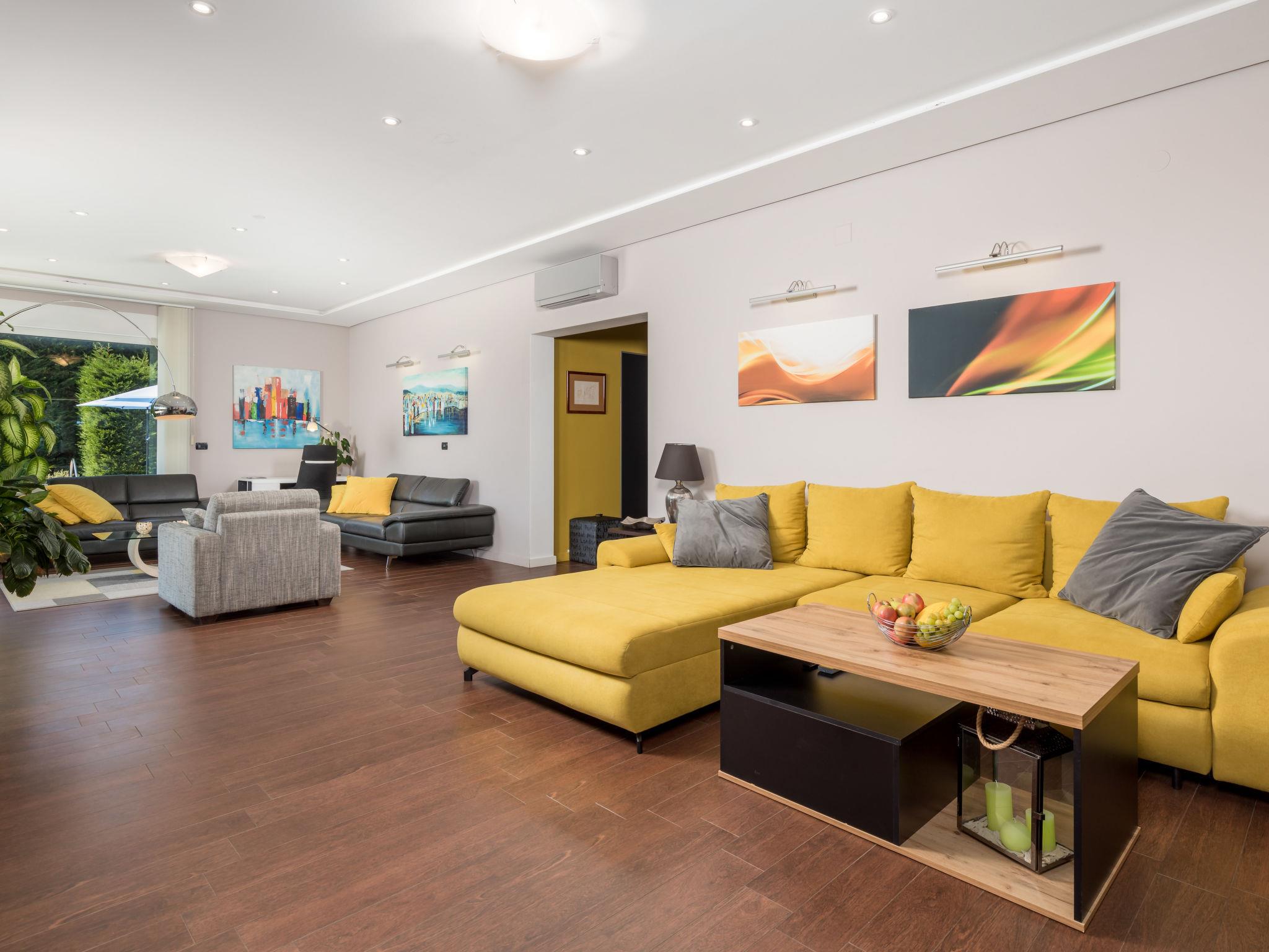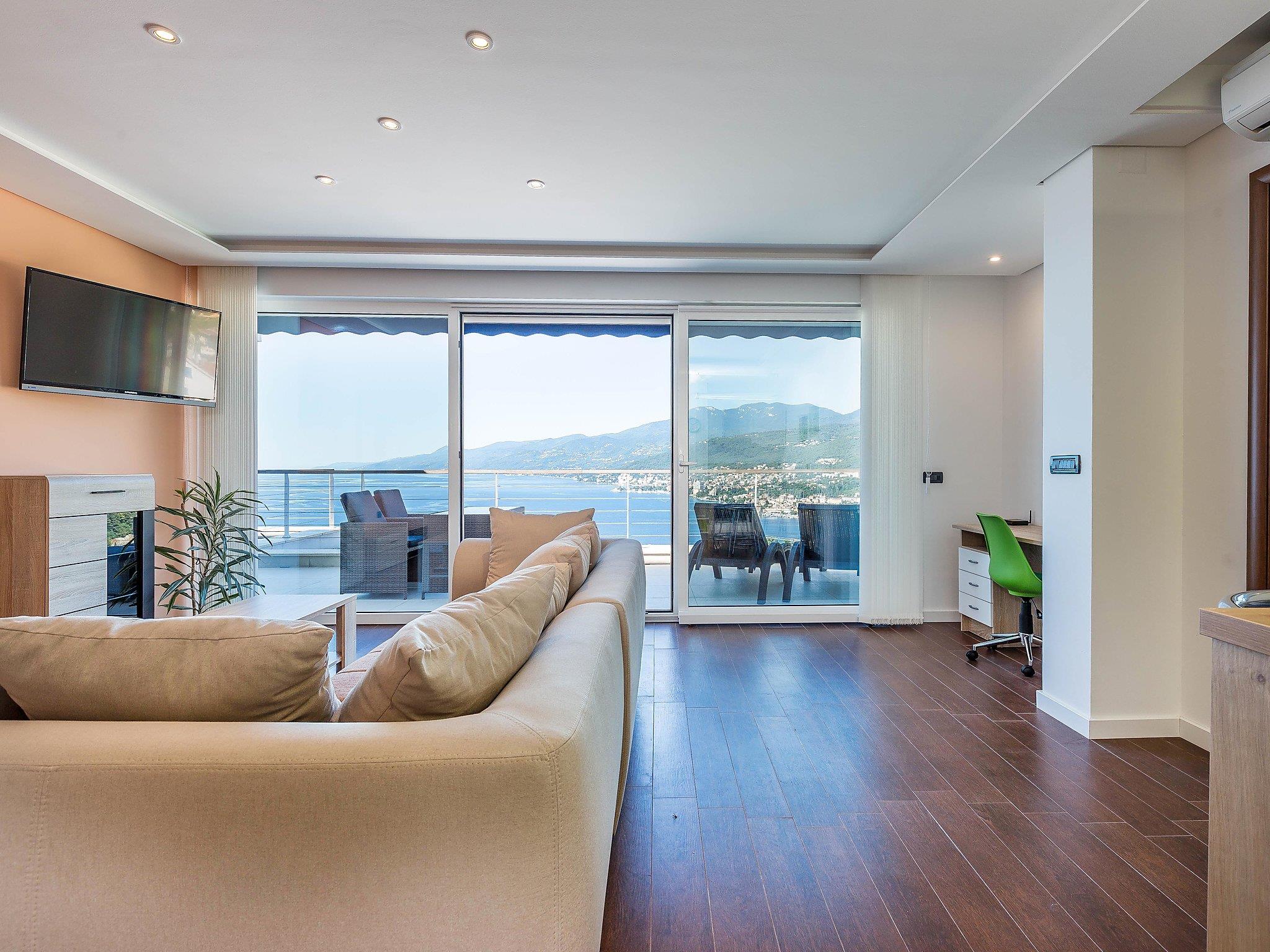 Matulji: Modern, beautiful villa "Vista", 2 storeys. 1.7 km from the centre of Matulji, 3.5 km from the centre of Opatija, in a quiet, sunny, elevated position, 2.5 km from the sea, 2.5 km from the beach, in a cul-de-sac. Private: property 1'050 m2 (fenced), lawn 300 m2, swimming pool angular (32 m2, depth 150 - 160 cm, seasonal availability: 21.May. - 15.Sep.). Outdoor shower, barbecue. In the house: internet access, washing machine, tumble dryer. Parking (for 6 cars) at the house on the premises. Shop, supermarket 700 m, restaurant 2 km, bus stop 400 m, pebble beach 2.5 km, concrete beach 2.5 km. Walking paths from the house 2 km. Please note: suitable for families. The owner does not accept any youth groups. Neighbourhood highly sensitive to noise. Quietness and good behaviour expected. Organizing a party is not allowed. The house consists of 3 apartments rented as one unit: one apartment on the ground floor and two apartments on the first floor.