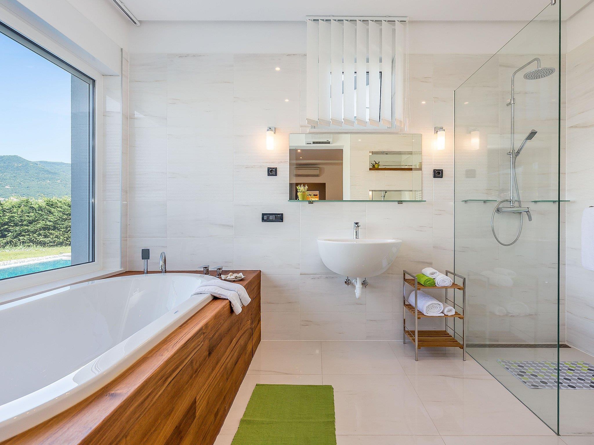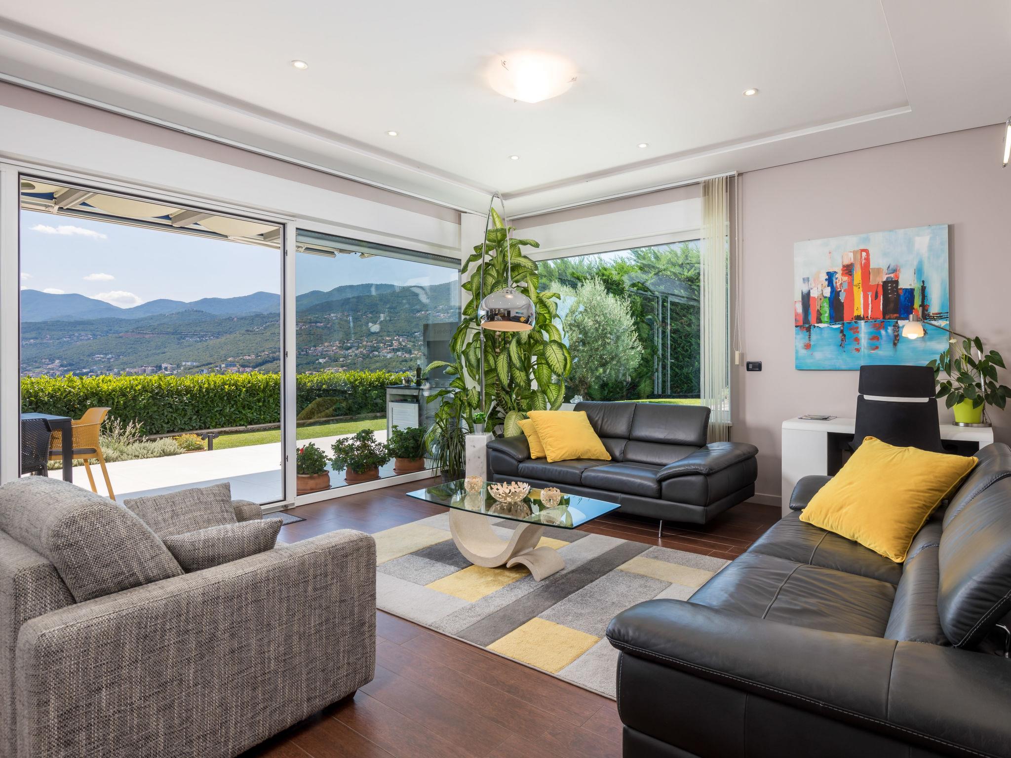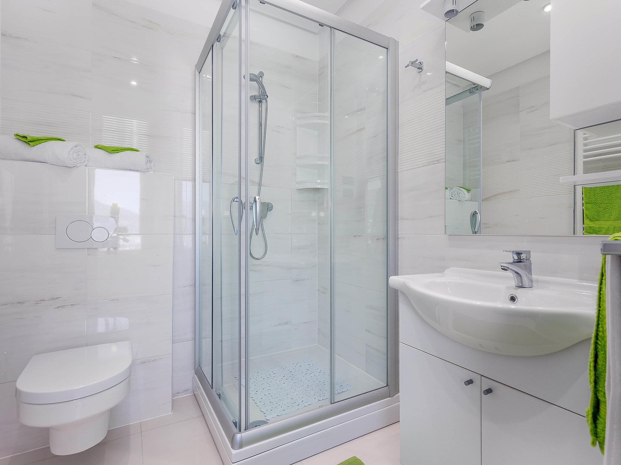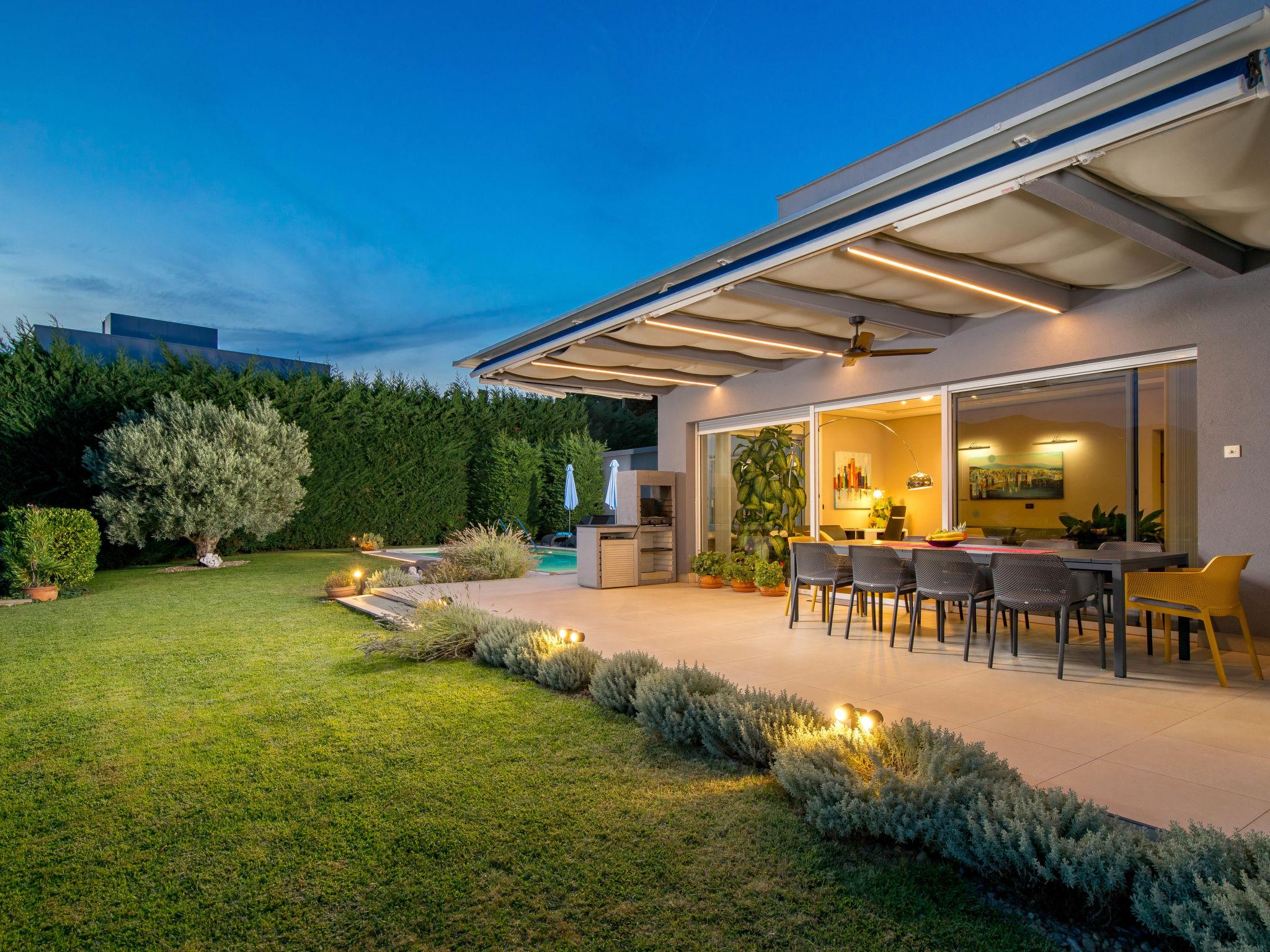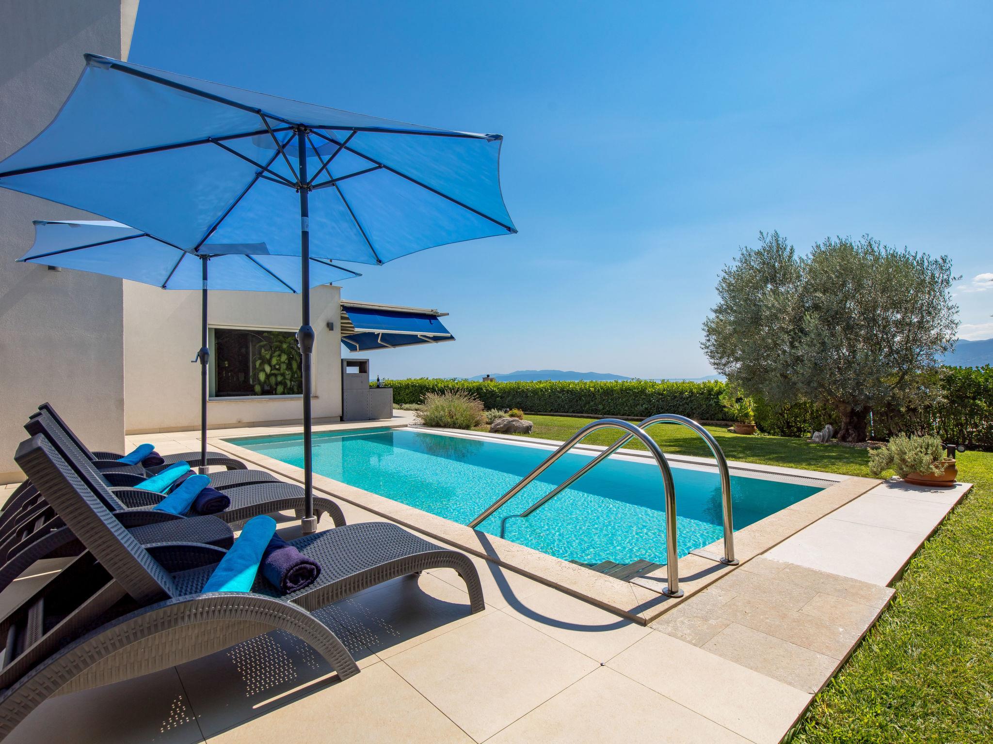 Matulji: Modern, beautiful villa "Vista", 2 storeys. 1.7 km from the centre of Matulji, 3.5 km from the centre of Opatija, in a quiet, sunny, elevated position, 2.5 km from the sea, 2.5 km from the beach, in a cul-de-sac. Private: property 1'050 m2 (fenced), lawn 300 m2, swimming pool angular (32 m2, depth 150 - 160 cm, seasonal availability: 21.May. - 15.Sep.). Outdoor shower, barbecue. In the house: internet access, washing machine, tumble dryer. Parking (for 6 cars) at the house on the premises. Shop, supermarket 700 m, restaurant 2 km, bus stop 400 m, pebble beach 2.5 km, concrete beach 2.5 km. Walking paths from the house 2 km. Please note: suitable for families. The owner does not accept any youth groups. Neighbourhood highly sensitive to noise. Quietness and good behaviour expected. Organizing a party is not allowed. The house consists of 3 apartments rented as one unit: one apartment on the ground floor and two apartments on the first floor.