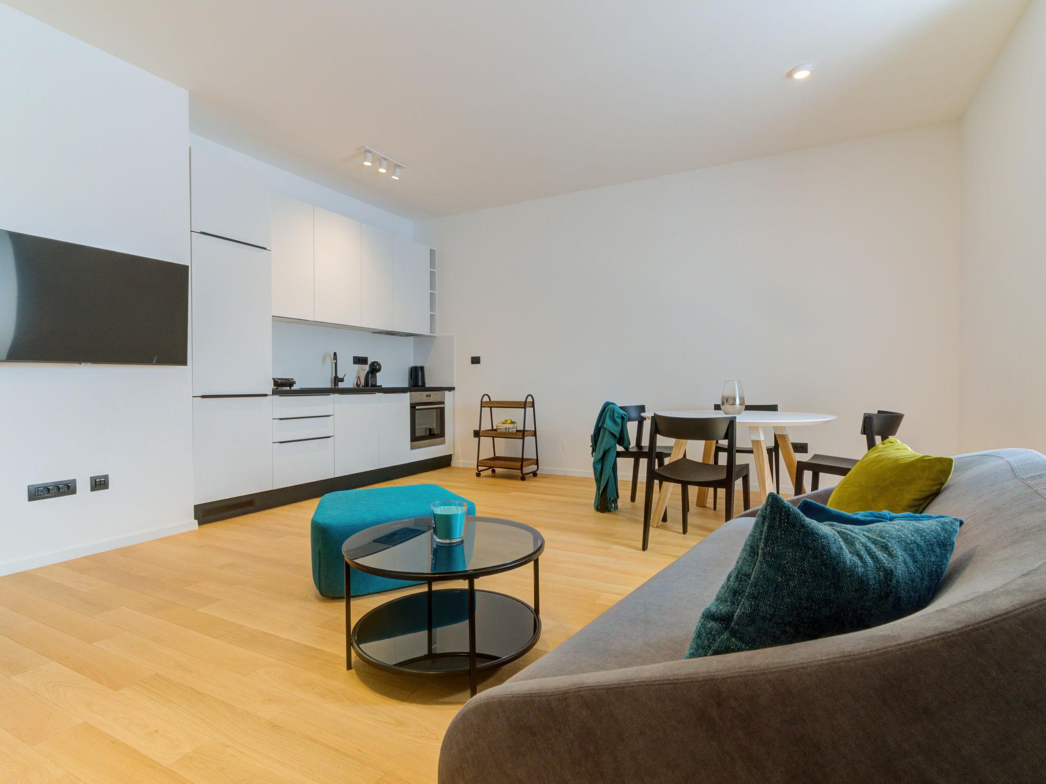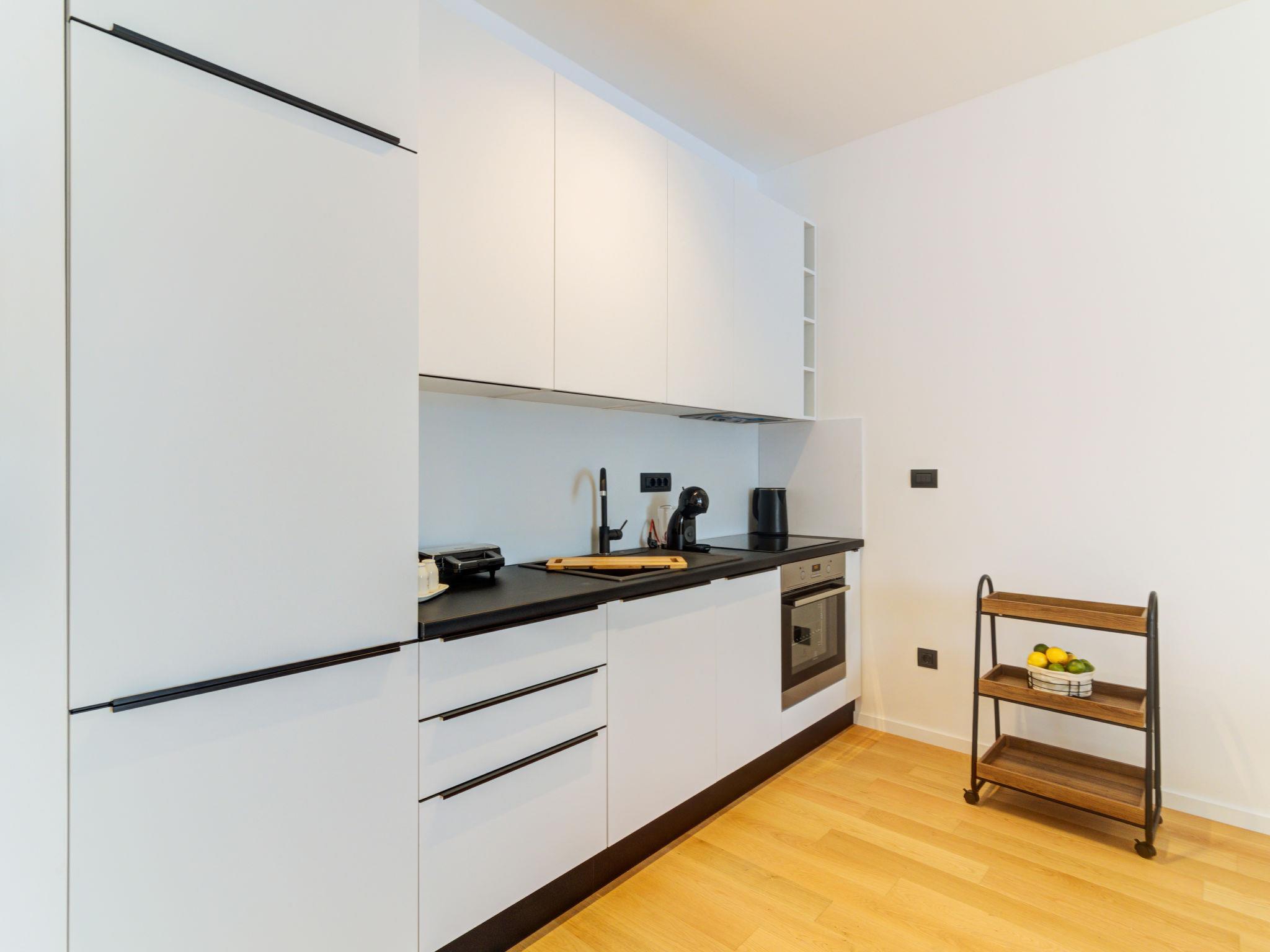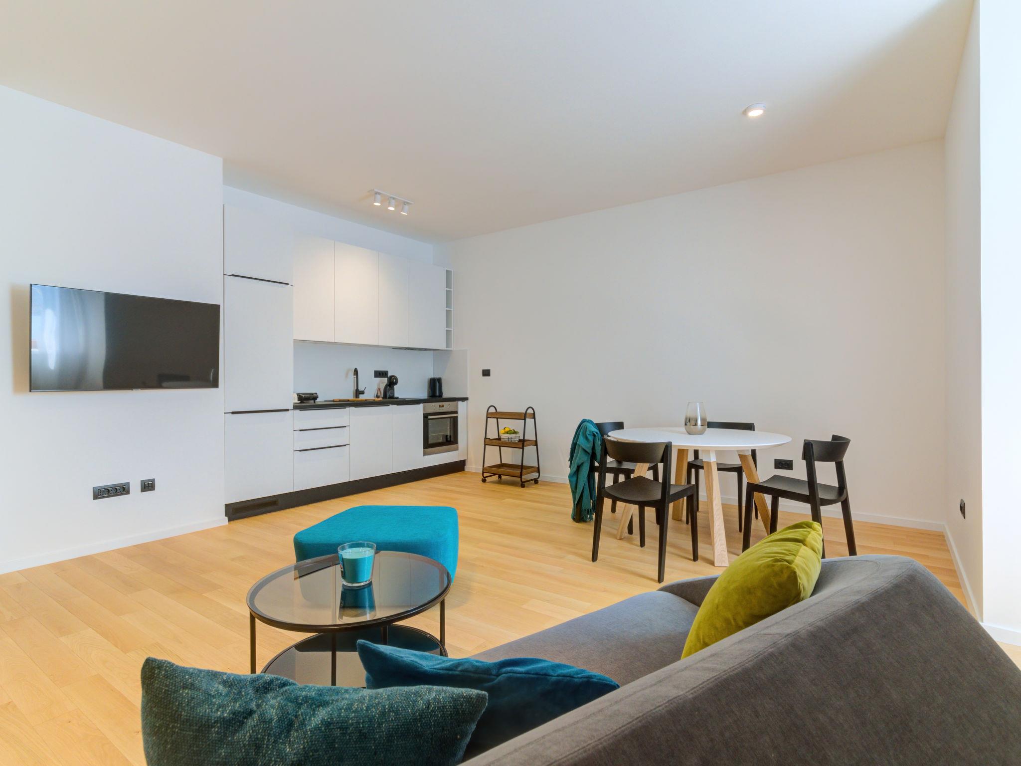 2-room apartment 55 m2, on the upper floor. Modern furnishings: living/dining room with 1 double sofabed (140 cm, length 200 cm), satellite TV (flat screen), air conditioning. 1 room with 1 french bed (160 cm, length 200 cm), air conditioning. Open kitchen (oven, dishwasher, 4 induction hot plates, toaster, kettle, freezer, electric coffee machine). Shower/WC. Floor heating, forced-air heating. Beautiful view of the sea and the bay. Facilities: safe, iron, hair dryer. Internet (WiFi, free). Please note: non-smoking house. Maximum 1 pet/ dog allowed. Fire extinguisher.