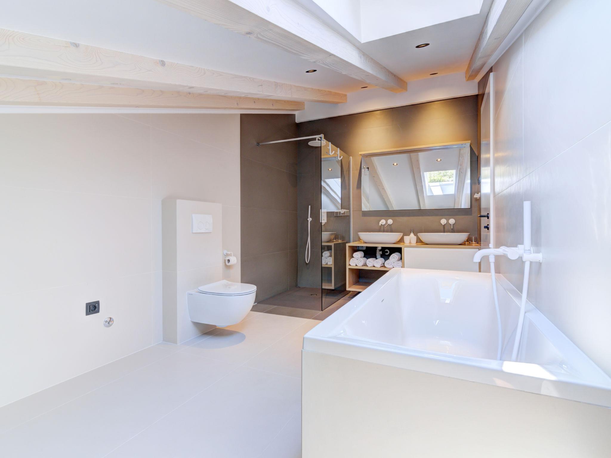 3-room apartment 100 m2, on the top floor. Modern furnishings: living/dining room with 1 double sofabed (160 cm, length 210 cm), satellite TV (flat screen), air conditioning. 1 room with 1 french bed (160 cm, length 200 cm), air conditioning. Open kitchen (oven, dishwasher, 4 induction hot plates, toaster, kettle, microwave, freezer, electric coffee machine). Shower/WC. Top floor: 1 room with sloping ceilings, ceiling height 120 - 230 cm with 2 beds (90 cm, length 200 cm), air conditioning. Bath/shower/WC. Floor heating, forced-air heating. Beautiful view of the sea and the bay. Facilities: safe, iron, hair dryer. Internet (WiFi, free). Please note: non-smoking house. Fire extinguisher.