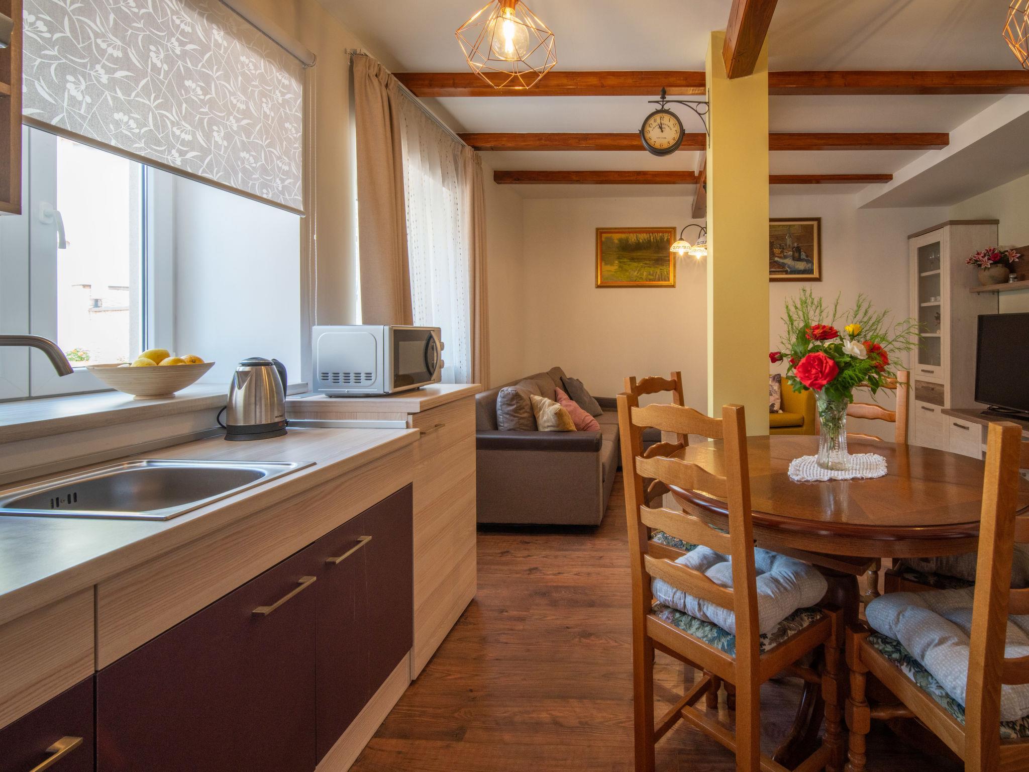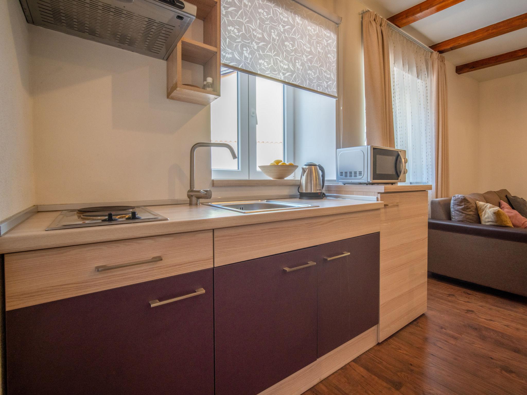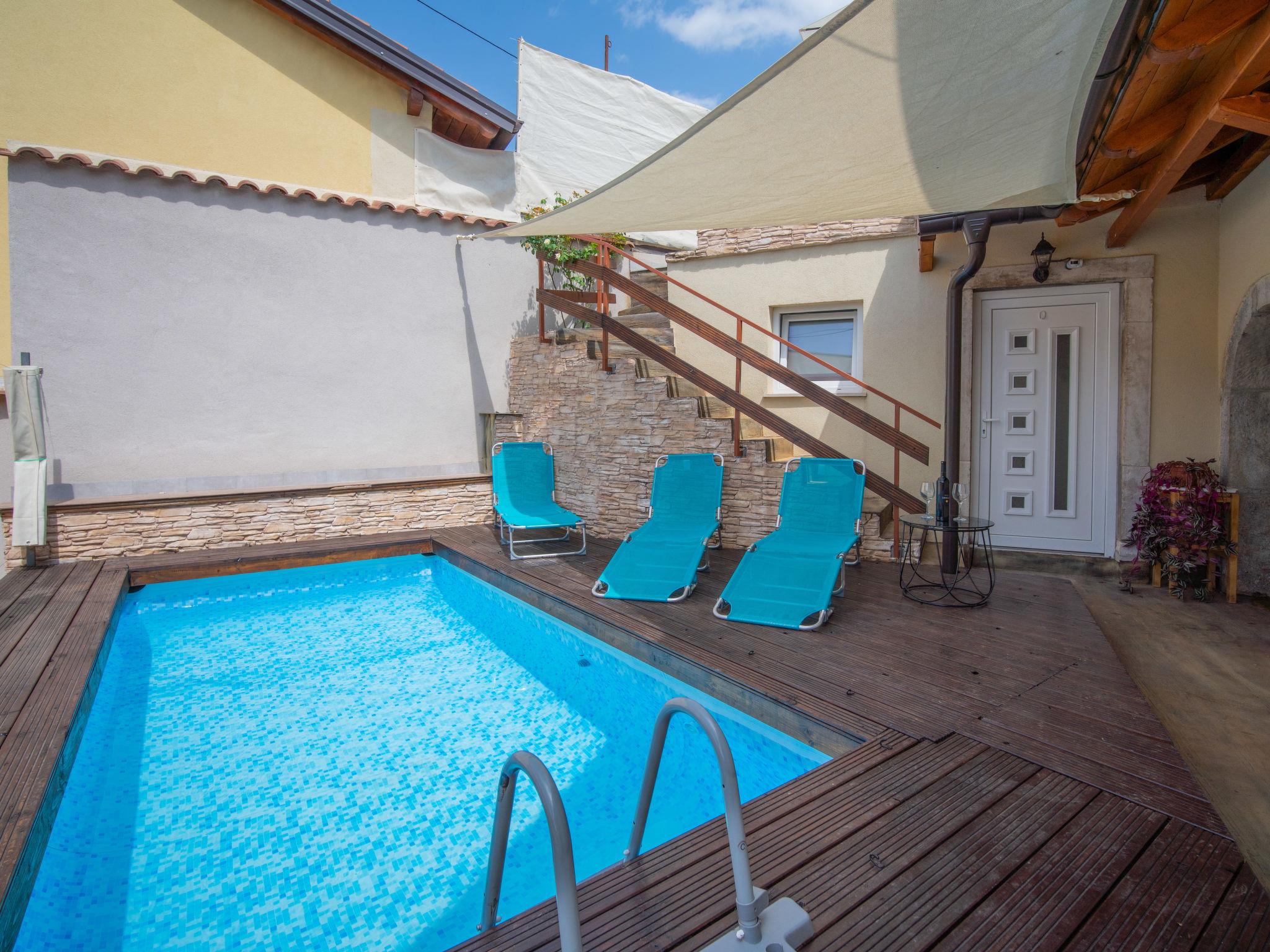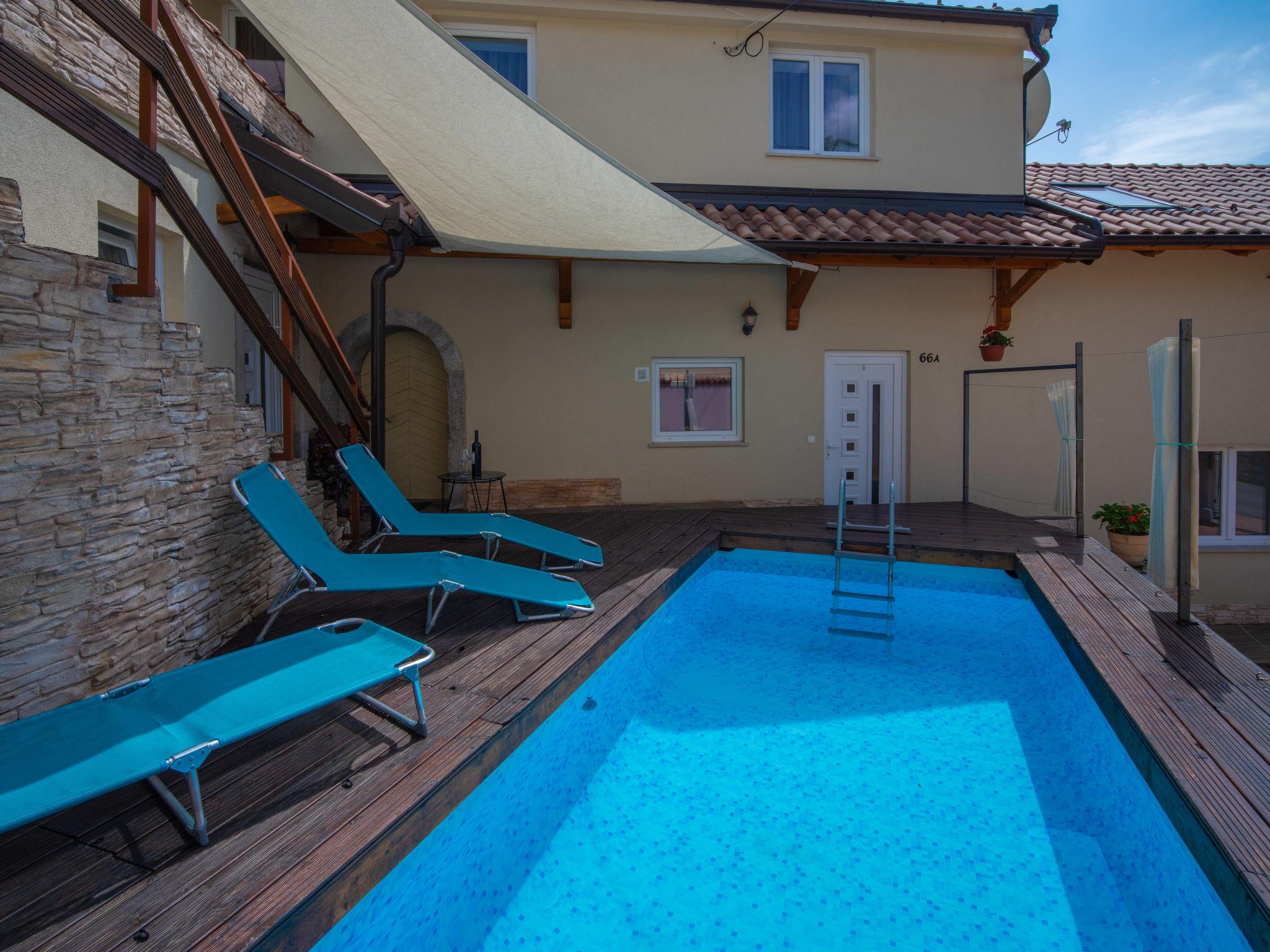 Veli Brgud 13 km from Opatija: Single-family house "Veli", 2 storeys. 10 km from the centre of Matulji, in a sunny position, 13 km from the sea. Private: property 480 m2 (fenced), swimming pool angular (4 x 2 m, 9 m2, depth 120 cm, seasonal availability: 01.May. - 30.Sep.). Garden furniture. In the house: internet access, washing machine. Parking (for 3 cars) at the house on the premises. Shop 350 m, supermarket 10 km, restaurant 4.4 km, bus stop 250 m, pebble beach 13 km, concrete beach 13 km. Groups of teenagers on request only. Part of the house is closed and unoccupied. The house consists of 2 apartments rented as one unit. Each apartment with external and separate entrance.