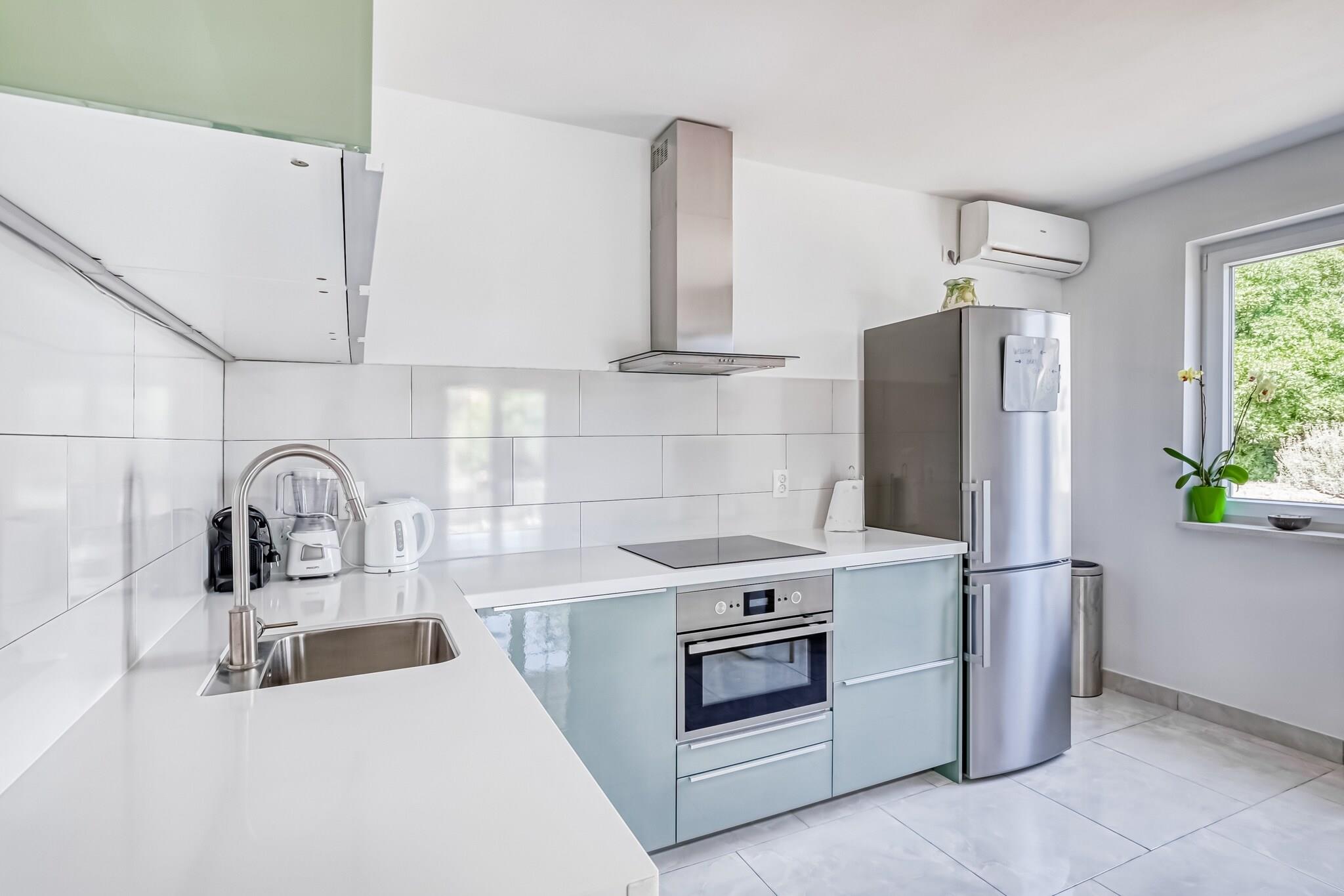 Villa Marta er et moderne møbleret sommerhus, fuldt udstyret. I stueetagen er stuen med åbent køkken, med døre, der giver direkte adgang til den solbadede terrasse. Nedenunder er også et toiletrum, hvor der også er en vaskemaskine og tørretumbler. På øverste etage er der to soveværelser: et soveværelse med adgang til balkonen og et soveværelse med en lidt mindre dobbeltseng og en lænestol, der kan foldes ud til en enkeltseng. Begge soveværelser har tilstrækkelig skabsplads. Badeværelset med en rummelig bruseniche og et andet toilet er også placeret på øverste etage. I den store have er der plads nok til at parkere din (leje) bil, slappe af under oliventræet i hængekøjen eller kigge efter små skildpadder, der undertiden kommer på besøg i haven. Villa Marta er ikke-ryger.