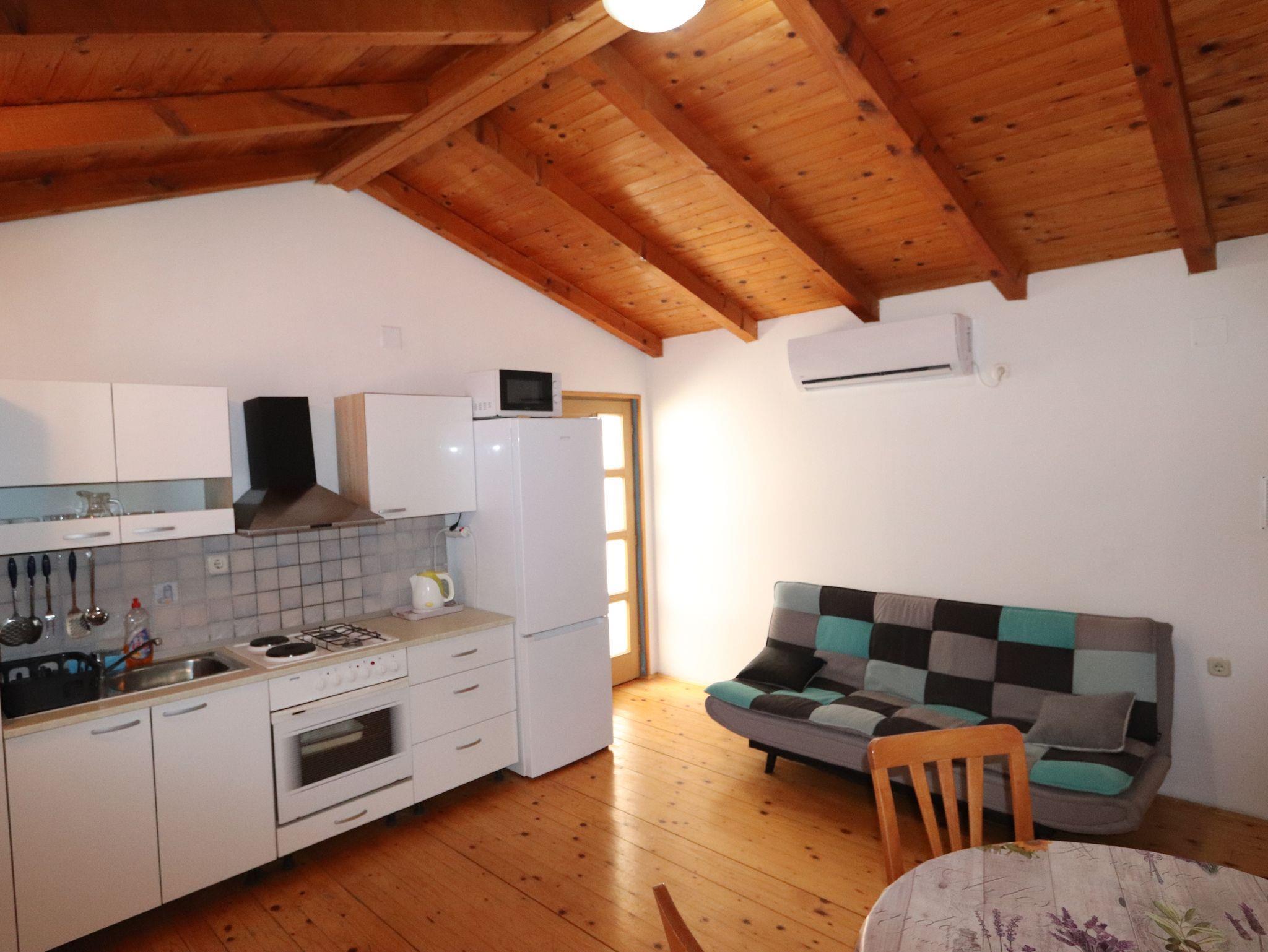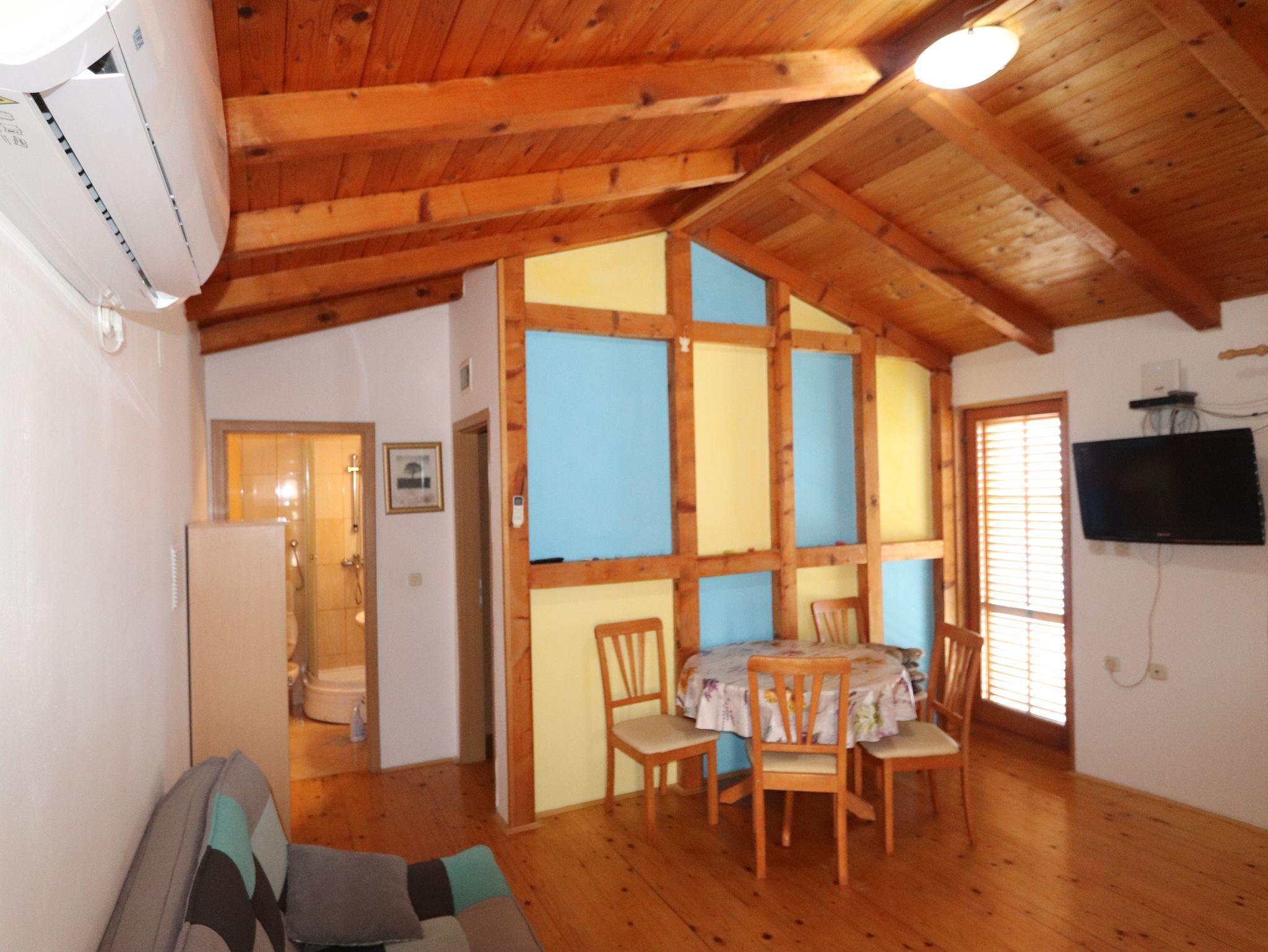 Ferienwohnung bietet Platz für 4 Gäste. Die Betten sind in Schlafzimmern, die es 1 gibt, und in Esszimmer, innerhalb einer Gesamtfläche von 29m2, angeordnet. Die Gäste haben eine eigene Terrasse zur Verfügung, auf der sie in warmen Sommernächten genießen können. Das Apartment bietet Meerblick. Es ist erlaubt, Speisen auf dem Gemeinschafts-Grill vorzubereiten. In der Unterkunftseinheit besteht die Möglichkeit des Mitbringens von Haustieren gegen Aufpreis. IM PREIS INBEGRIFFEN: Kurtaxe, Endreinigung, Klimatisierung, Parkplatz, Internet, Wäschewaschen, Bügeleisen, Föhn. VERBINDLICHE ZUSÄTZLICHE KOSTEN: Aufzahlung für Kurzaufenthalte (prozentualer Zuschlag pro Nächtigungsanzahl: 30% - 1, 20% - 2, 10% - 3). UNVERBINDLICHE ZUSÄTZLICHE KOSTEN: Haustiere (10,00 € pro Nacht). Die Verfügbarkeit zusätzlicher Dienstleistungen in Ihrem reservierten Termin und die Preise derselben (falls nicht aufgeführt) müssen im Voraus überprüft werden. Zusätzliche Dienstleistungen die in der Zahlungsaufforderung nicht aufgeführt sind werden direkt beim Vermieter bezahlt, angenommen der Gast nutzt auch diese. Ermäßigung auf den Grundpreis: Gratistag 14=13 (bei einem Aufenthalt von 14 Tagen oder mehr erhalten Sie einen Gratistag für den Aufenthalt bis 31.12.26).