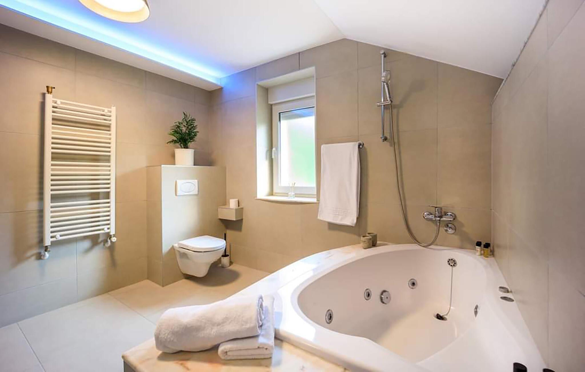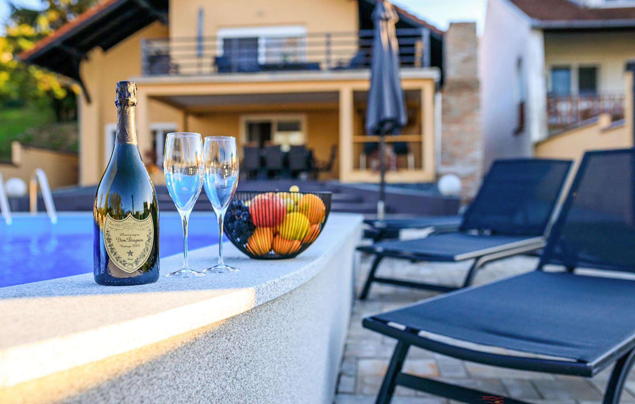 Nyd ferien i dette eksklusive feriehus lige ud til bredden af ??Donau, som er noget særligt med sin højkvalitets indretning og stilfulde design. Det elegante interiør er designet med udvalgte materialer og byder på en vidunderlig udsigt over flodlandskabet gennem store vinduesfronter. Slap af på badeværelset med spabad eller i wellness-oasen med infrarød sauna og spabad og afslut senere dagen på den overdækkede terrasse med udendørs pejs. Poolen med soldæk lægger op til forfriskende øjeblikke - et perfekt sted for hvile og afslapning i en privat atmosfære.