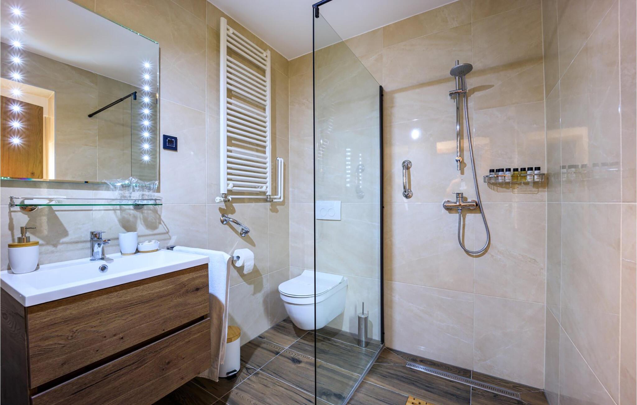 - WC. Varmt og koldt vand, Bruser