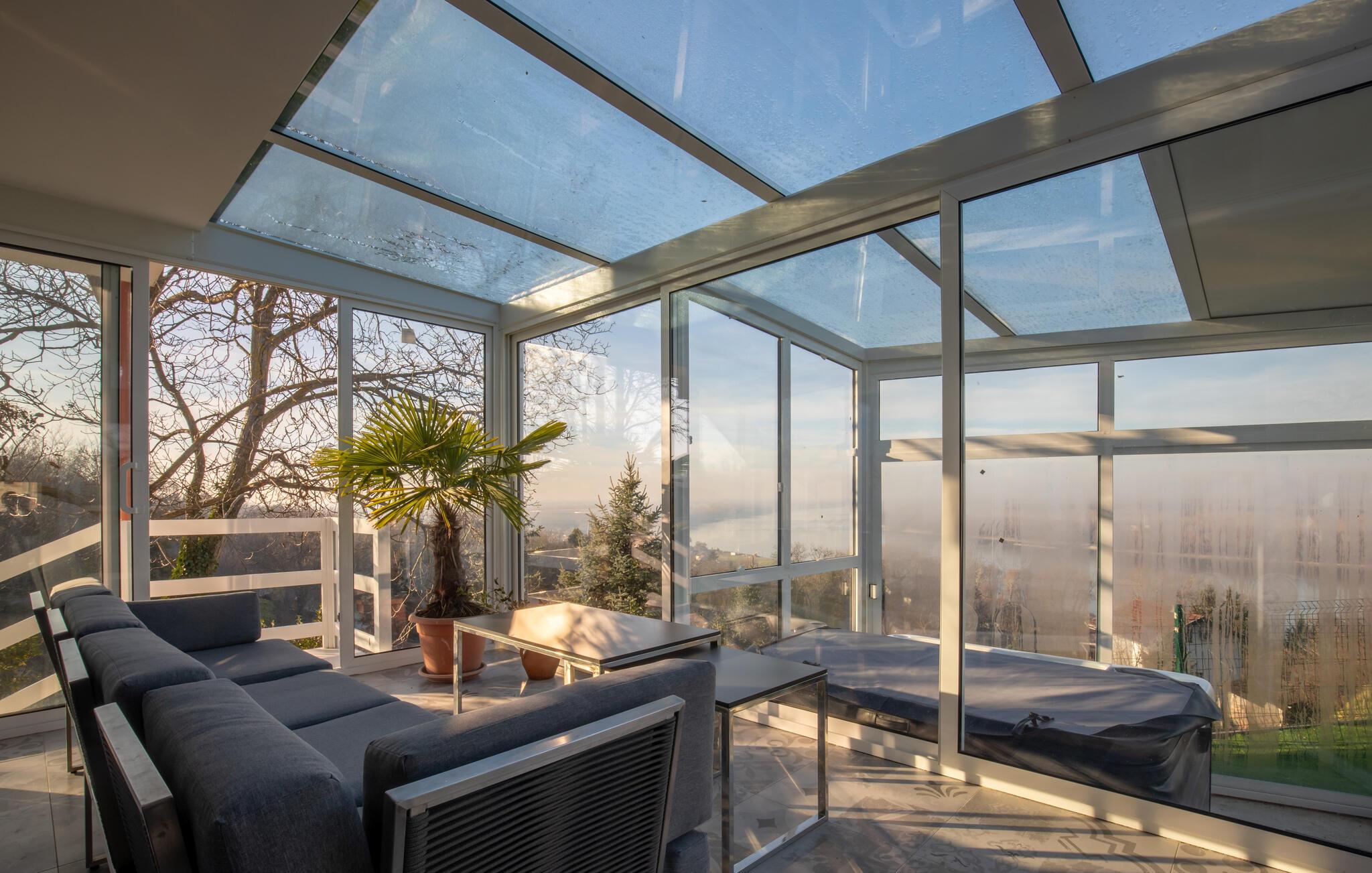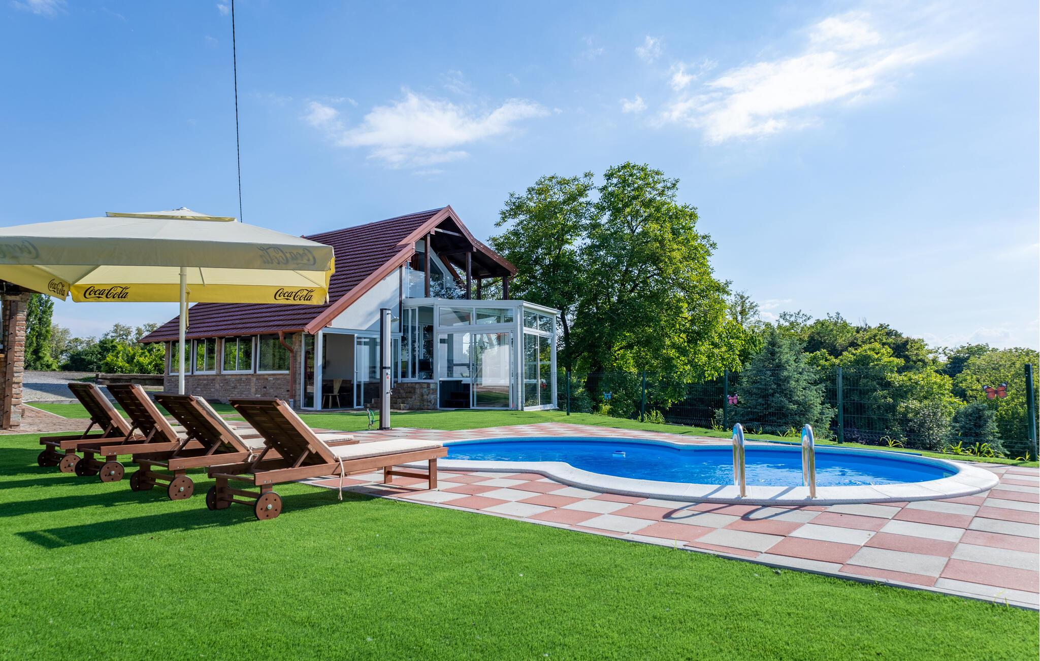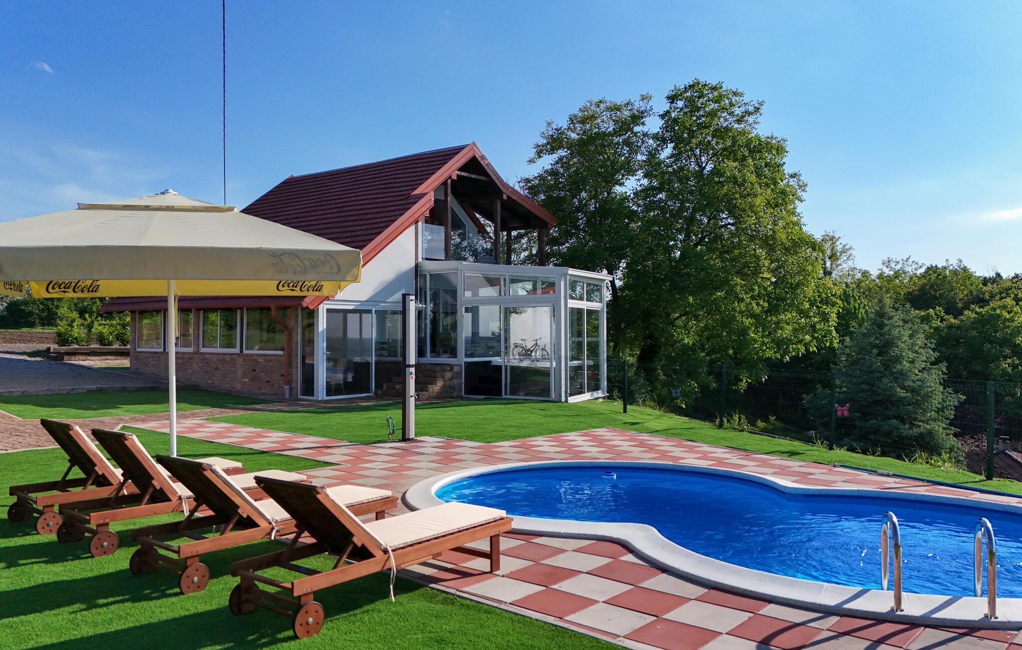 Tilbring en afslappende ferie i dette komfortable feriehus med pool, sauna og panoramaudsigt.