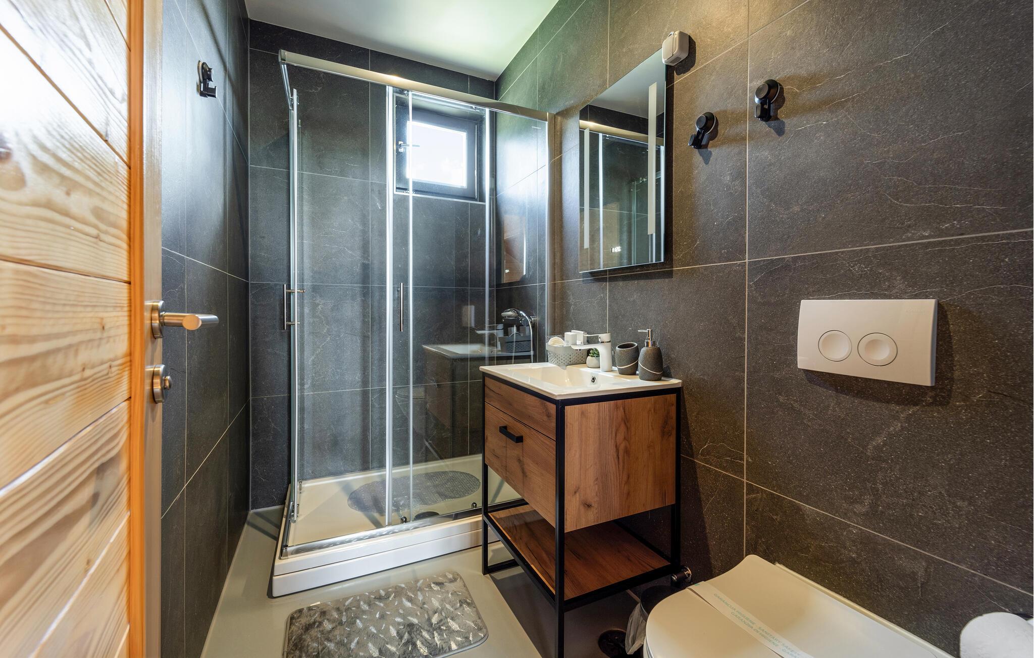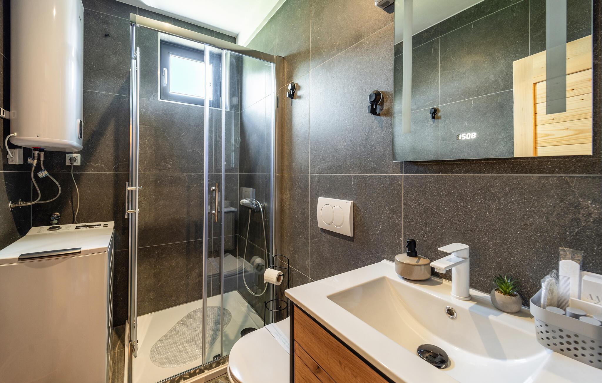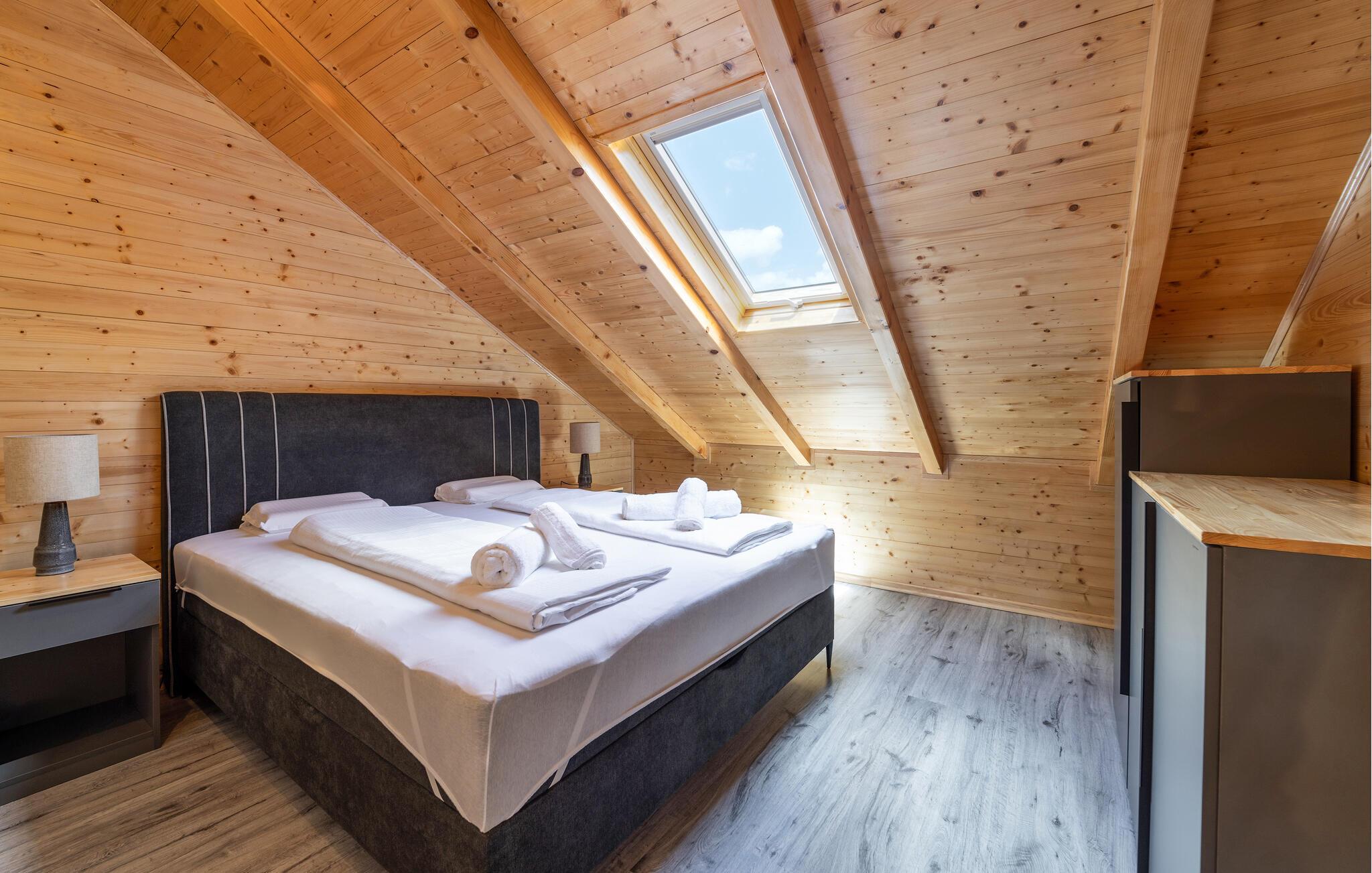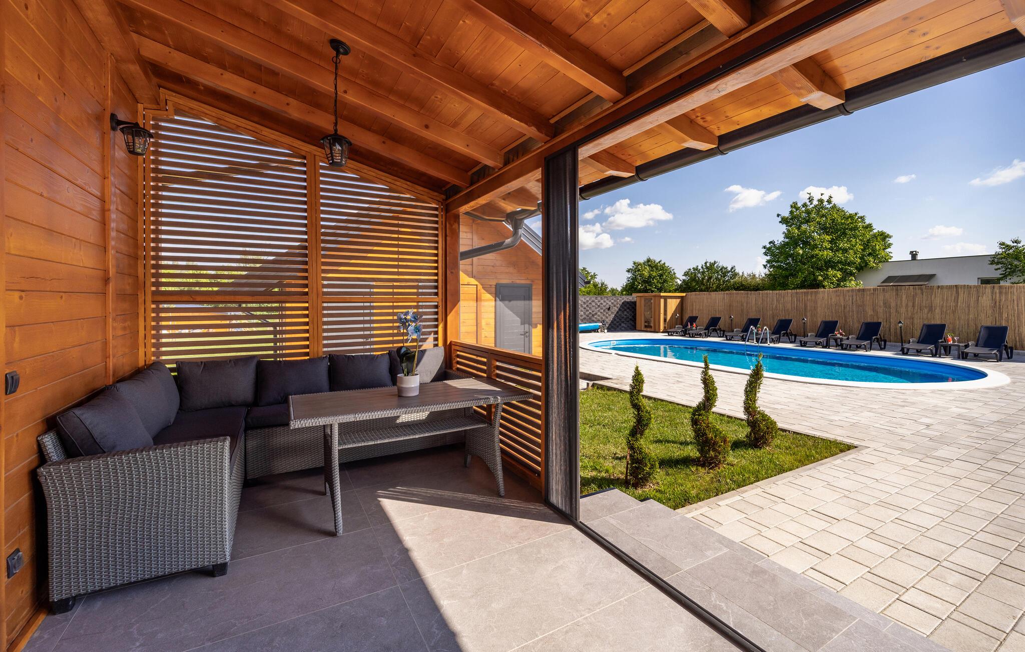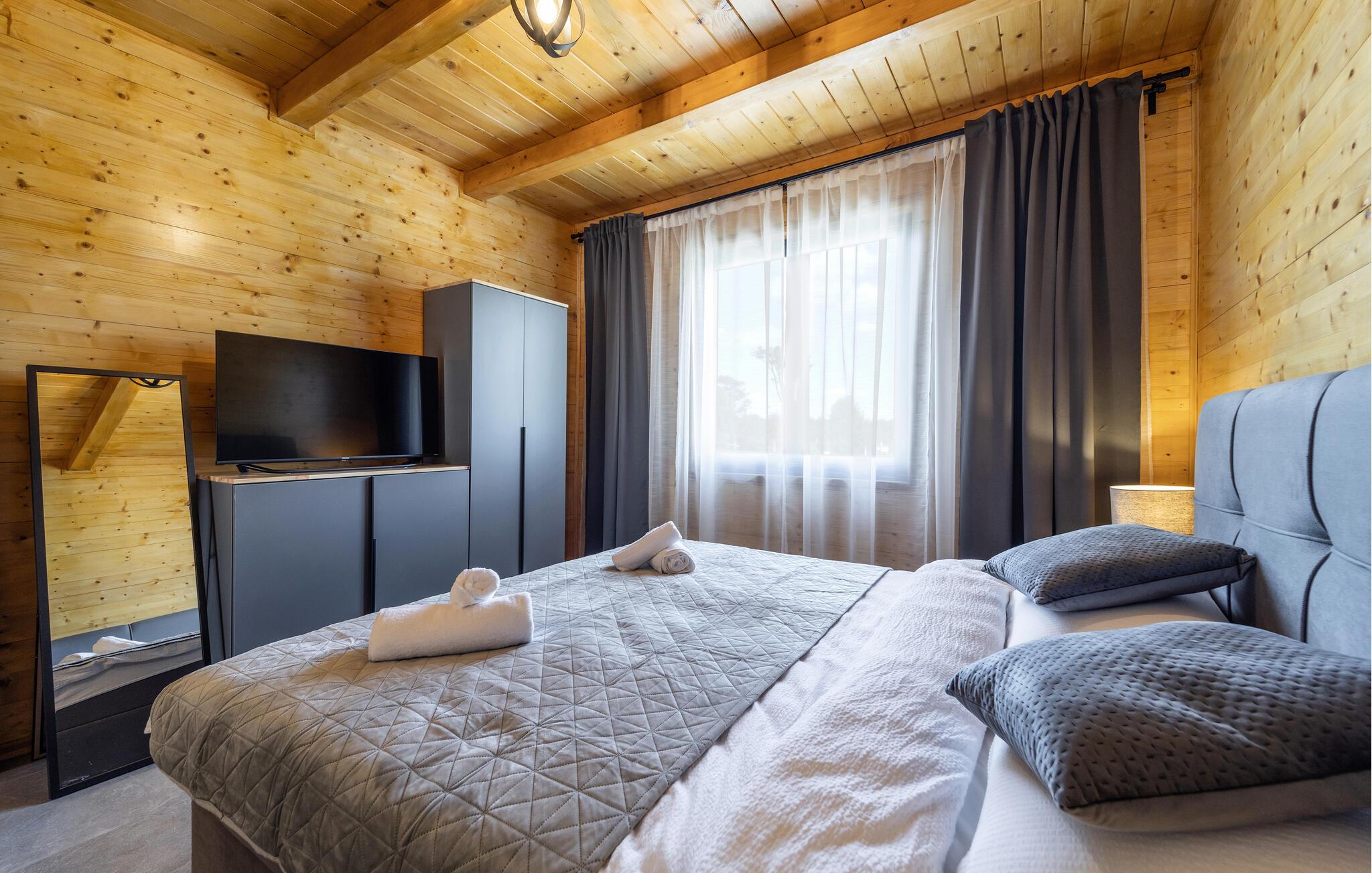 Tag en pause fra de pulserende byer ved Adriaterhavet og se frem til en skøn ferie i dette attraktive hus tæt på Osijek. Huset er dejligt indrettet over to etager med varme træpaneler, et komfortabelt møblement og moderne faciliteter, der gør jeres ophold helt og aldeles bekymringsfrit fra det øjeblik, I stiller kufferterne. Tilbered et lækkert måltid mad i det gode køkken, dæk op ved spisebordet af træ og leg spil kort eller brætspil på verandaen.