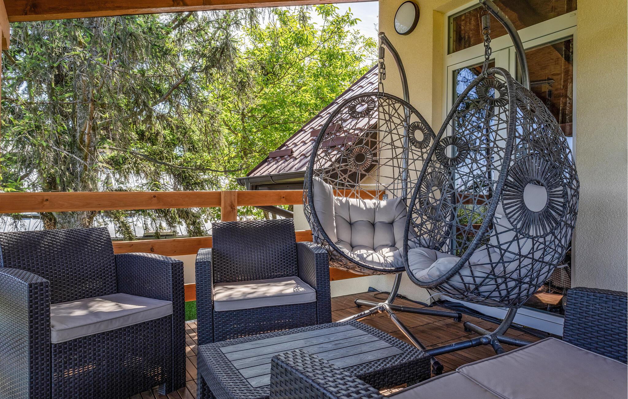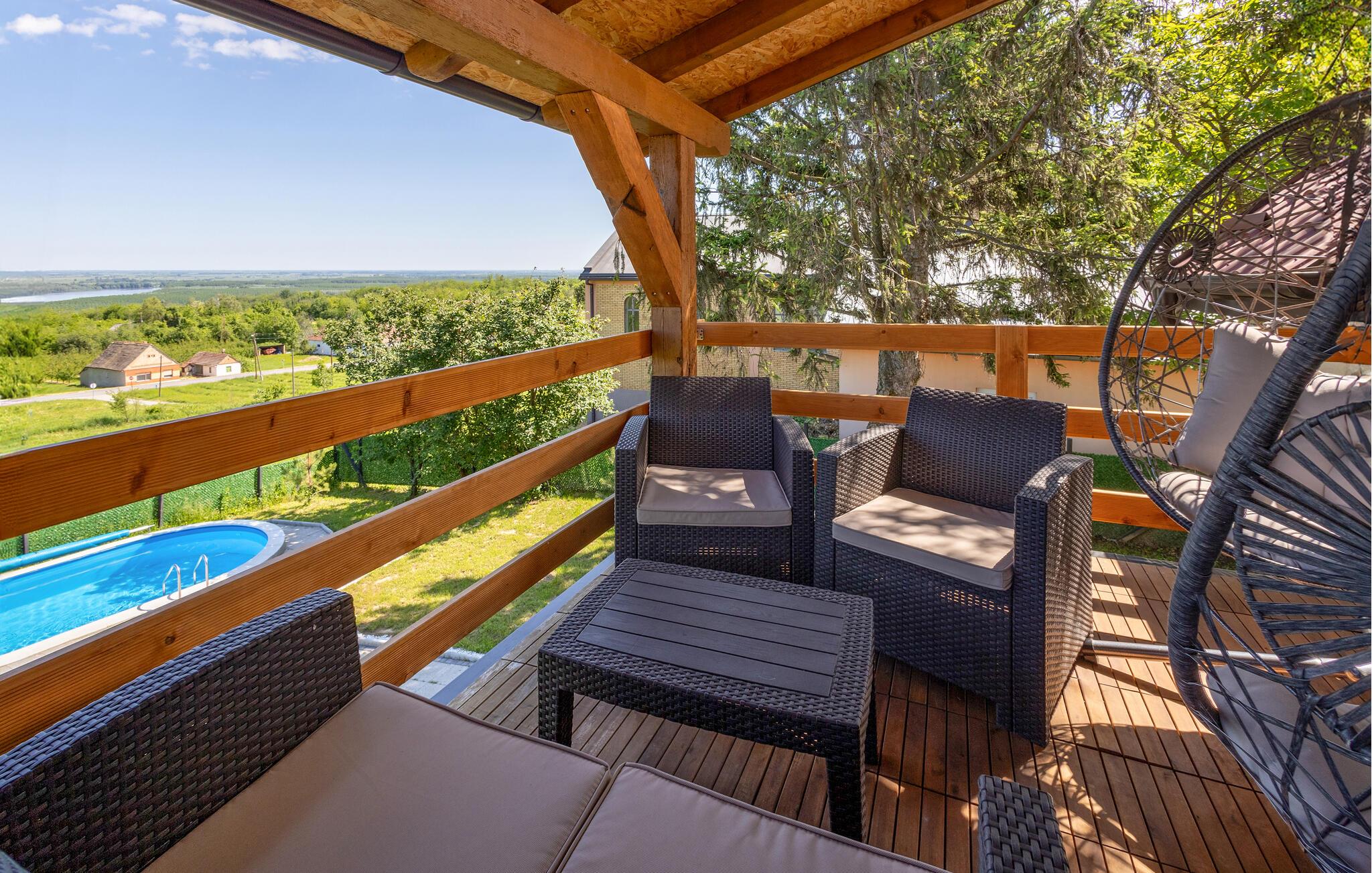 Dette to-etagers hus ligger tæt på grænsen til Serbien og er virkelig flot indrettet med masser af komfort. I kommer ikke til at mangle noget her, og der er lagt op til mange hyggelige fælles måltider ved det store spisebord. På den overdækkede terrasse på første sal venter jer en lille oase af velvære; glid ned i det varme vand i spabadet og find jer godt til rette i loungemøblerne, hvor I kan nyde den smukke udsigt over det serbiske naturreservat Gornje Podunavlje.