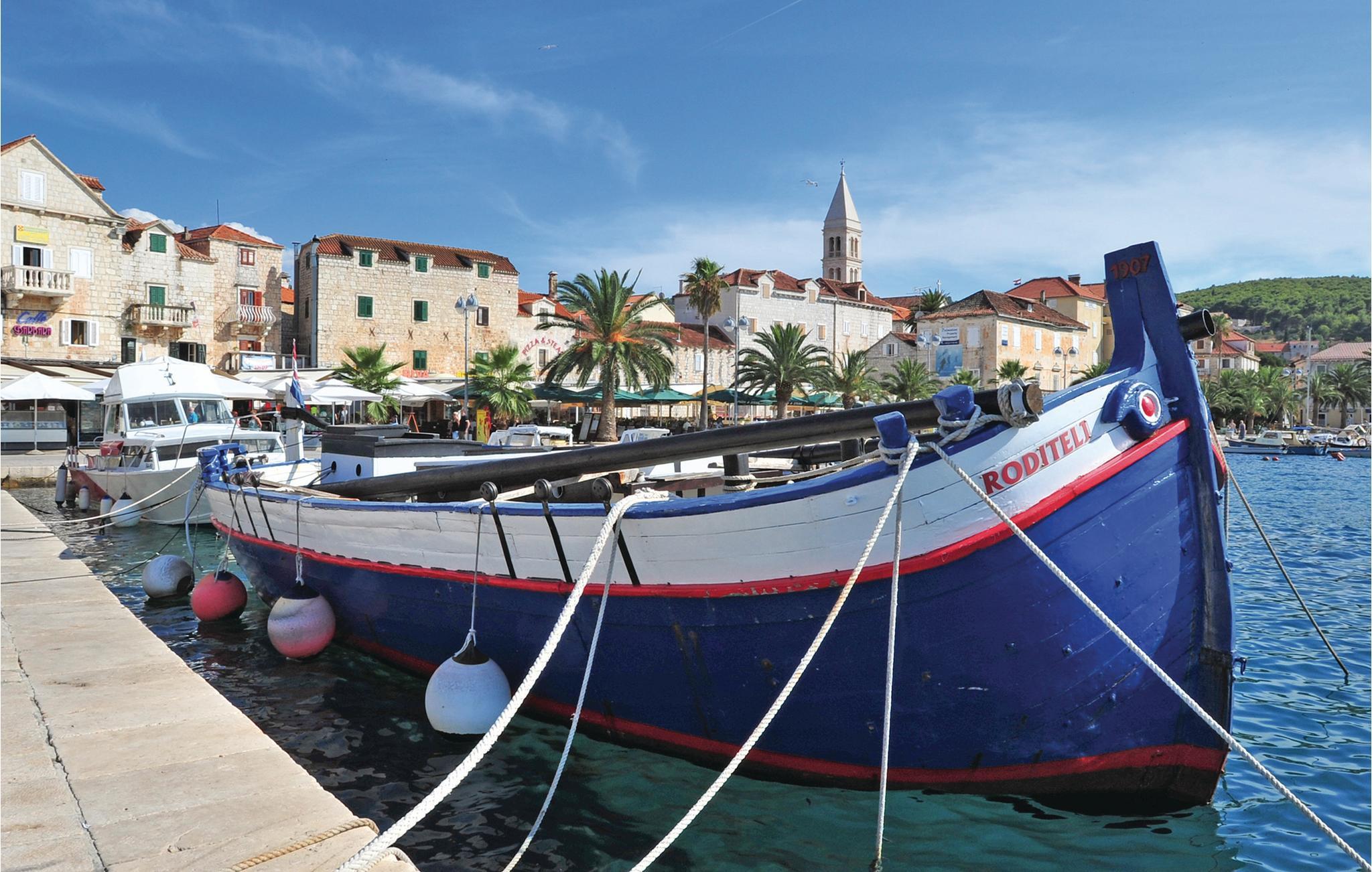 Grib jeres strandtaske og gå et par meter til klippekysten eller lidt længere til den indbydende stenstrand. Bare slap af og fordyb jer i det glitrende hav. I kan også opdage og nyde den fantastiske undervandsverden, mens I snorkler. Gå langs kysten, gennem fyrreskove og se mod fastlandet. Det er præcis her, I kan tage på en dagstur fra den maleriske havneby Supetar til den historiske by Split.