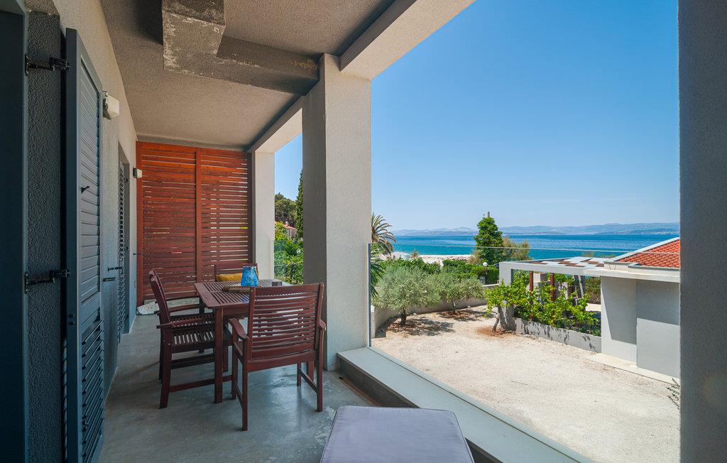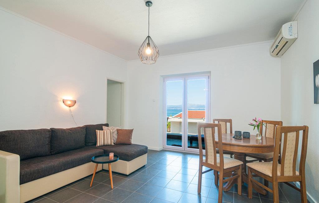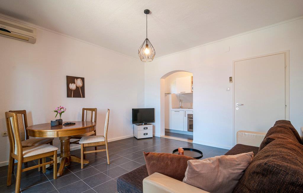 Denne lyse bolig tilbyder jer alt, hvad I har brug for til en sjov og afslappende ferie. Interiøret er indbydende og imponerer med udvalget af moderne og stilfulde dekorationer og møbler. På køligere dage kan I føle jer godt tilpas inde på sofaen og hygge jer med jeres medbragte spil eller en god bog, eller I kan bruge den åbne terrasse til at nyde feriens måltider i det fri. I har også adgang til et udekøkken, der deles med husets øvrige lejligheder.