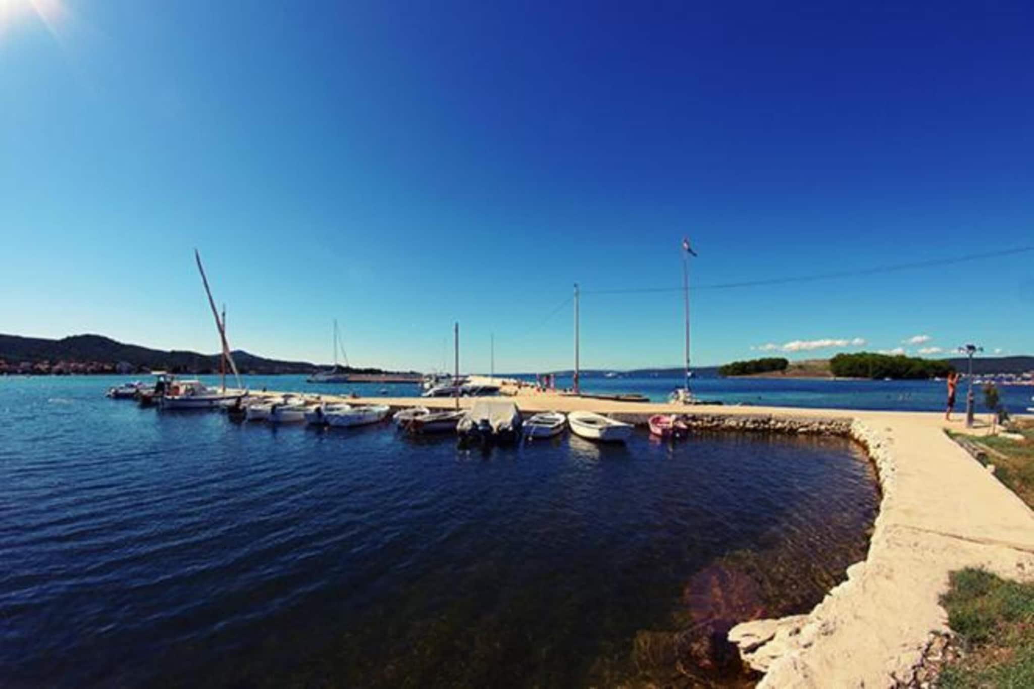 Denne charmerende lejlighed med et soveværelse i Pašman tilbyder et hyggeligt og fredeligt tilflugtssted for op til fire gæster. Lejligheden har et veludstyret åbent køkken med moderne apparater, herunder induktionskomfur, mikrobølgeovn, køleskab og brødrister, hvilket giver mulighed for nem madlavning. Opholdsstuen har et komfortabelt siddeområde og et tv til underholdning. En balkon, have og havemøbler skaber en behagelig atmosfære til afslapning udendørs, mens den private indhegnede grund sikrer fred og privatliv. Indkvarteringen er også udstyret med Wi-Fi, aircondition, vaskemaskine og myggenet for din komfort. Lejligheden er perfekt beliggende kun 240 meter fra de nærmeste sand- og klippestrande, hvilket giver nem adgang til den smukke Adriaterhavskyst. Byen Pašman har adskillige attraktioner med et udvalg af caféer, restauranter og butikker i nærheden. Den populære restaurant Konoba Mureta ligger kun 700 meter væk, og Studenac-markedet ligger 800 meter fra ejendommen. For dem, der er interesserede i naturen, er området ideelt, med attraktioner som Vrana-søen (23 km) og Krka Nationalpark (65 km), der er let tilgængelige i bil. Yderligere faciliteter inkluderer gratis parkering på stedet, hvilket gør det nemt for gæsterne at udforske det omkringliggende område. Lejligheden er familievenlig, og med sin tætte beliggenhed til stranden og forskellige lokale faciliteter er den den ideelle base for dem, der søger både afslapning og eventyr i Kroatien.