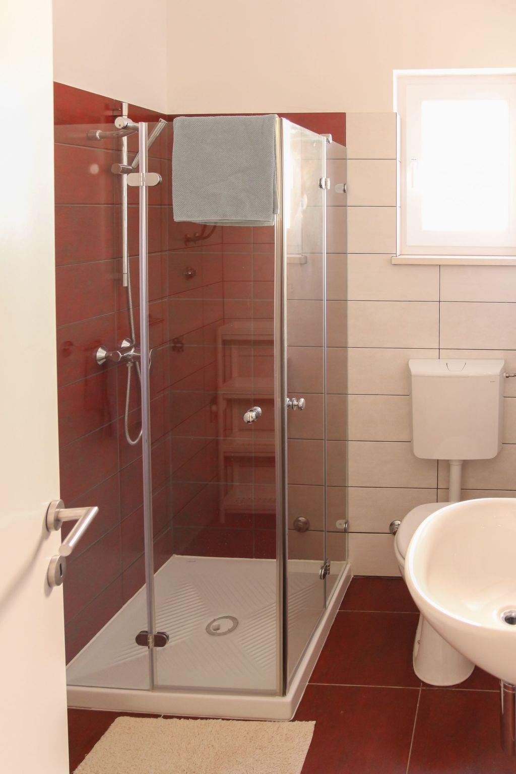 The apartment is 60m3 located on the ground floor, it has air-conditioning and internet access. It consists of 2 bedrooms with double beds comfortably accommodating 4 people, a bathroom with shower and toilet. Living room and kitchen in one leading onto the balcony with a beautifull sea view. The kitchen is equipped with a 4 ring hobs, fridge with freezer compartment and electric kettle.