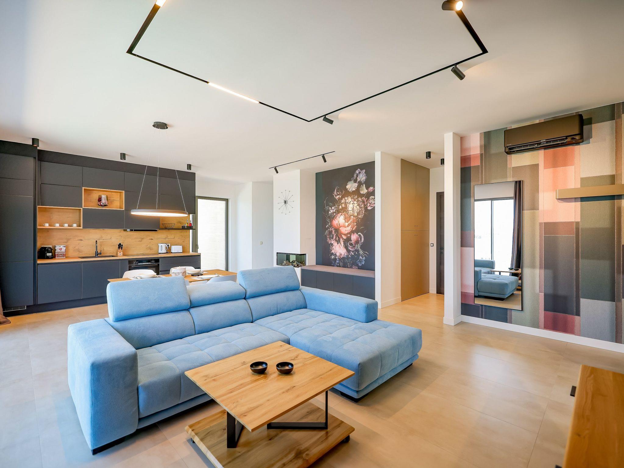 Inside the house you will find first-class furnishings that leave nothing to be desired. Two cosy bedrooms and two bathrooms with walk-in showers ensure comfort and privacy. The interior is perfectly equipped with amenities such as air conditioning in all rooms, underfloor heating for chilly evenings, a washing machine for exclusive use and a modern kitchen with ceramic hob, capsule coffee machine, dishwasher and kettle. Entertainment is provided by a Smart TV and a fireplace, which creates a cosy atmosphere.