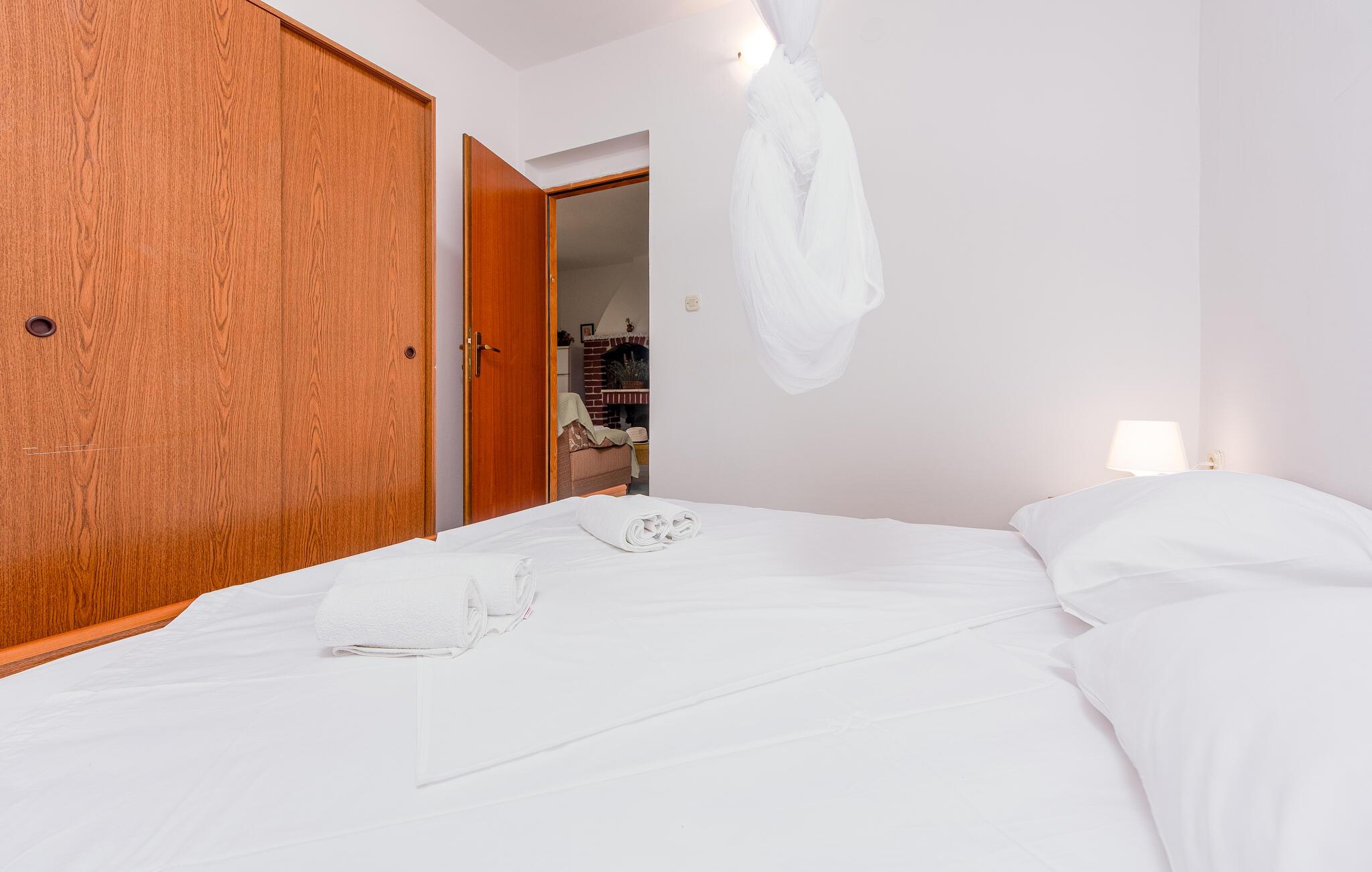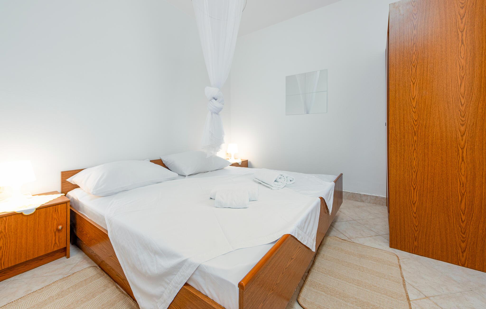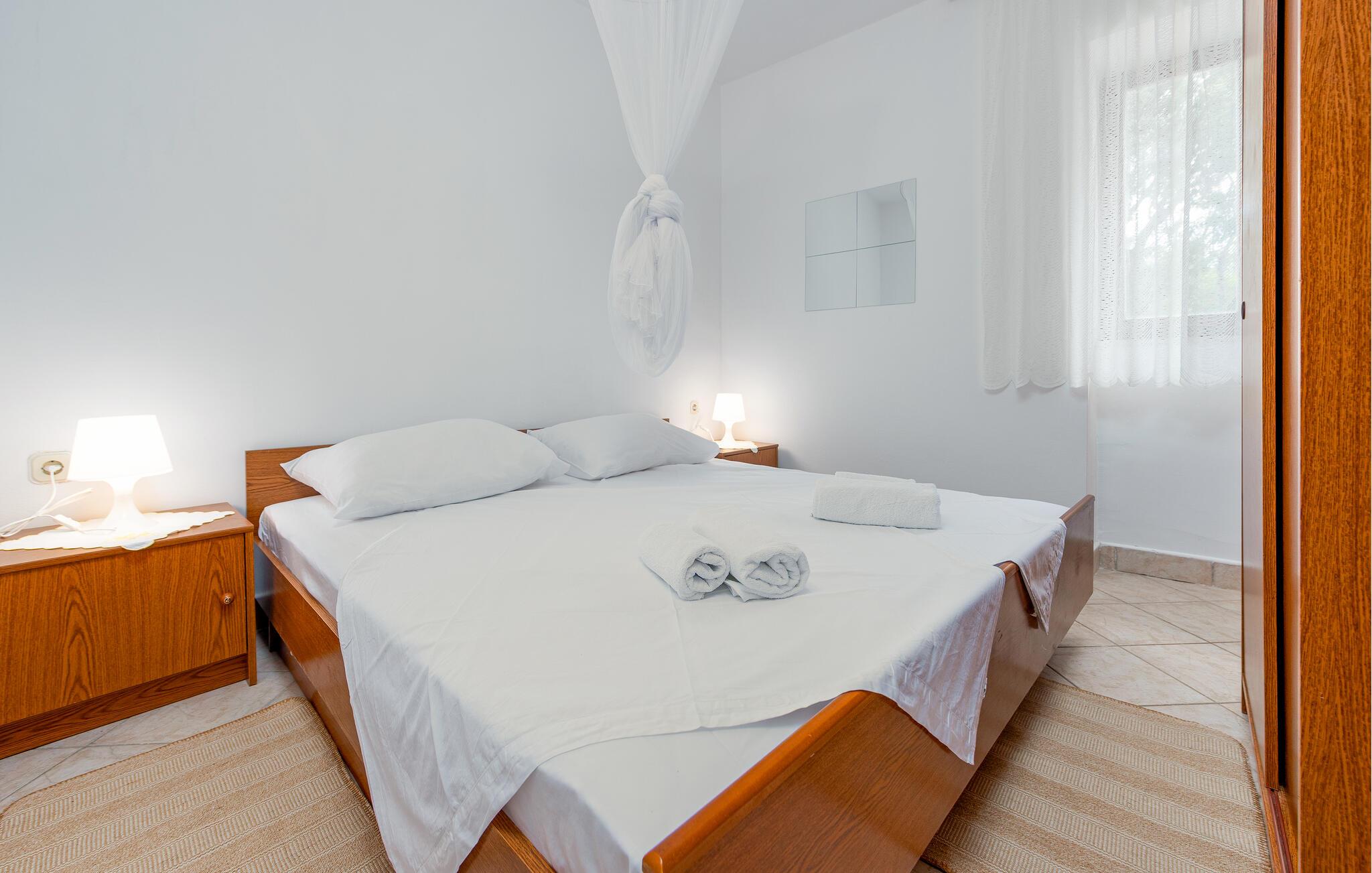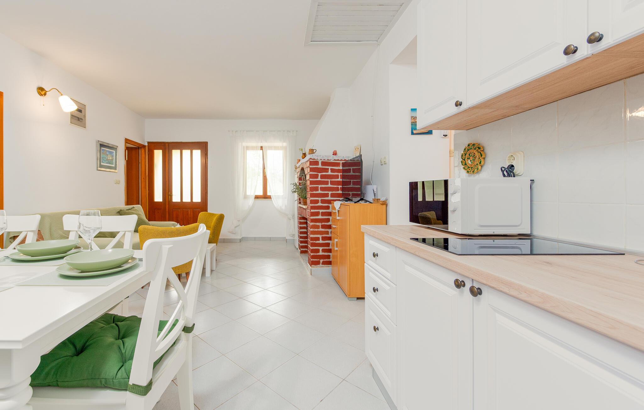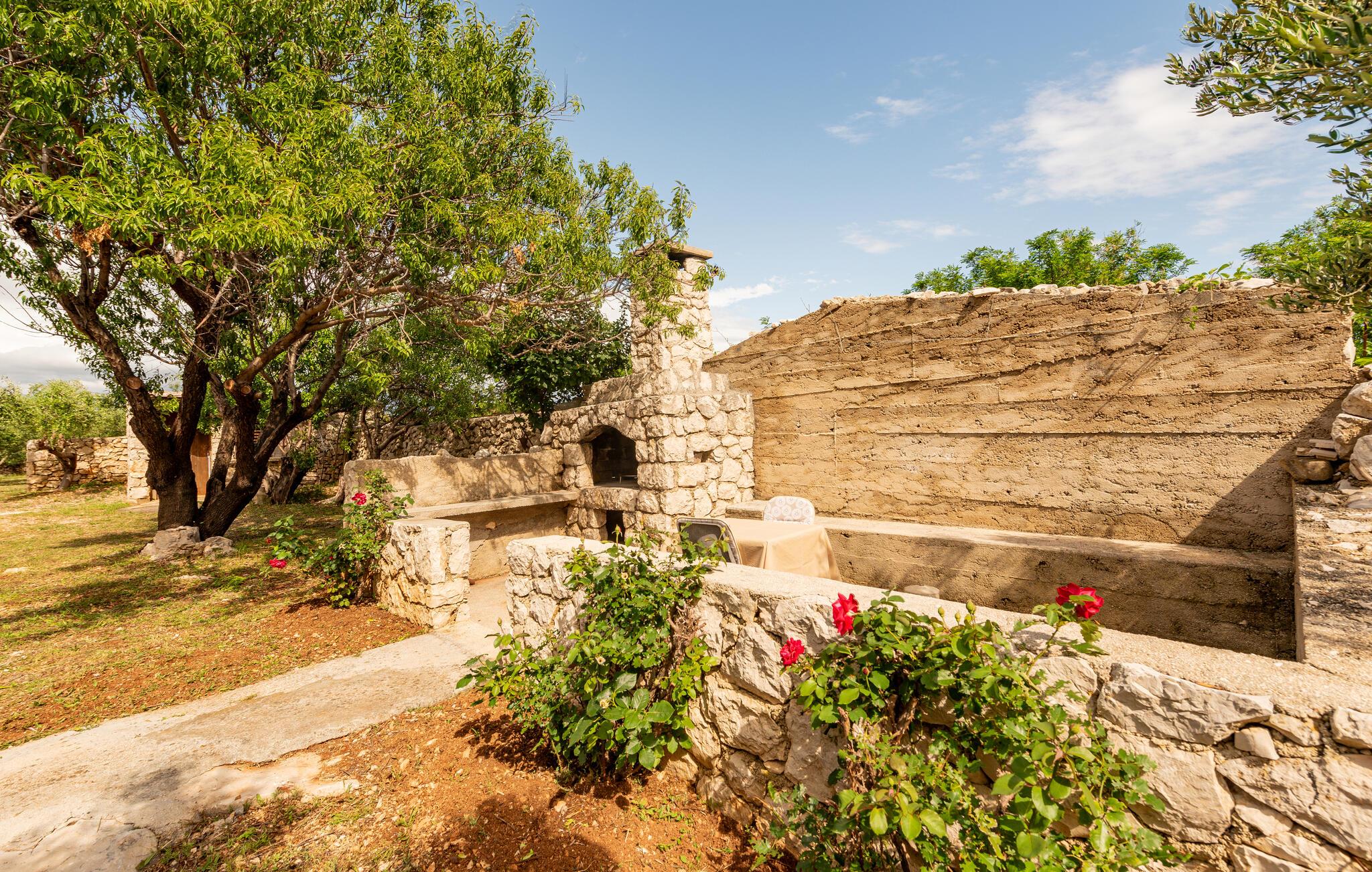 Velkommen til dette fritliggende feriehus på øen Pag, hvor rustik charme møder moderne komfort. De hyggelige rum skaber en indbydende atmosfære, der gør det nemt for jer at nyde ferien med madlavning, fælles middag og leg. Arranger en filmaften, eller nyd de lune aftentimer udenfor.