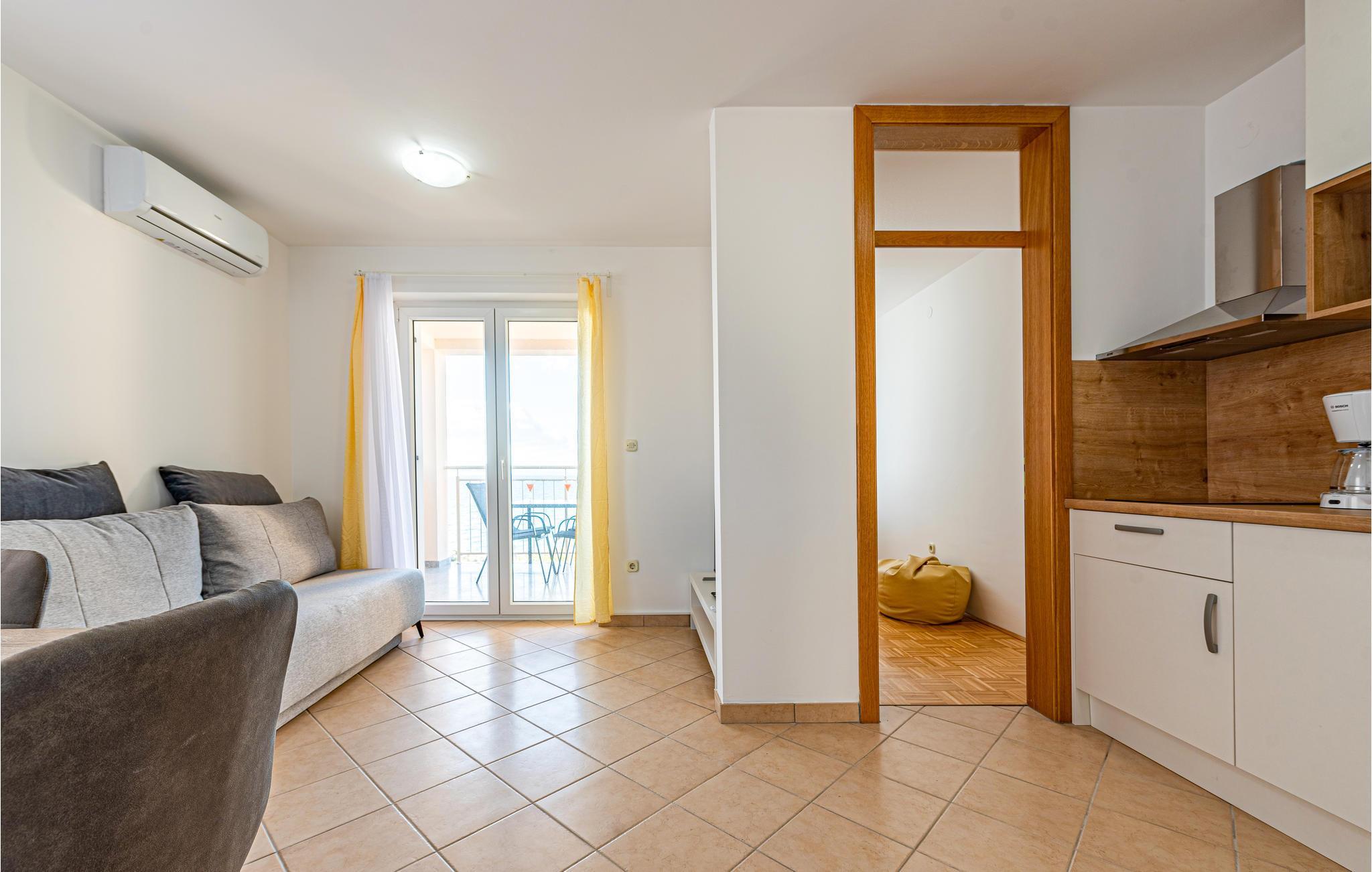 Denne skønne ferielejlighed er placeret i en moderne etageejendom. Her rykker I ind i en bolig, som emmer af stilfuld minimalisme og giver jer optimale rammer til at slappe af efter jeres ture rundt på øen Pag. I kan tilbringe aftenerne på den skyggefulde balkon og se de smukke solnedgange over havet. Her er der alt det, I skal bruge for at slappe af og have det rart, og I har desuden adgang til et fælles, lukket lokale, som I deler med husets øvrige gæster til socialt samvær og grillaftener.