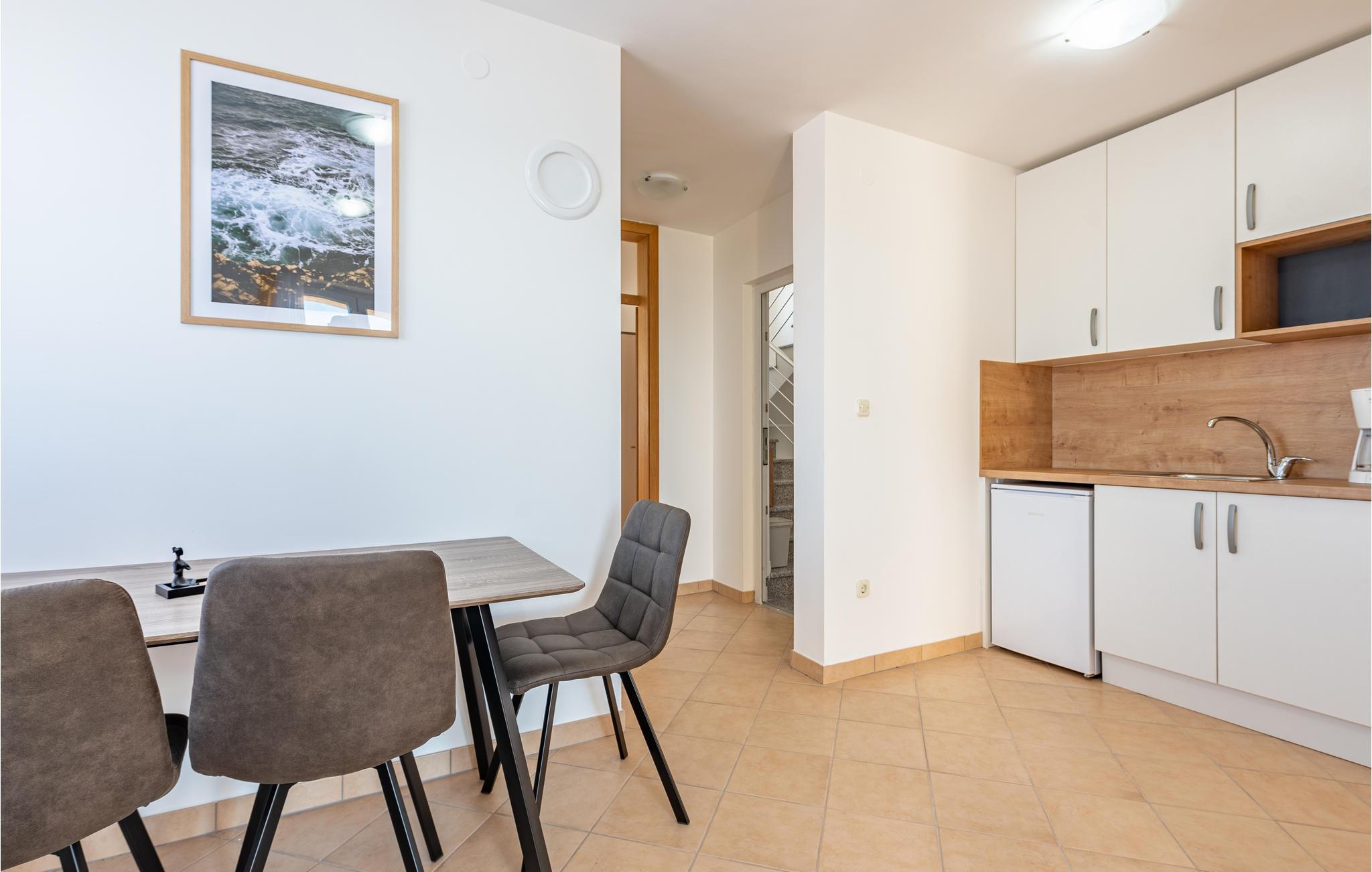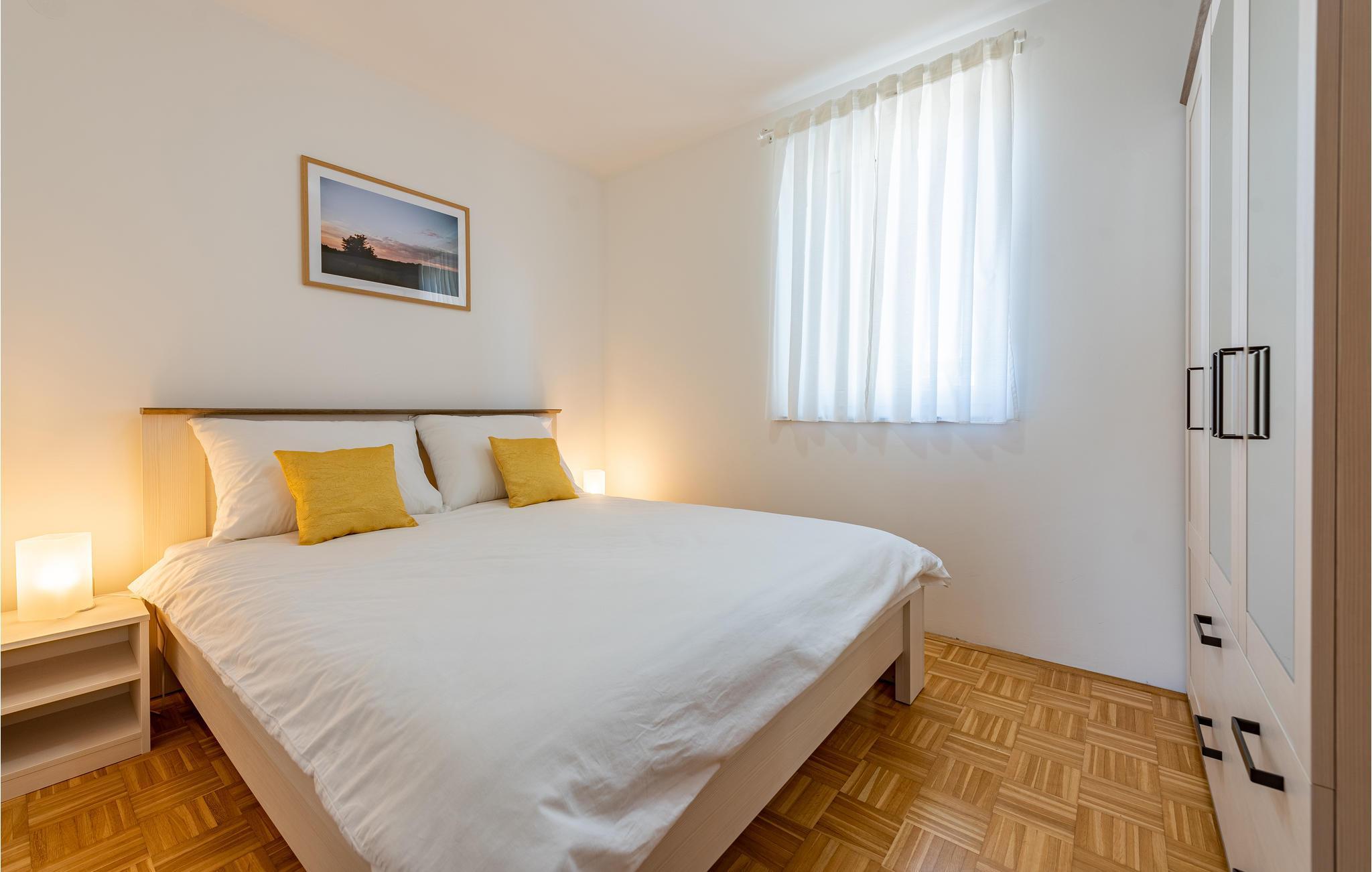 Denne skønne ferielejlighed er placeret i en moderne etageejendom. Her rykker I ind i en bolig, som emmer af stilfuld minimalisme og giver jer optimale rammer til at slappe af efter jeres ture rundt på øen Pag. I kan tilbringe aftenerne på den skyggefulde balkon og se de smukke solnedgange over havet. Her er der alt det, I skal bruge for at slappe af og have det rart, og I har desuden adgang til et fælles, lukket lokale, som I deler med husets øvrige gæster til socialt samvær og grillaftener.