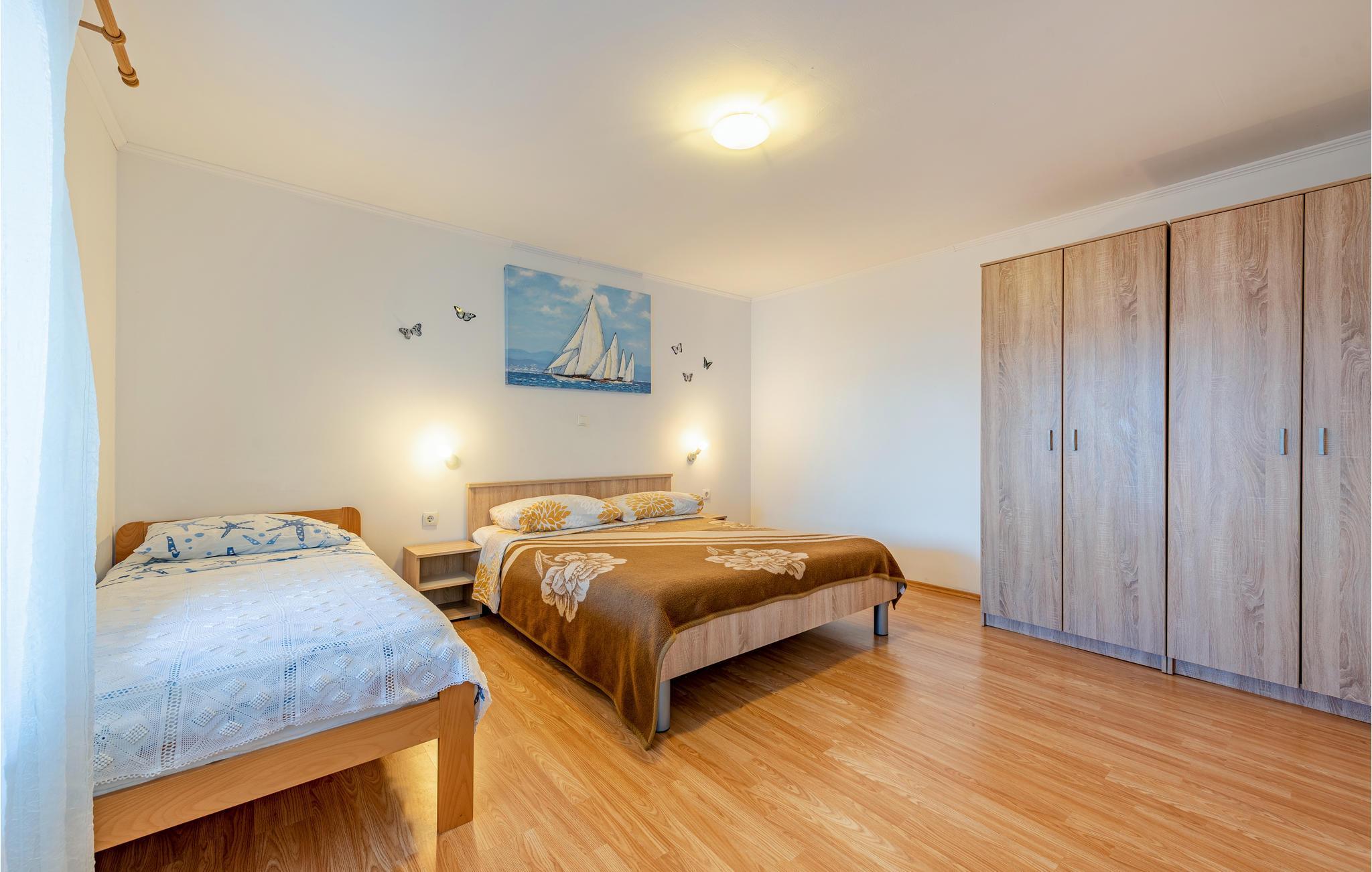 Dette smukke feriehus på øen Pag byder velkommen på en stor grund, i anden række fra vandet. Glæd dig til din ferie i Kustici og denne skønne lejlighed i et hus med flere ferielejligheder. Hvis du vil rejse med venner eller din udvidede familie, kan du bestille yderligere lejligheder. Lejlighederne i stueetagen og på første sal er veludstyrede og tilbyder dig alle de fornødenheder, du har brug for til din hvile. Føl dig hjemme i de lyse lokaler og indtag dine måltider på den overdækkede terrasse. Med havet i udsigt kan du gå til den nærliggende sten- og plateaustrand og hoppe i det azurblå vand og forfriske dig selv. Stedet Kustici, nordøst på øen Pag, er ideelt til en afslappende familieferie. Udforsk området, lej en båd og glæd dig til øens charmerende og varierede natur!