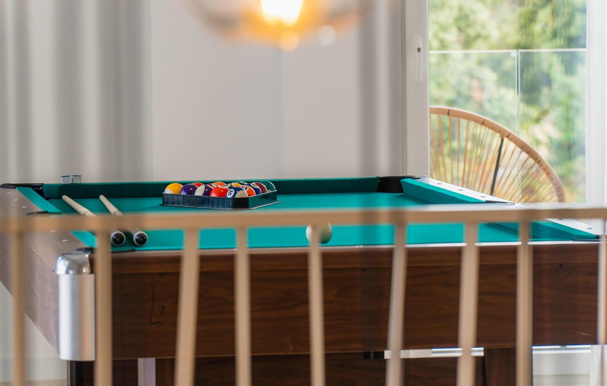 Velkommen til dette komfortable og moderne hus, der byder jer velkommen med en fantastisk beliggenhed og alt, hvad I behøver for en afslappende ferie med hele familien. Glæd jer til hyggelige aftener efter dagens aktiviteter. I kan også træne og holde formen vedlige eller afholde en sjov billardturnering. Nyd fælles måltider med udsigt til det fri, og afslut dagen med en god film i stuen.
