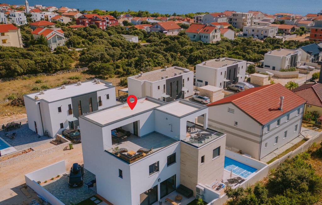 Nyd en drømmeferie i dette feriehus med panoramaudsigt og pool på en malerisk ø. Dette rummelige hus kombinerer modernitet, komfort og hygge og tilbyder et ideelt tilflugtssted for jeres ferie. Gulv-til-loft-vinduer, et komfortabelt sofaområde og diskrete farver skaber en behagelig atmosfære til at læse, se tv eller nyde samtaler med familien. Tilbered lækre måltider i det moderne køkken og forkæl jer selv med et fint glas vin. Forfrisk jer selv om morgenen med en svømmetur i poolen eller et spil vandpolo. Bagefter kan I slappe af på liggestolene eller i skyggen med en kølig drink. Nyd den fantastiske udsigt over havet og de fjerne kystlinjer – en særlig oplevelse på alle tider af dagen. Nyd afslappende dage på den lange strand med fine sten i Mandre og svøm i Adriaterhavets krystalklare vand. Oplev det varierede landskab på øen Pags med en slentretur langs skjulte bugter eller en kort vandretur med havudsigt. Forkæl jer selv med det lokale køkken – Pag er kendt for sin friskfangede fisk, møre lammeretter og aromatiske Pagost. Besøg ostefabrikken Gligora, lær mere om traditionel ostefremstilling, og prøv de berømte specialiteter på stedet.