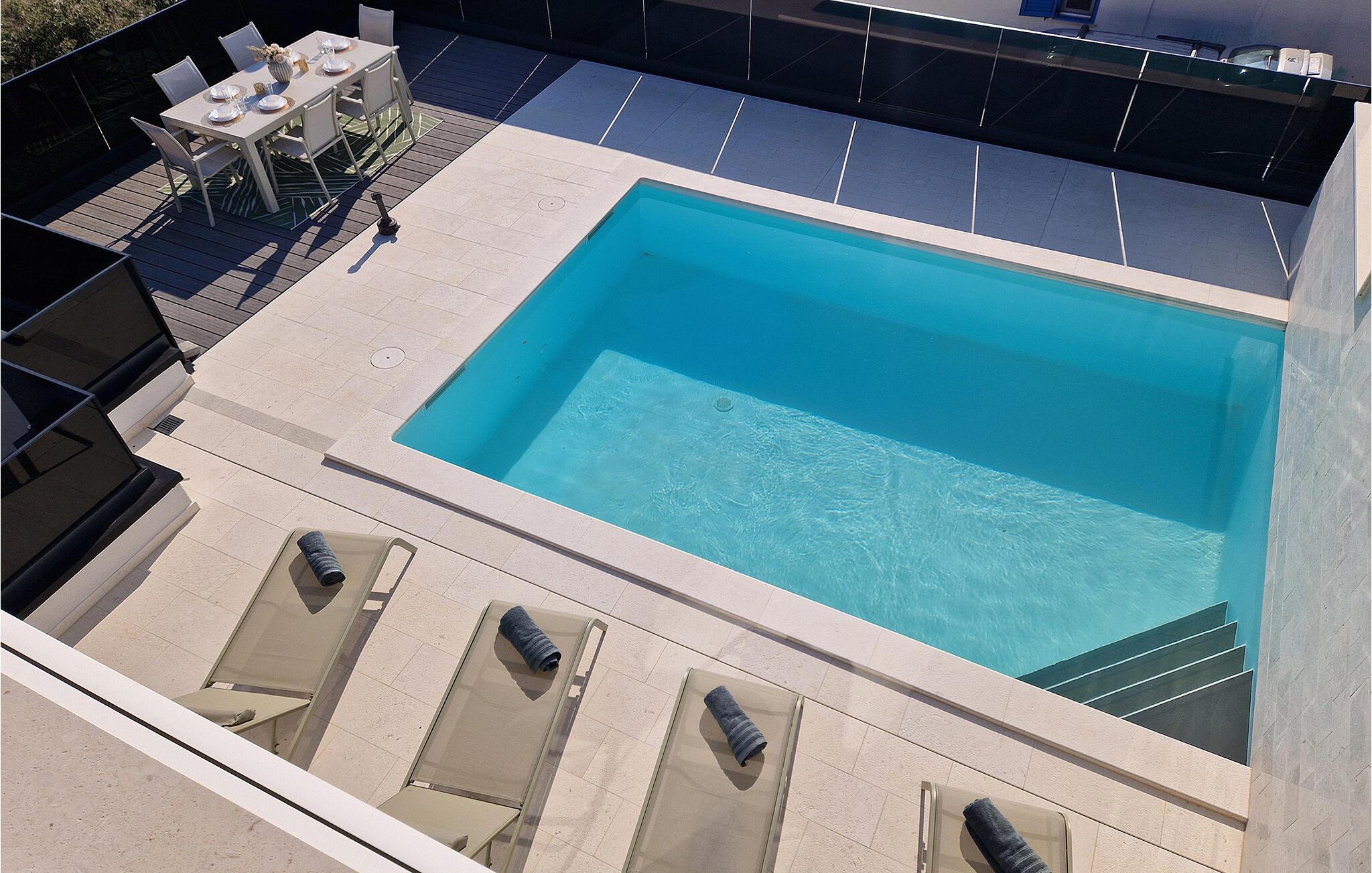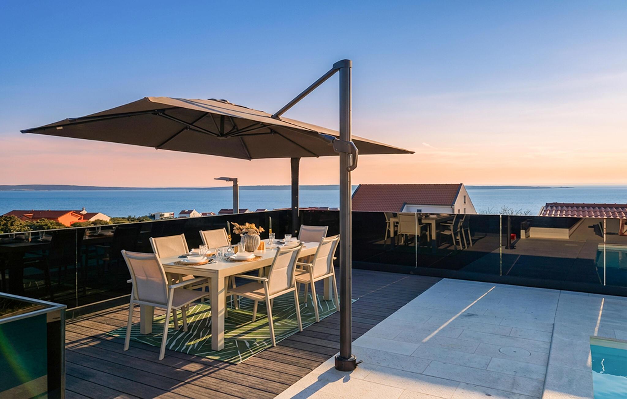 Nyd en stilfuld ferie med havudsigt og en privat pool i moderne omgivelser.