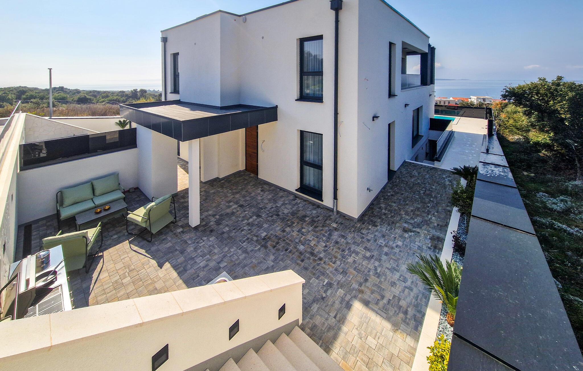 Tilbring solrige timer på den store poolterrasses moderne loungeområde. Svøm i den private pool og slap derefter af på en af ??de komfortable liggestole med udsigt over havet. Brug udekøkkenet med grill til hyggelige aftener, og server middag ved det store terrassebord, mens solen går ned.