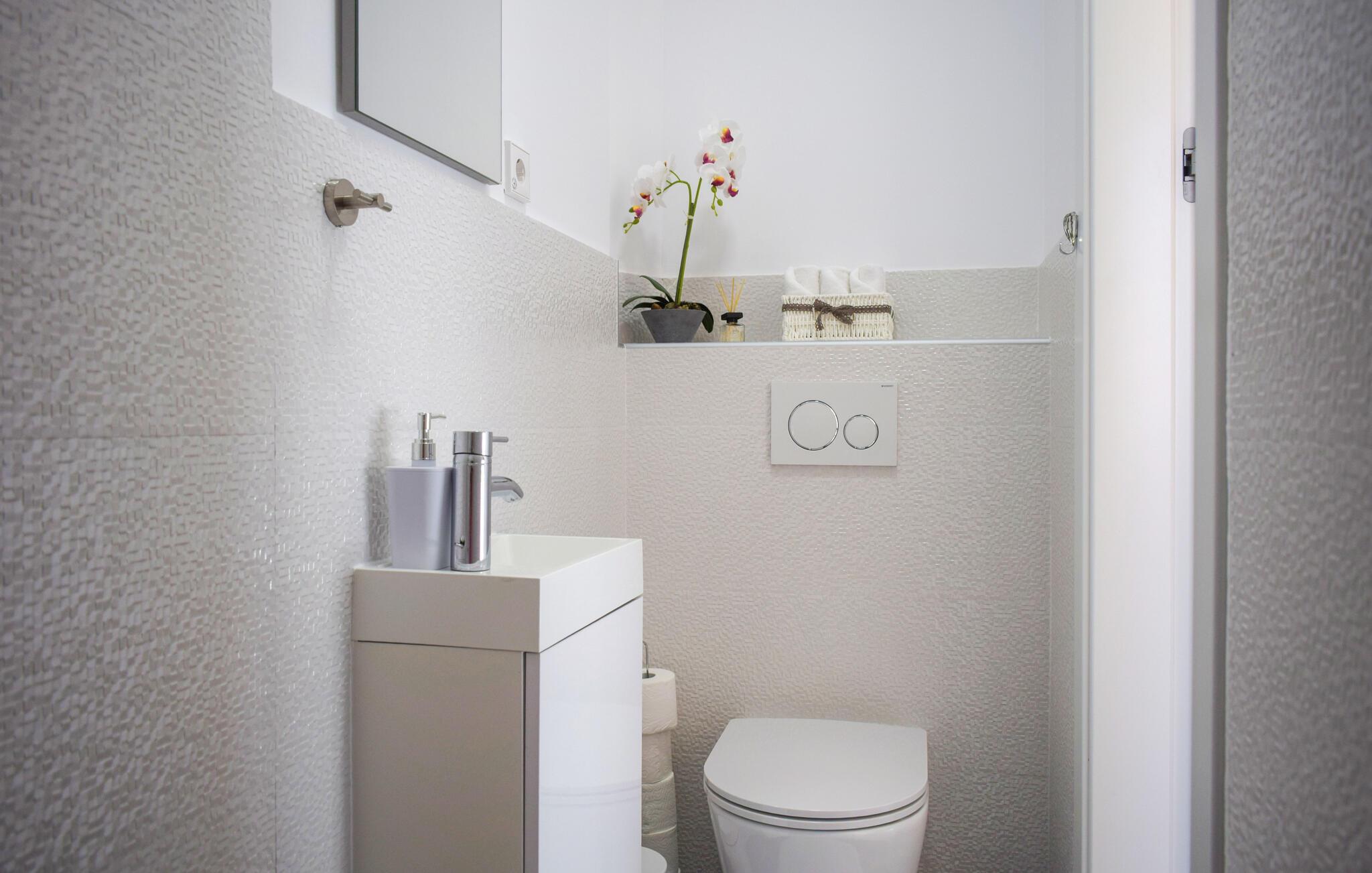 Det komfortable hus venter på dig i en vidunderlig beliggenhed nær havet og fortryller sine gæster med moderne møbler og en uforglemmelig udsigt. Efter en aktiv dag kan I sætte jer til rette i opholdsstuen, slappe af sammen og lægge planer for fremtidige aktiviteter, mens I spiser sammen og lader blikket vandre over vandet.