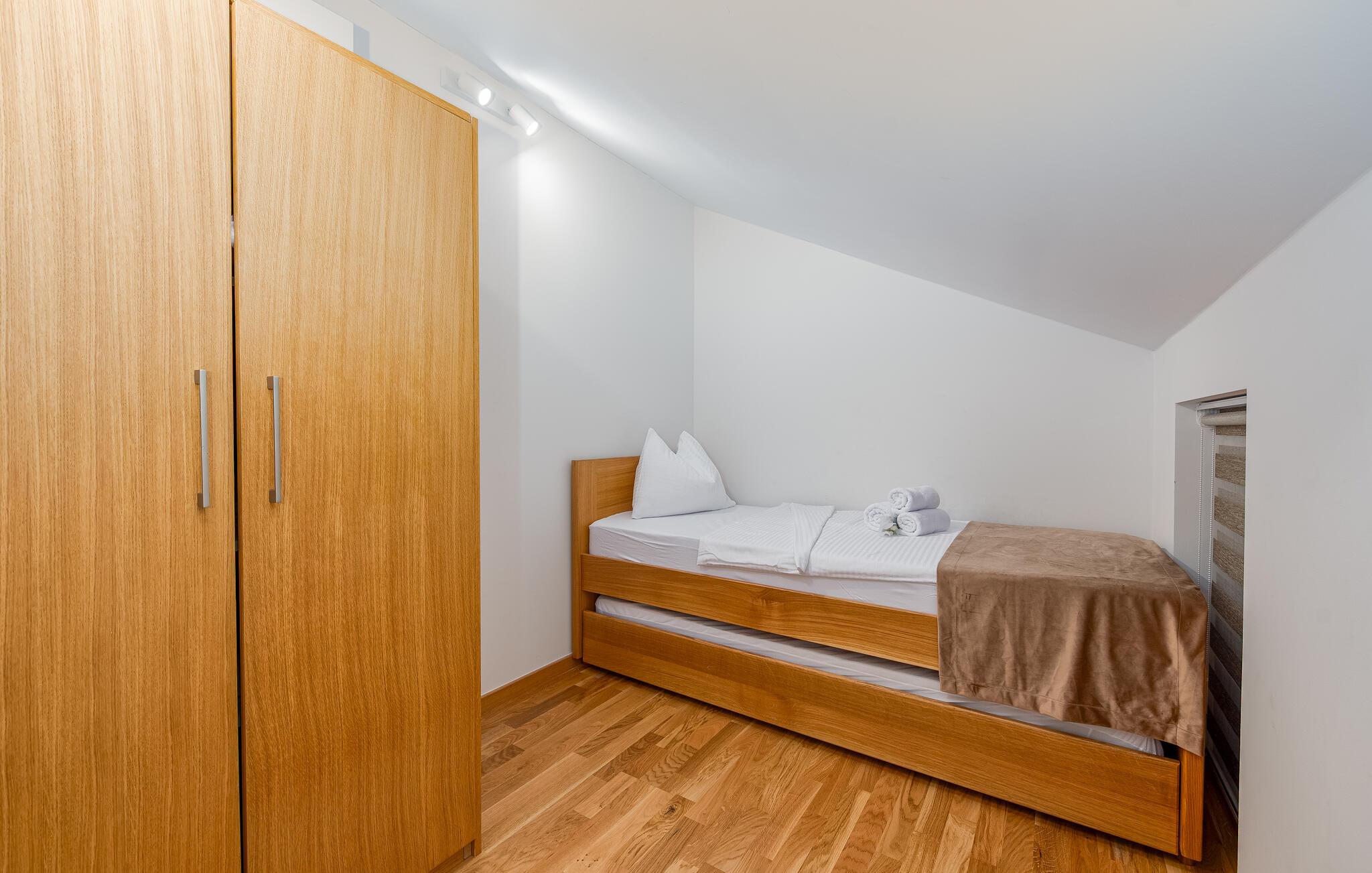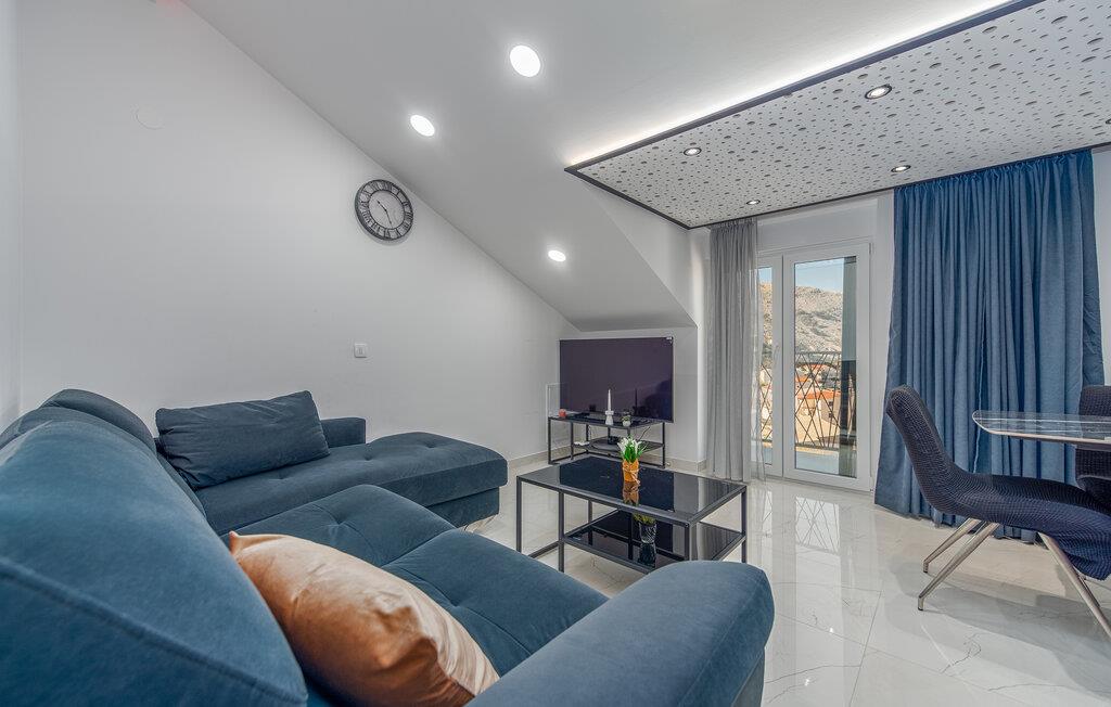 Denne komfortable ferielejlighed ligger nogle få skridt fra den smukke strand, hvor elegante møbler og hyggelig belysning skaber en indbydende, atmosfære. Brug det åbne køkken til at tilberede kroatiske retter sammen, nyd måltiderne ved det stilfulde spisebord, og efter en lang dag kan I slappe af i den rummelige sofa, hvor I kan streame en film eller have en spilleaften med familien.