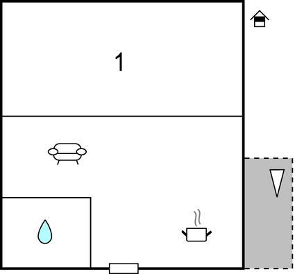 Opholdsstue/køkken 12m2 - 1 Soveplads. (Sofa, madras eller lignende).