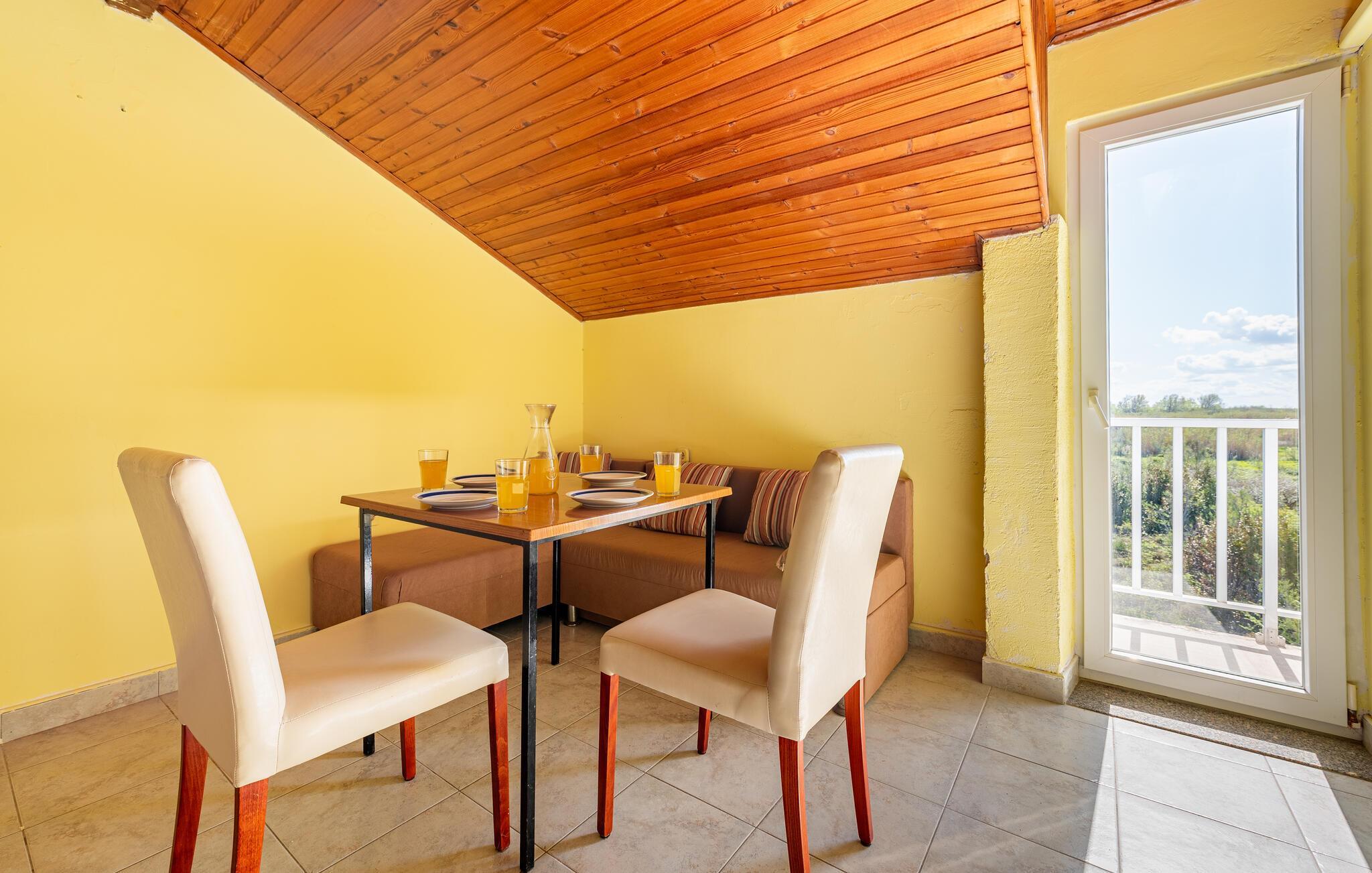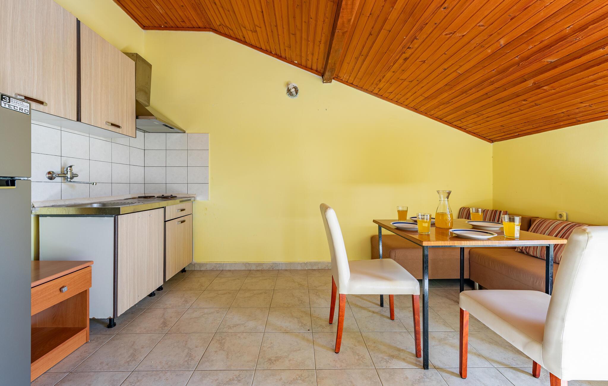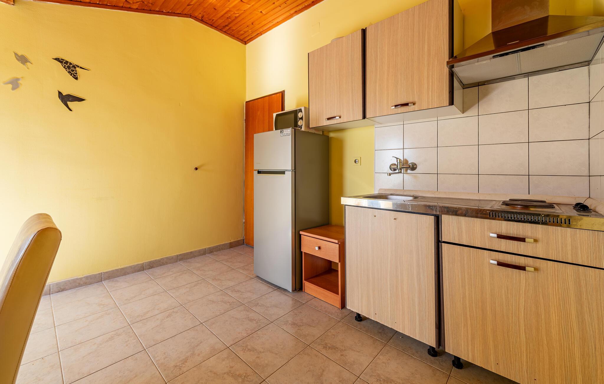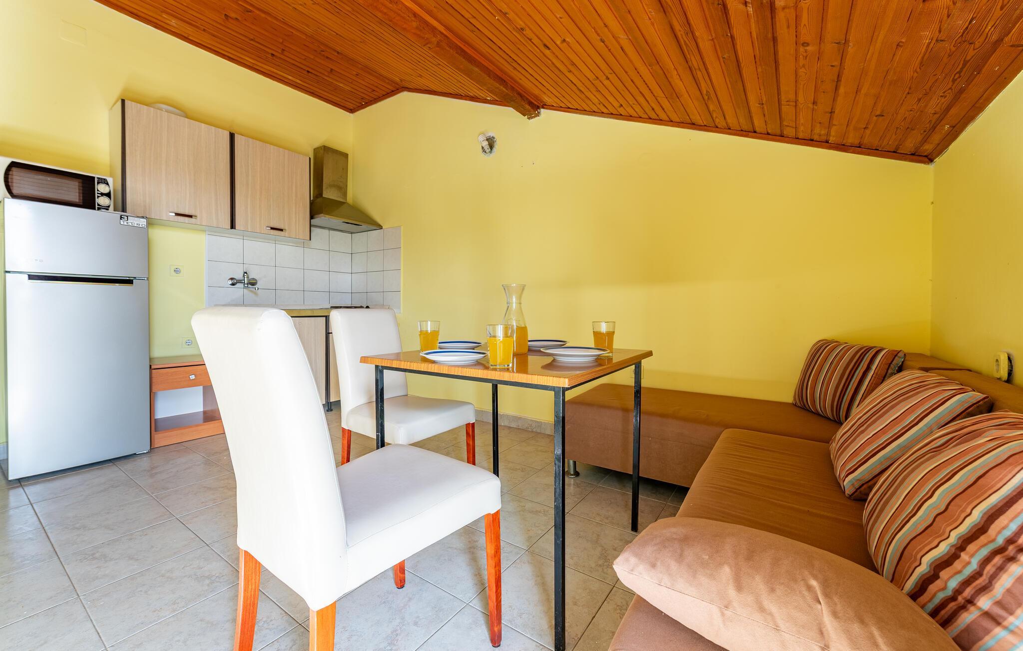 kun nogle få skridt fra den nærmeste sandstrand venter denne praktiske indkvartering på jer til en ukompliceret strandferie med god mad og naturskønne omgivelser. Den lyse ferielejlighed er kompakt, funktionel og tilbyder alt hvad I behøver for en afslappende ferie. Tilbered lette måltider og snacks til jeres udflugter i det lille tekøkken. Bagefter kan I slappe af på sofaen og lade tankerne vandre.