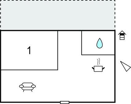 Opholdsstue/køkken 14m2 - 1 Soveplads. (Sofa, madras eller lignende).