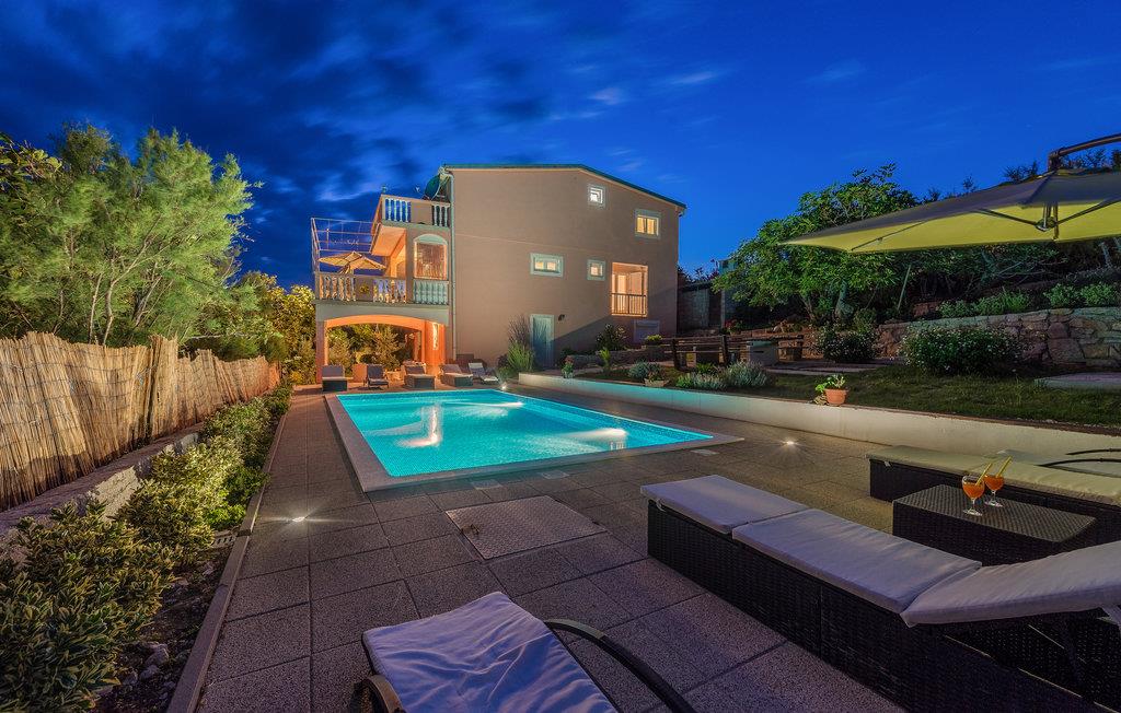 Komfortabel lejlighed med overdækket terrasse og swimmingpool på den smukke ø Pag.