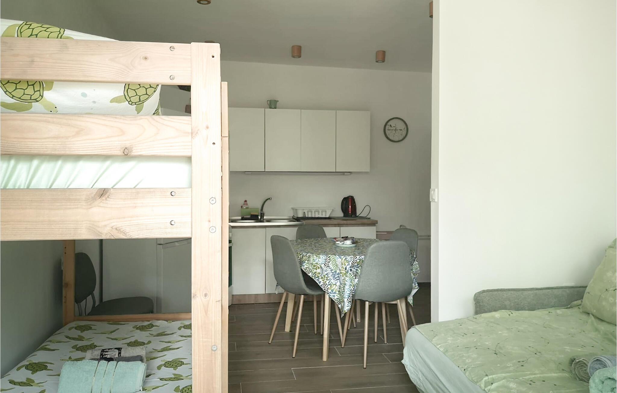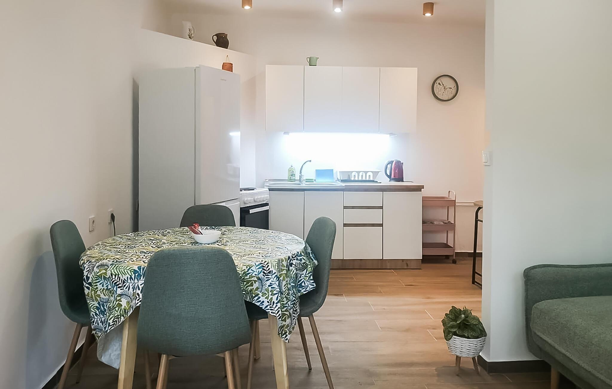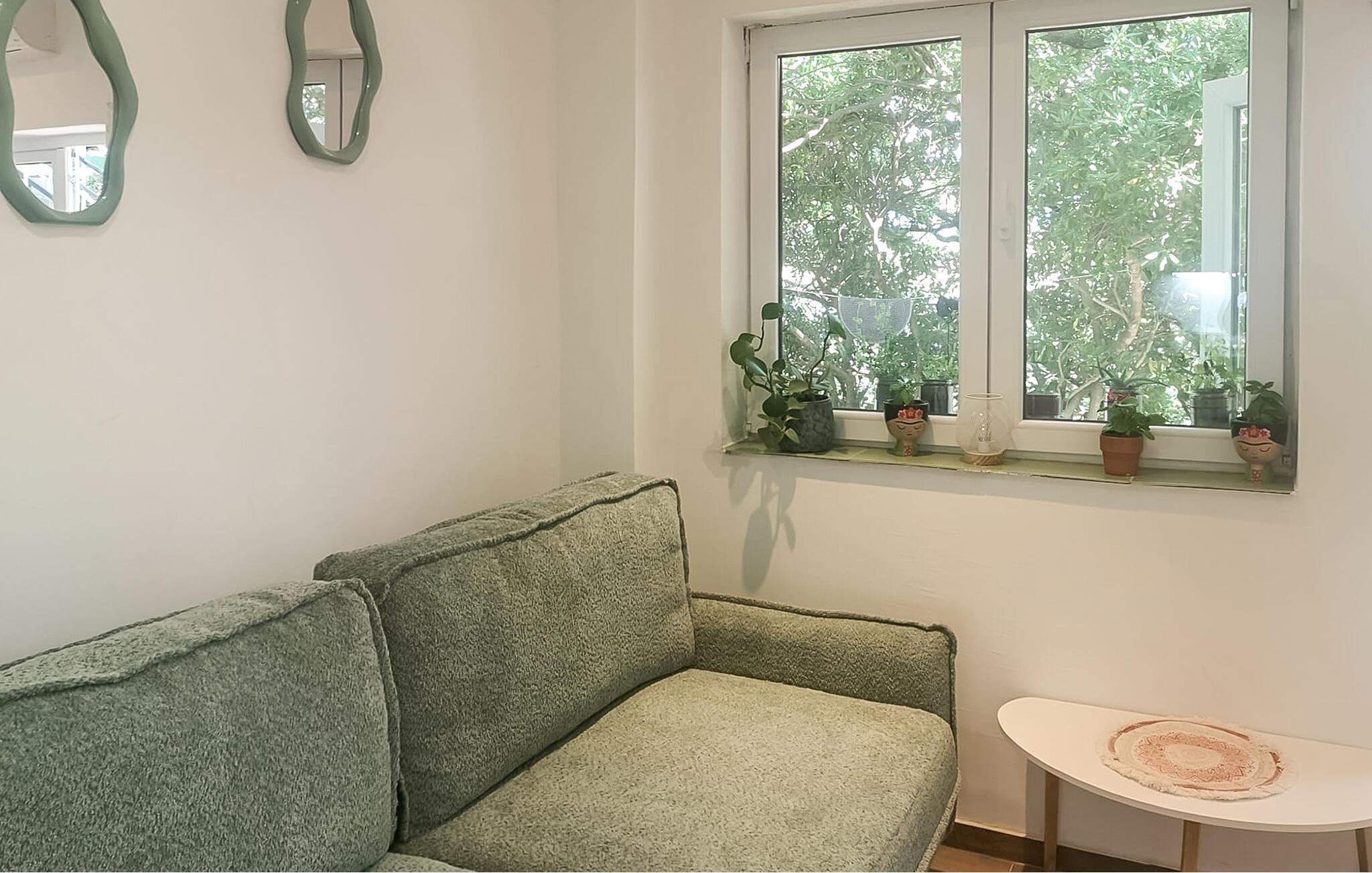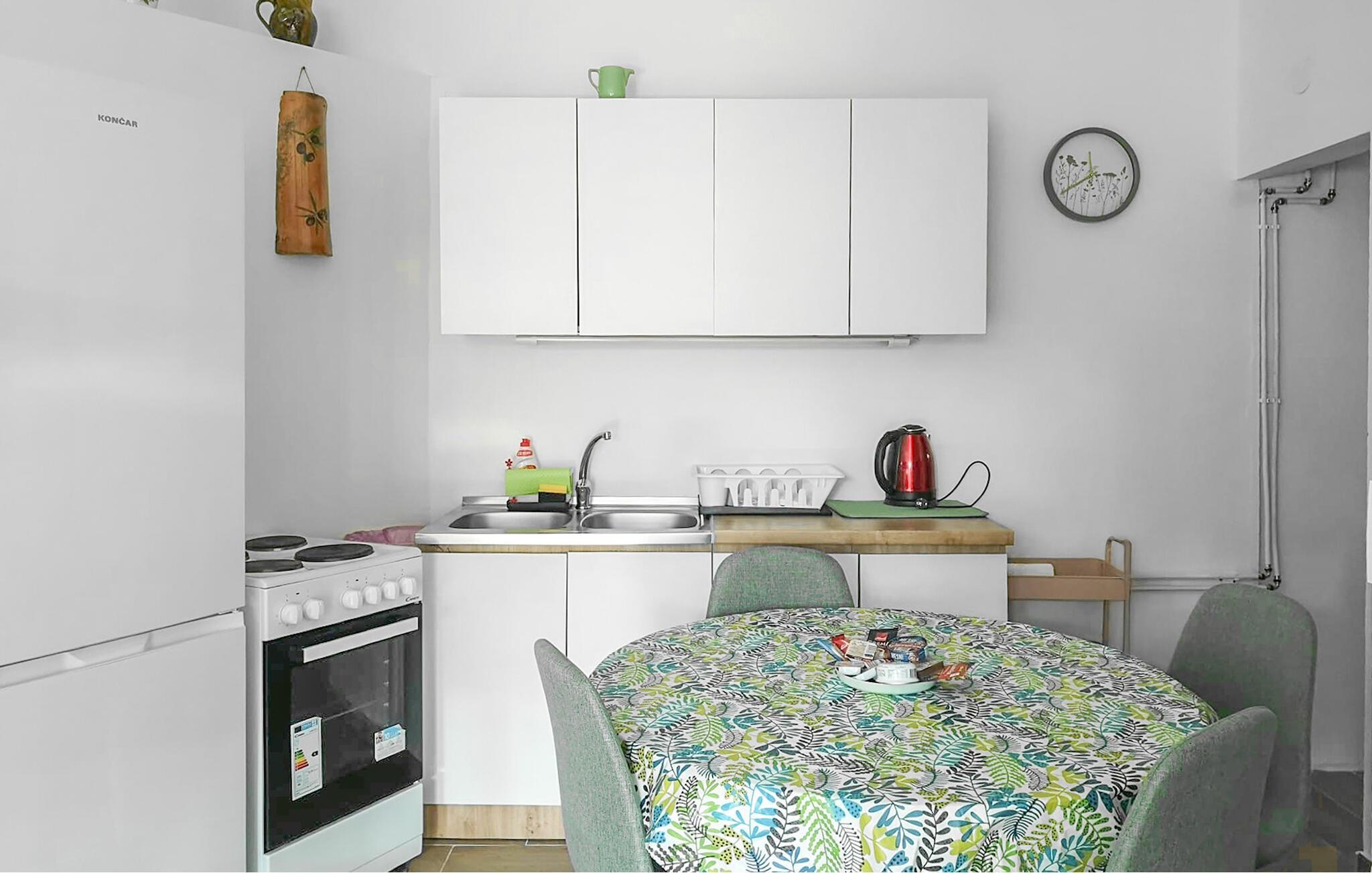 Nyd jeres ferie på den klippefyldte kyst af øen Pag, hvor jeres lejlighed ligger over en idyllisk bugt. Lyse opholdsrum og et lille køkken skaber en atmosfære, hvor I hurtigt kan slappe af. Uanset om I lytter til musik, laver frisk kaffe eller laver mad sammen – her sætter I tempoet for jeres feriedag.