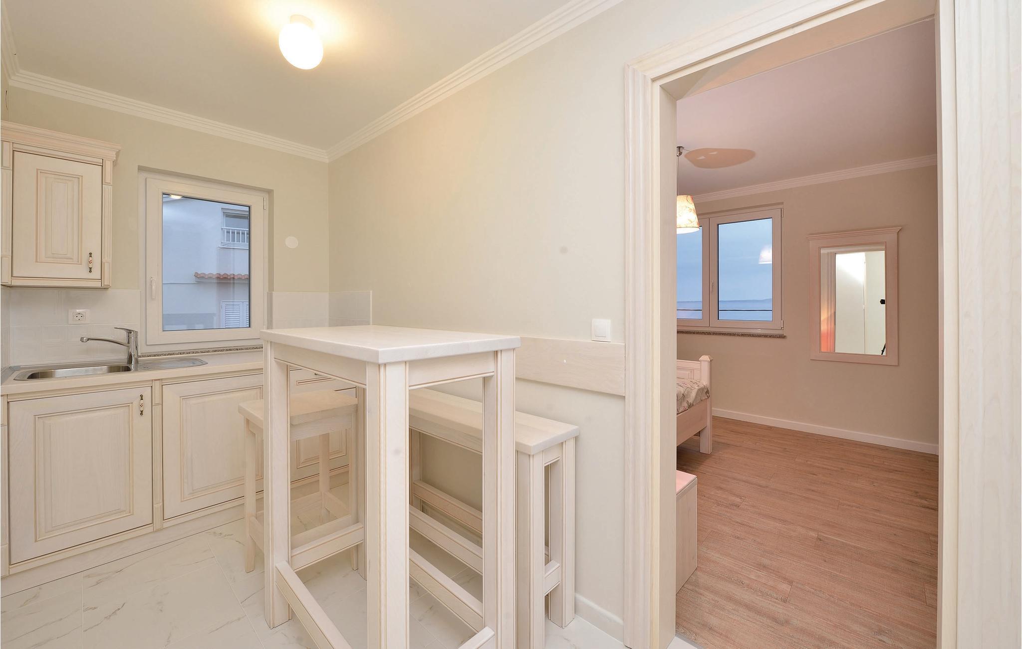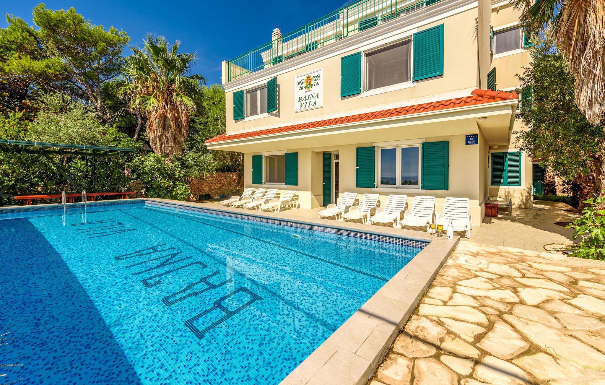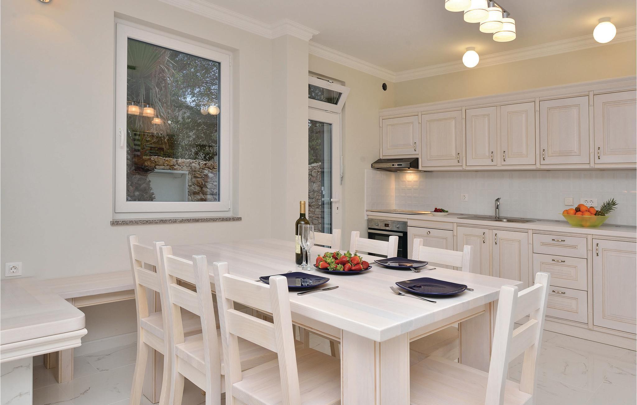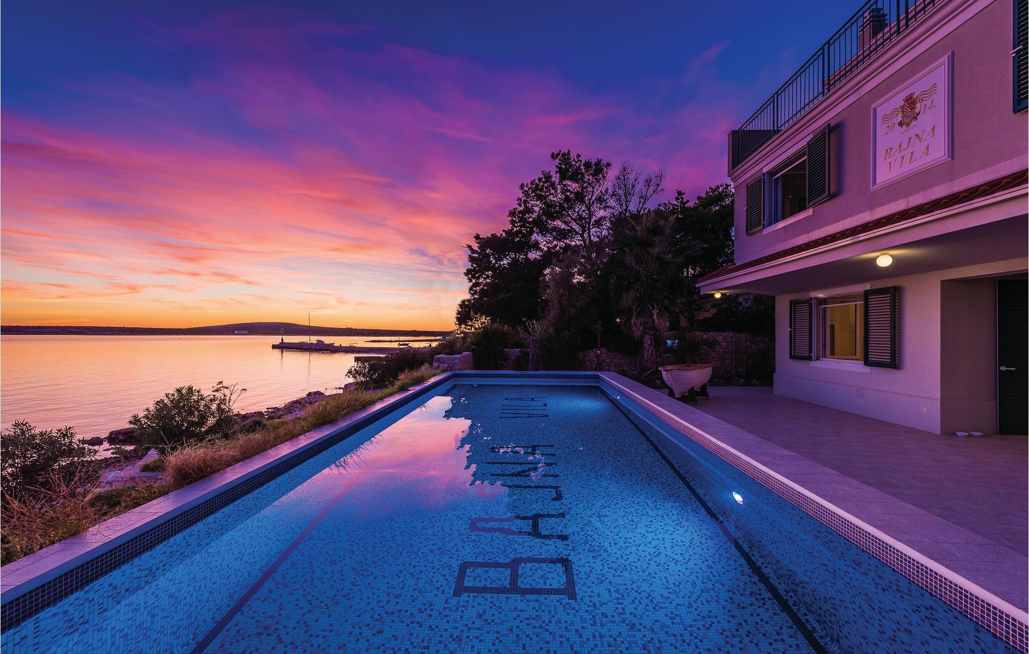 Bo i dette vidunderlige feriehus med pool, næsten direkte ved kiesstranden, kun adskilt af en lille vej. Den lille, rolige by Košljun er velegnet til afslapning af krop og sjæl. Grunden er omgivet af stenmure, og der gror middelhavsplanter som rosmarin, palmer og oleander. Inden for stenmurene er der anbragt lamper, og alle møbler er håndlavede, hvilket bidrager til en atmosfære af rent velvære. På bygningens bagside er der et udendørs køkken med mobil bar. Ferieboligen i tre etager, og i tagetagen med mindste loftshøjde 160 cm er der en romantisk terrasse med panoramaudsigt til havet. Øen Pag prydes af dejlige, både levende og ensomme bugter. En særlig anbefaling værd er øens kulinariske specialiteter i form af den særlige fåreost og lammekødet. Ved den populære strand Zrce er der velrenommerede festivaller med elektronisk musik hver sommer. Fra byen Pag og forbi et gammelt romersk saltværk, fører vejen til Kosljun, Der også er kendt som den ældste kendte vej på øen. Byen Kosljun husede siden det 14. århundrede hovedhavnen på øen, hvorfra saltet blev udskibet. Nu har havnen forvandlet sig til en marina for fritidsfartøjer og mindre skibe. Byen er omgivet af marker og mejerier, se dem på en tur på cykel eller gå en tur gennem landskaberne. Kosljun er også kendt for sit rene, friske drikkevand. Bugten indbyder til alle former for vandsport og lystfiskeri. Der sydes stadig salt på øen på naturlig vis, som øen er kendt for vidt om. Her er fremragende forbindelser til fastlandet.