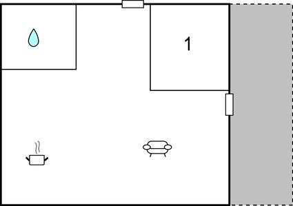 Komb. spisestue/køkken 14m2 - 2 Sovepladser. (Sofa, madras eller lignende).