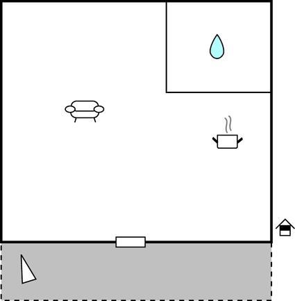 Komb. spisestue/køkken 18m2 - 2 Sovepladser. (Enkeltseng(e)).